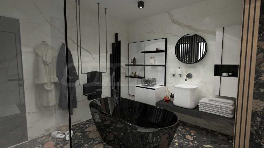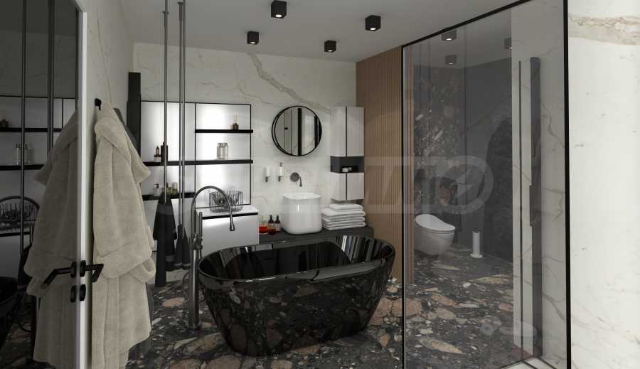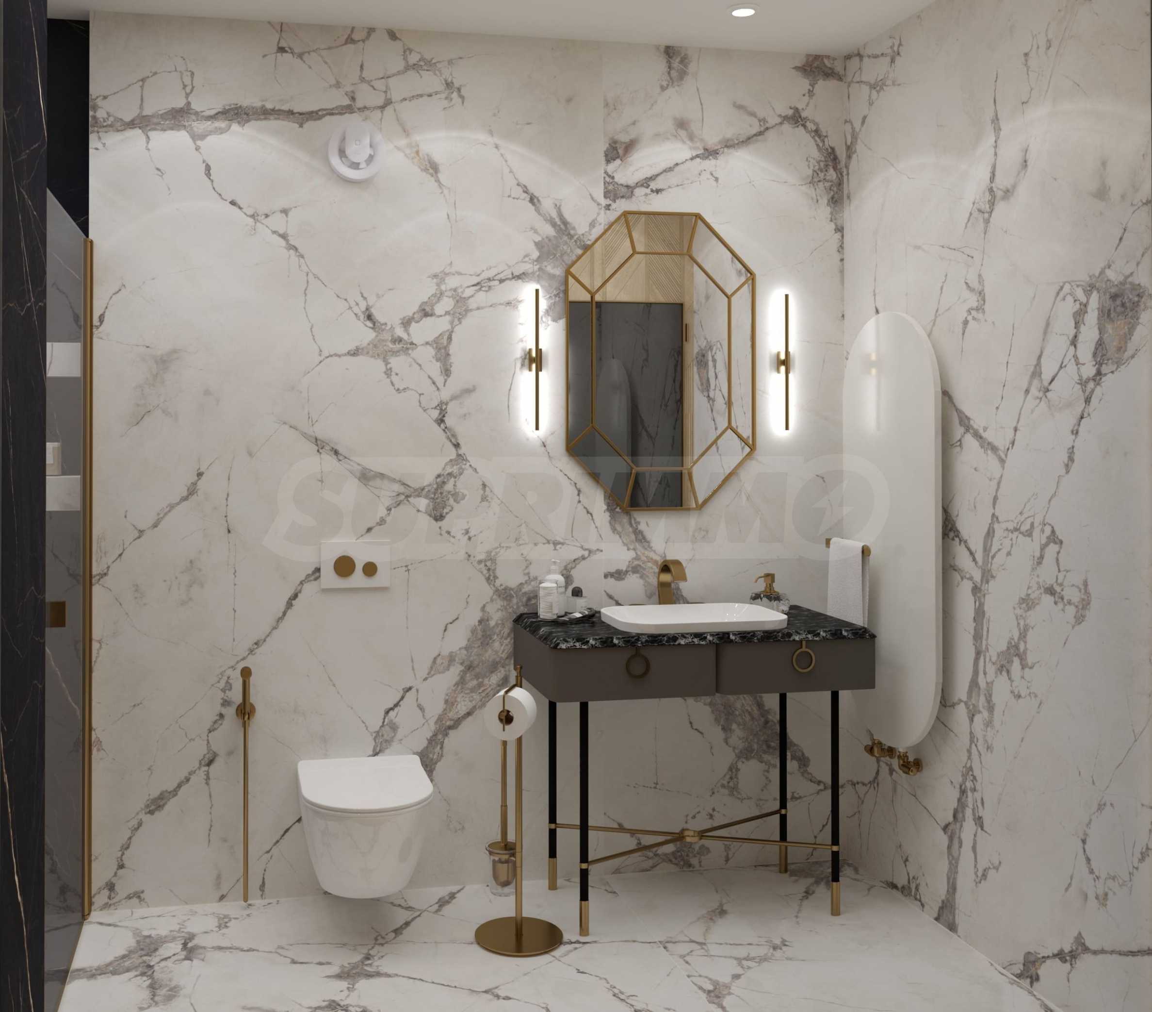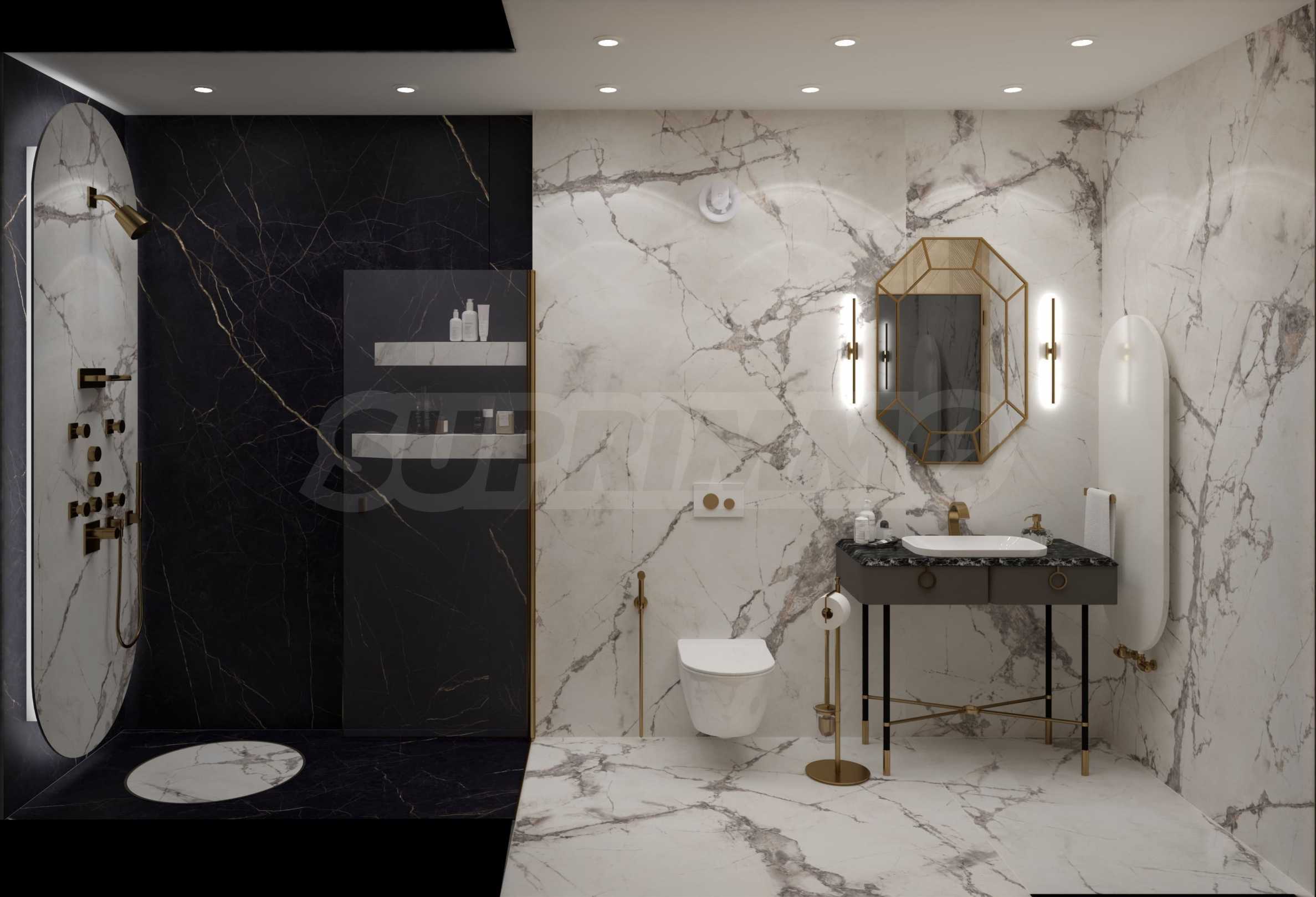 • zamontowano konstrukcje instalacyjne i korpus pod zabudowę higienicznego natrysku najwyższej klasy - Geberit we wszystkich łazienkach, z możliwością montażu inteligentnych systemów toaletowych;
