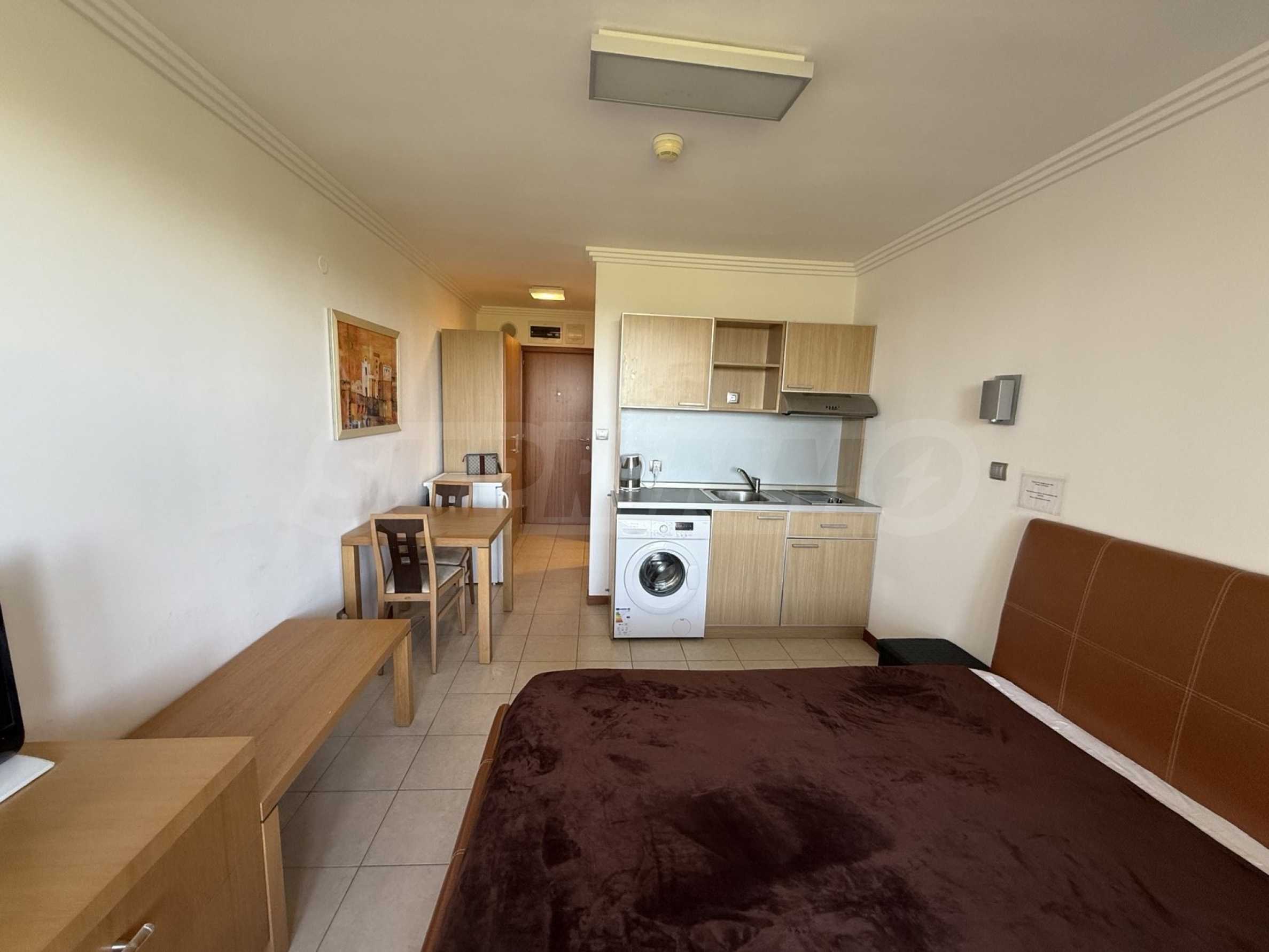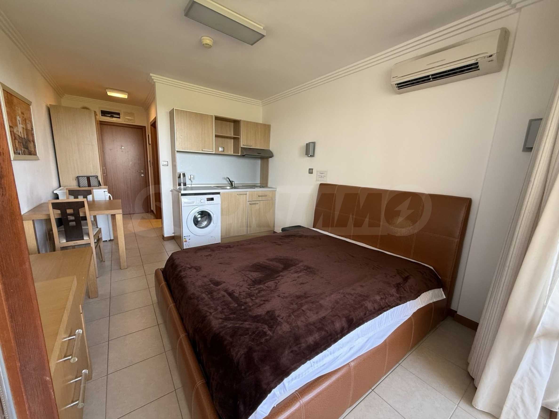 Oferujemy do sprzedaży umeblowane studio w luksusowym całorocznym kompleksie położonym w pierwszej linii brzegowej, z bezpośrednim dostępem do plaży w Rawdzie.