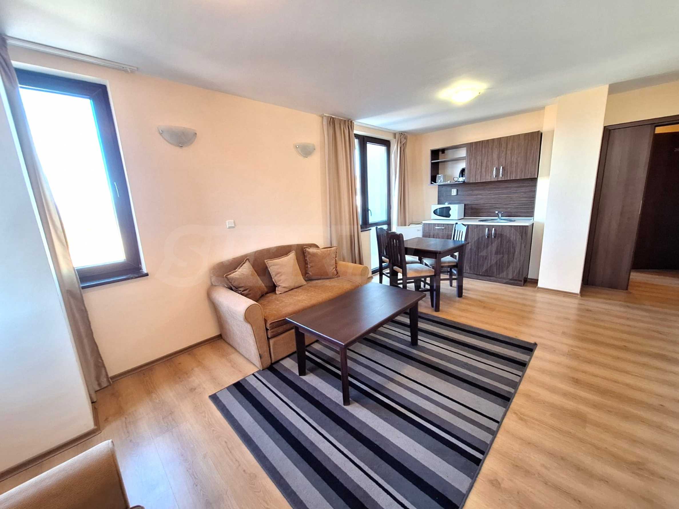 Luksusowo umeblowany apartament z jedną sypialnią w kompleksie hotelowym, położonym u podnóża gór Pirin, zaledwie kilka minut od kolejki gondolowej i stoków narciarskich w Bansko.