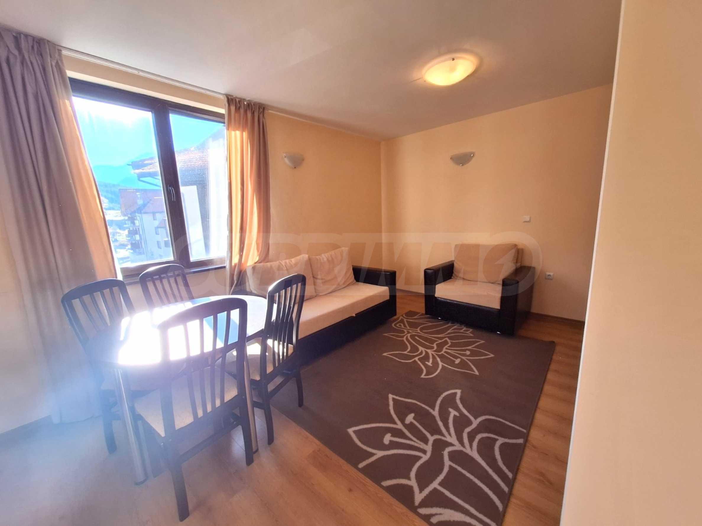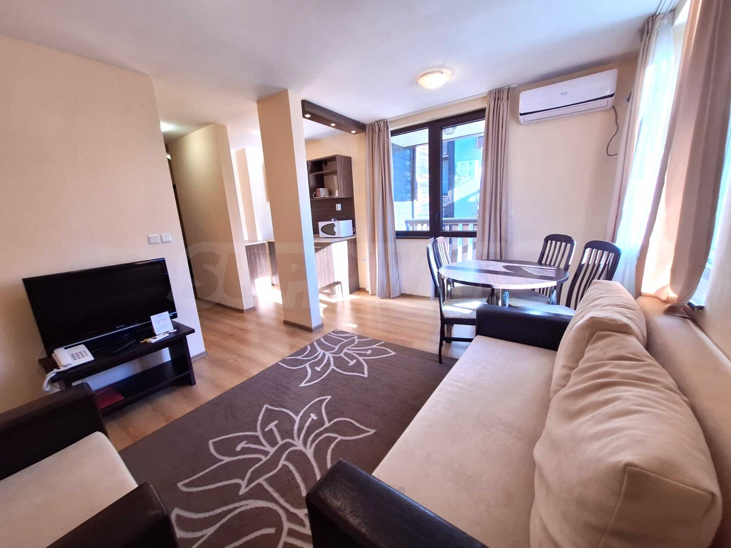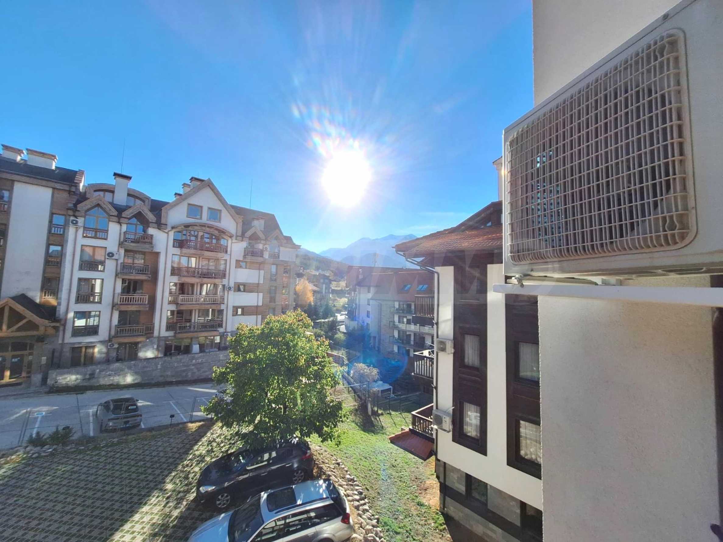 Umeblowany apartament z jedną sypialnią w kompleksie hotelowym położonym u podnóża góry Pirin, zaledwie kilka minut od kolejki gondolowej i stoków narciarskich w Bansko.