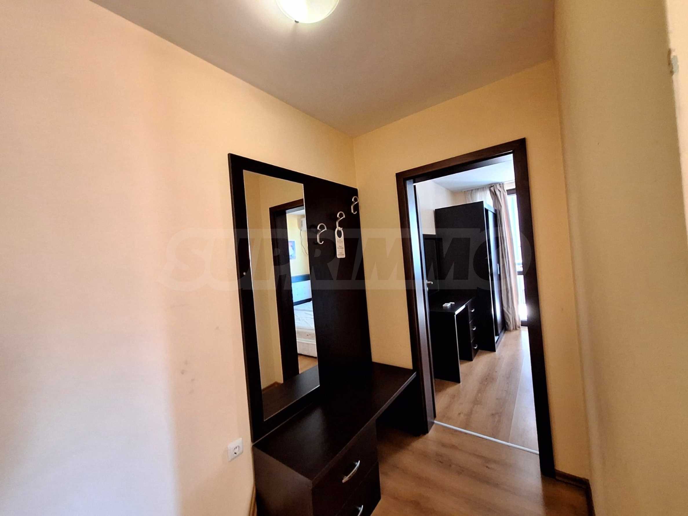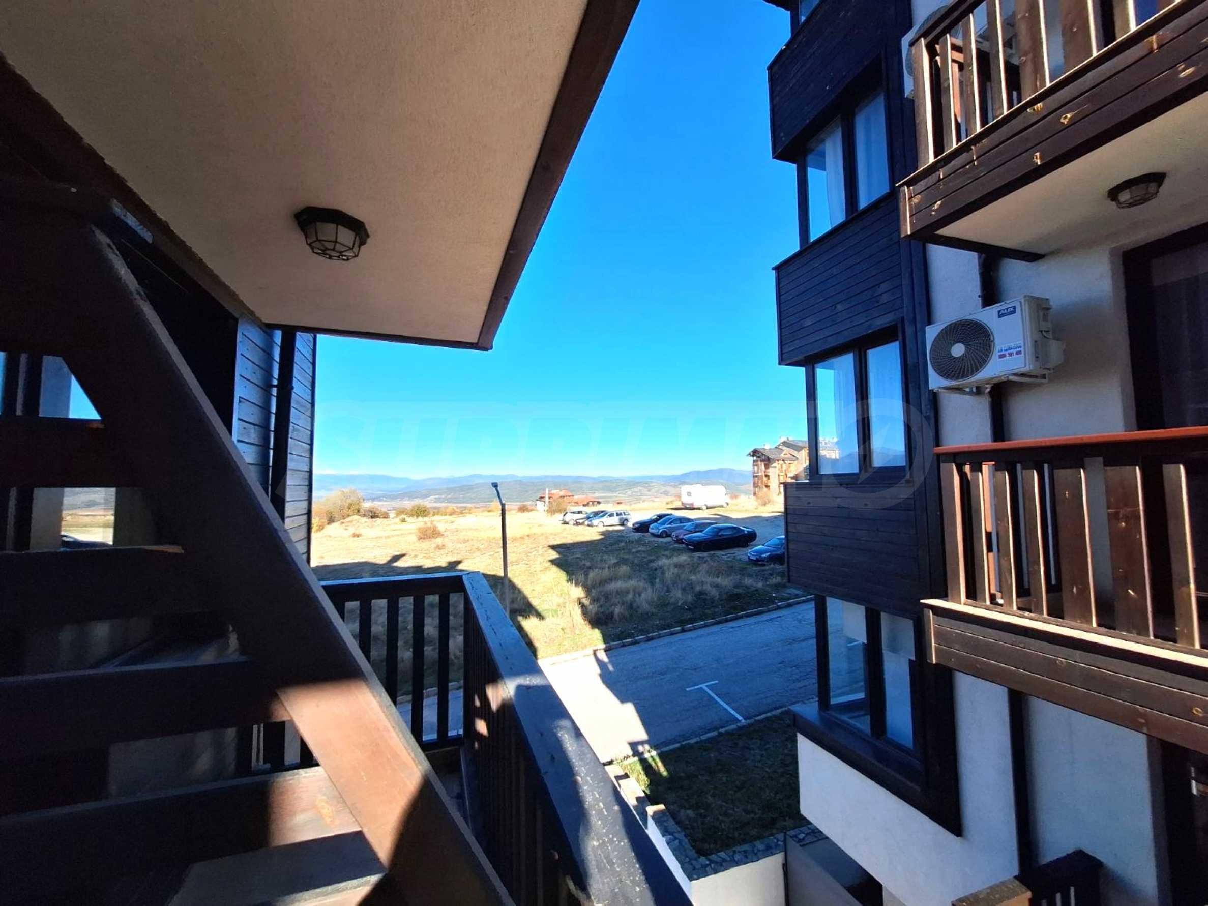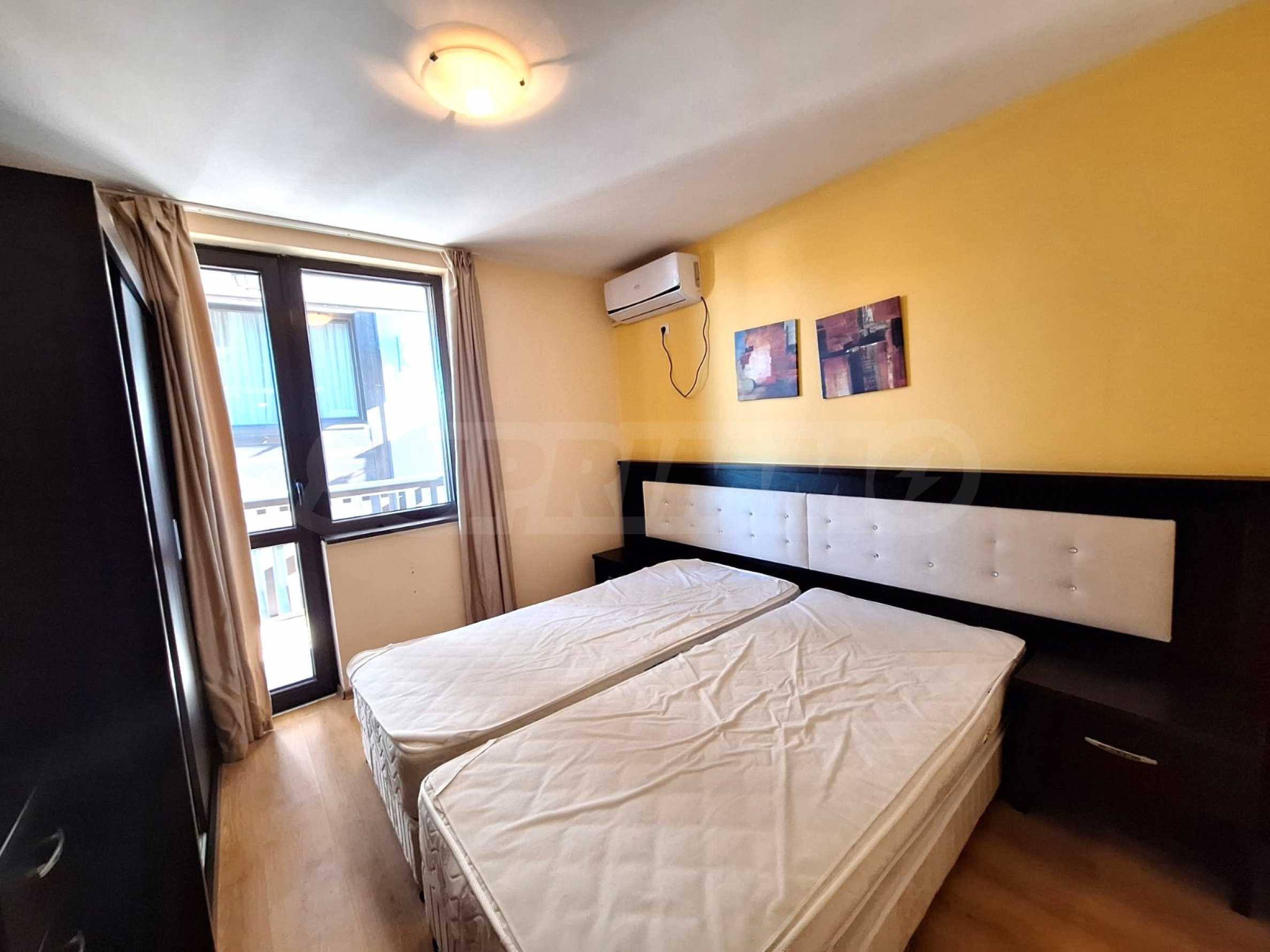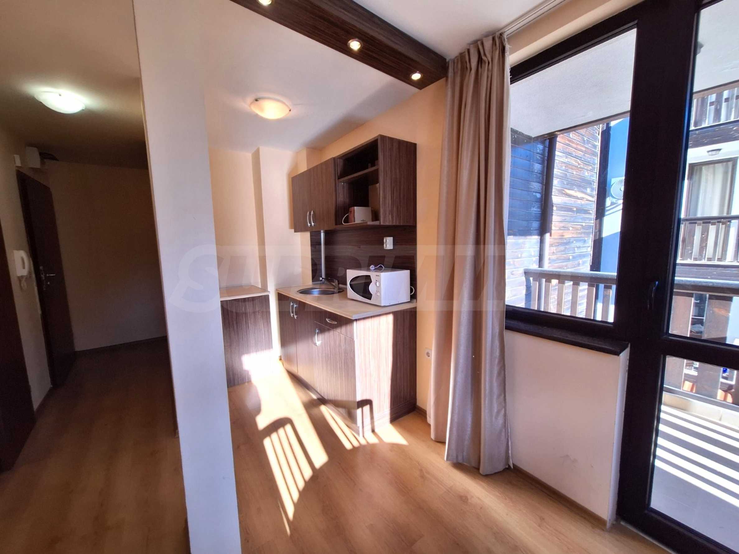 Umeblowany apartament z jedną sypialnią w kompleksie hotelowym położonym u podnóża góry Pirin, zaledwie kilka minut od kolejki gondolowej i stoków narciarskich w Bansko.