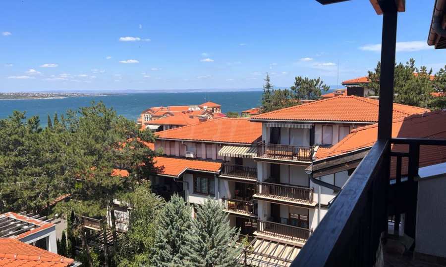 Oferujemy na sprzedaż dwupokojowy apartament z panoramicznym widokiem na morze, w elitarnym nadmorskim kompleksie z basenami i własnym parkiem, zaledwie 2 km od miasta Sozopol.