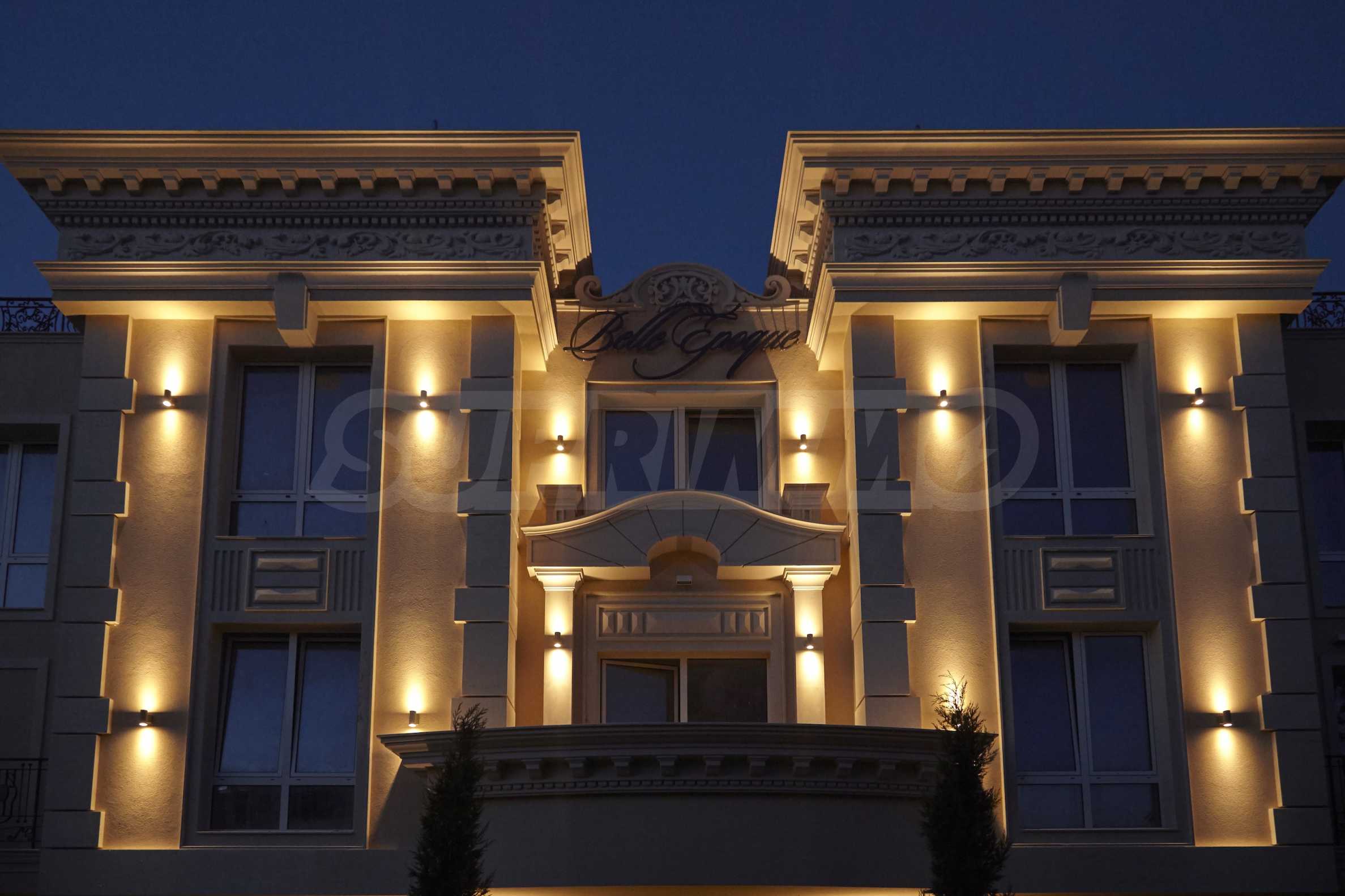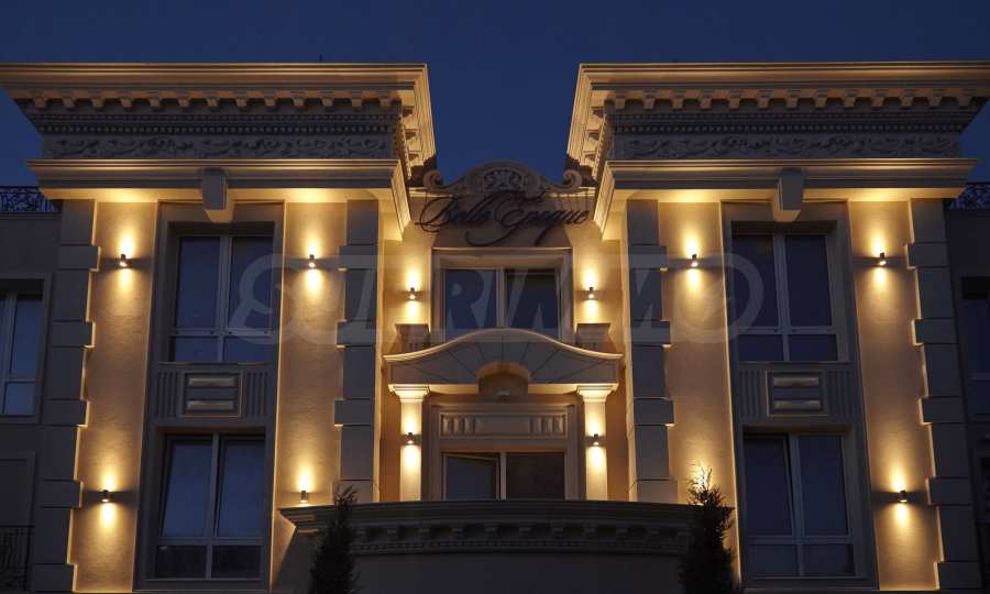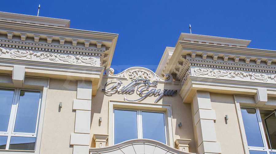 Elegancki budynek Belle Époque Beach Residence charakteryzuje się klasycznymi kształtami, stanowiącymi symbol ponadczasowej elegancji i „pięknej epoki”. Rozwiązania konstrukcyjne i wyrafinowany design budynku, jego fasady i części wspólnych są rzadko spotykane na bułgarskim wybrzeżu Morza Czarnego. W całym budynku zastosowano wysokiej jakości materiały wykończeniowe od wiodących światowych producentów. Priorytetem są naturalne elementy – kamień na elewacjach, marmur i inne naturalne kamienie na podłogach w częściach wspólnych. Części wspólne budynku, lobby i recepcja zostały zaprojektowane z dbałością o szczegóły, według autorskiego projektu. Apartamenty wykończono podłogami z marmuru, trawertynu i innych kamieni naturalnych.