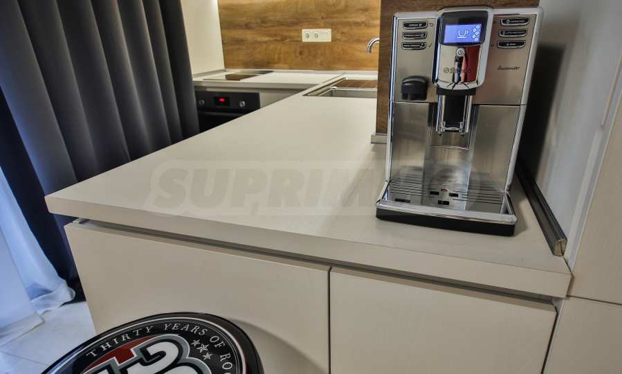 Mieszkanie sprzedawane jest w stanie widocznym na zdjęciach — z pełnym umeblowaniem i wyposażeniem w cenie. Właściciel zatrzyma jedynie rzeczy osobiste oraz drobne urządzenia kuchenne. Mieszkanie jest wyposażone w liczne szafy i szafki, co zapewnia wystarczająco dużo miejsca do przechowywania rzeczy osobistych i ubrań. Meble, w tym zabudowa kuchenna, zostały zaprojektowane tak, by zapewniać maksymalną funkcjonalność i komfort. Mieszkanie było aktywnie użytkowane przez obecnego (pierwszego) właściciela, głównie latem, przez 5 lat i znajduje się w stanie idealnym.