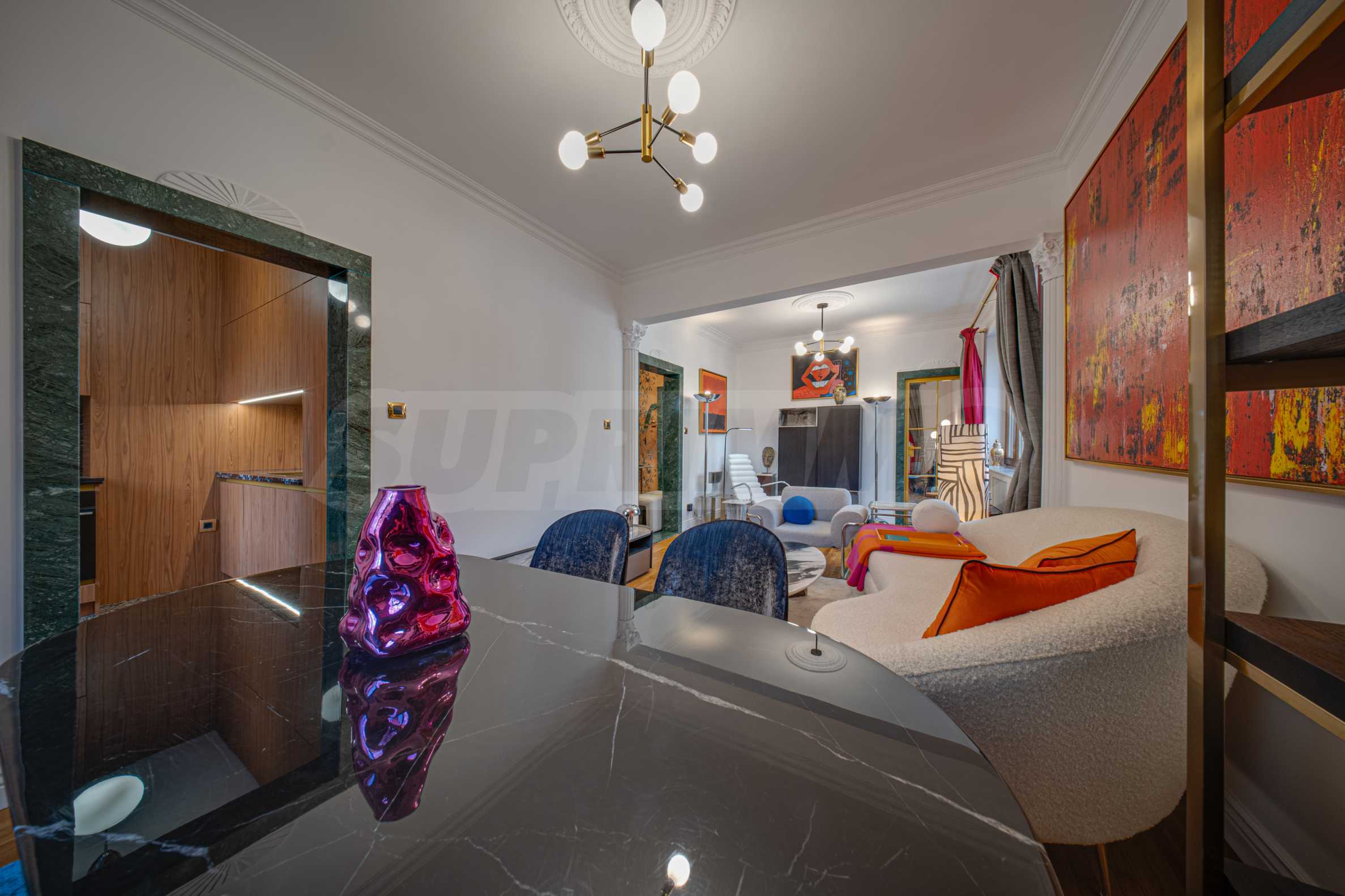 Prezentujemy imponującą, designerską nieruchomość w wyjątkowej lokalizacji – w jednej z najbardziej pożądanych i symbolicznych dzielnic Sofii – dzielnicy „Pomnik Lekarza”. Apartament znajduje się w Gmachu Dyplomatycznym Prezydium Zgromadzenia Narodowego – masywnym i prestiżowym budynku z lat 50. XX wieku, budynku z charakterem, historią i atmosferą.