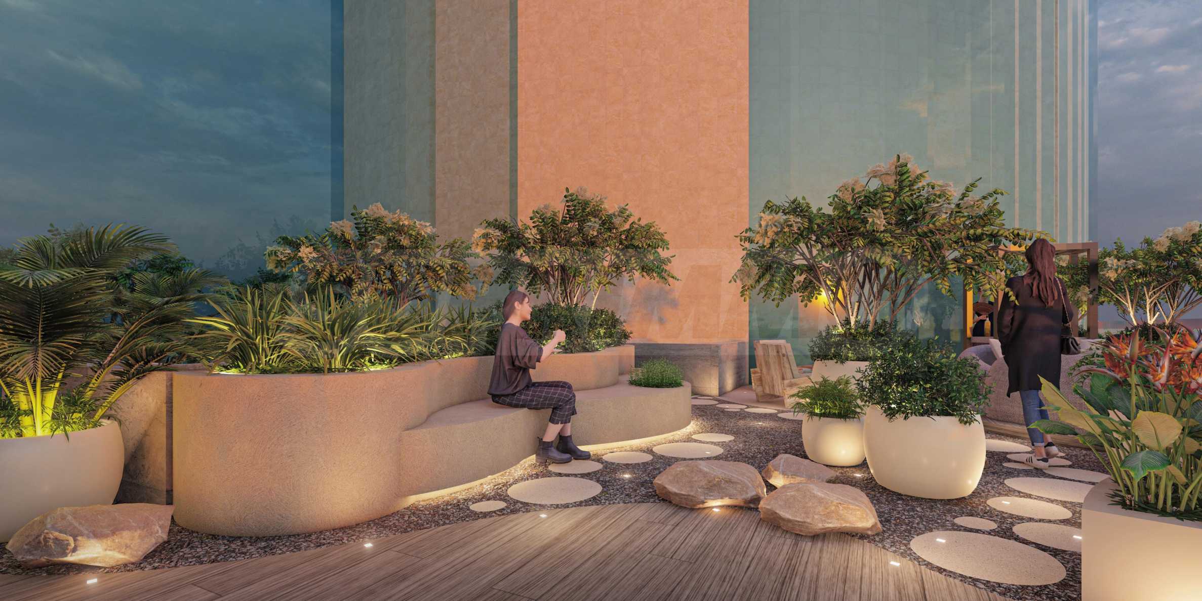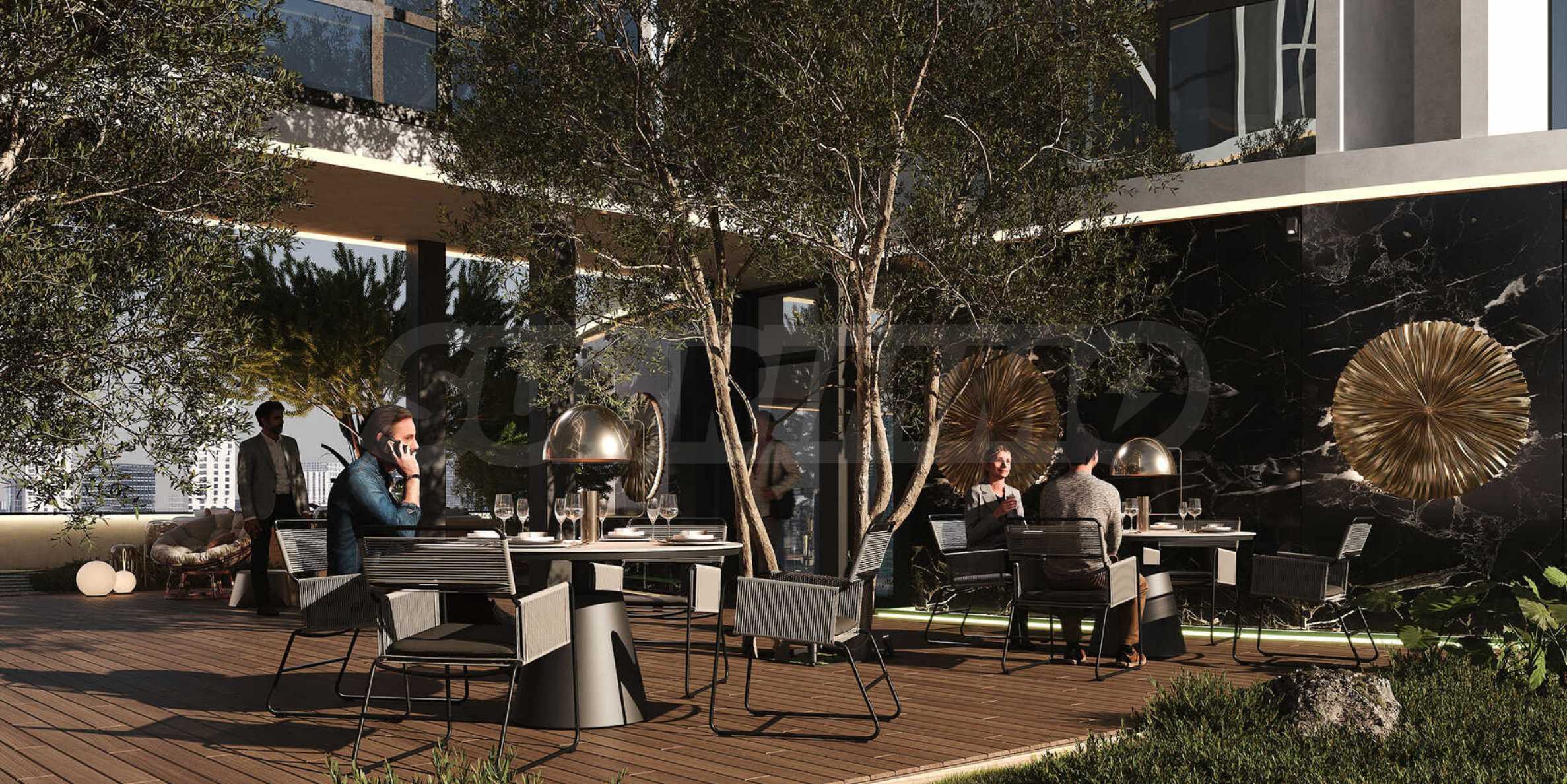 Udogodnienia obejmują nowoczesną siłownię, korty tenisowe i do padla, spa, strefę wellness i jacuzzi. Na wyższych piętrach znajduje się ogród zen z panoramicznym widokiem na miasto, zaprojektowany z myślą o pełnym relaksie.