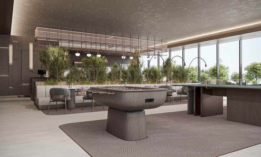 Po wejściu do budynku powita Cię eleganckie lobby, zaprojektowane z dbałością o każdy szczegół. Mieszkańcy mają dostęp do zewnętrznego basenu z strefami relaksu oraz nowocześnie wyposażonej siłowni – wszystkiego, czego potrzeba do aktywnego i zrównoważonego stylu życia, bez konieczności opuszczania kompleksu. Zewnętrzne tereny zielone dopełniają poczucie komfortu, oferując idealne środowisko do spacerów, uprawiania sportu czy relaksu na świeżym powietrzu.