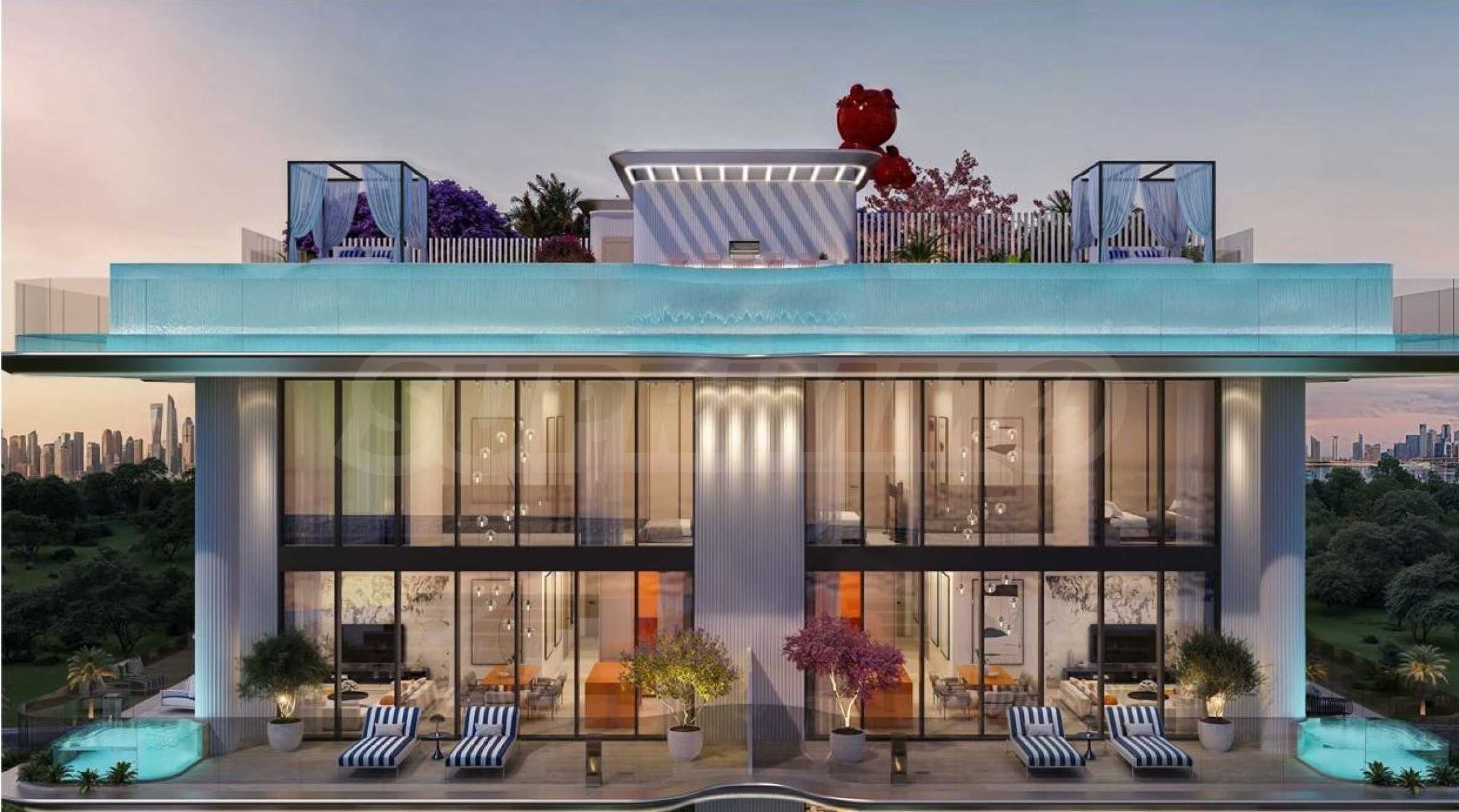 Villa Dell'Arte zachwyca od pierwszego wejrzenia elegancką architekturą – subtelnymi liniami, precyzyjnie zaprojektowanym oświetleniem i owalnymi podestami, które nadają jej unikalną sylwetkę. Wysokie sufity i okna sięgające od podłogi do sufitu nie tylko wzbogacają widok, ale także zapewniają poczucie przestronności i światła. Budynek ma 11 pięter, a na tarasie na dachu znajduje się stylowy grill i jadalnia na świeżym powietrzu – idealne miejsce na niezapomniane wieczory z rodziną i przyjaciółmi z widokiem na morze. Dodatkowe udogodnienia, takie jak nowoczesna siłownia i specjalnie wydzielona strefa dla dzieci, sprawiają, że Villa Dell'Arte to idealne miejsce dla osób ceniących aktywny i zrównoważony styl życia.