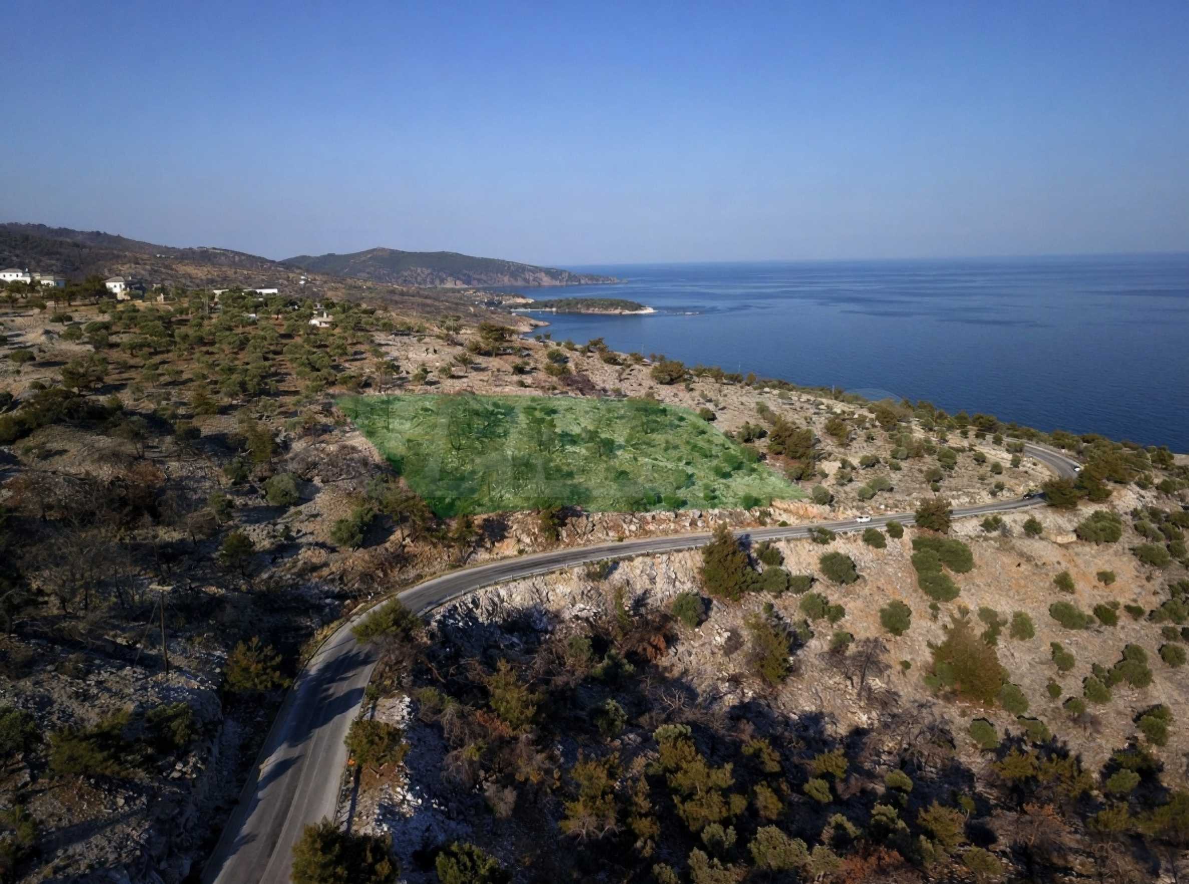 Nieruchomość posiada bezpośredni widok na Morze Egejskie, 90 metrów linii frontu przy drodze głównej i pozwolenie na zabudowę do 230 m kw., co czyni ją niezwykle odpowiednią na luksusową rezydencję prywatną, kompleks butikowy lub projekt ośrodka wellness.