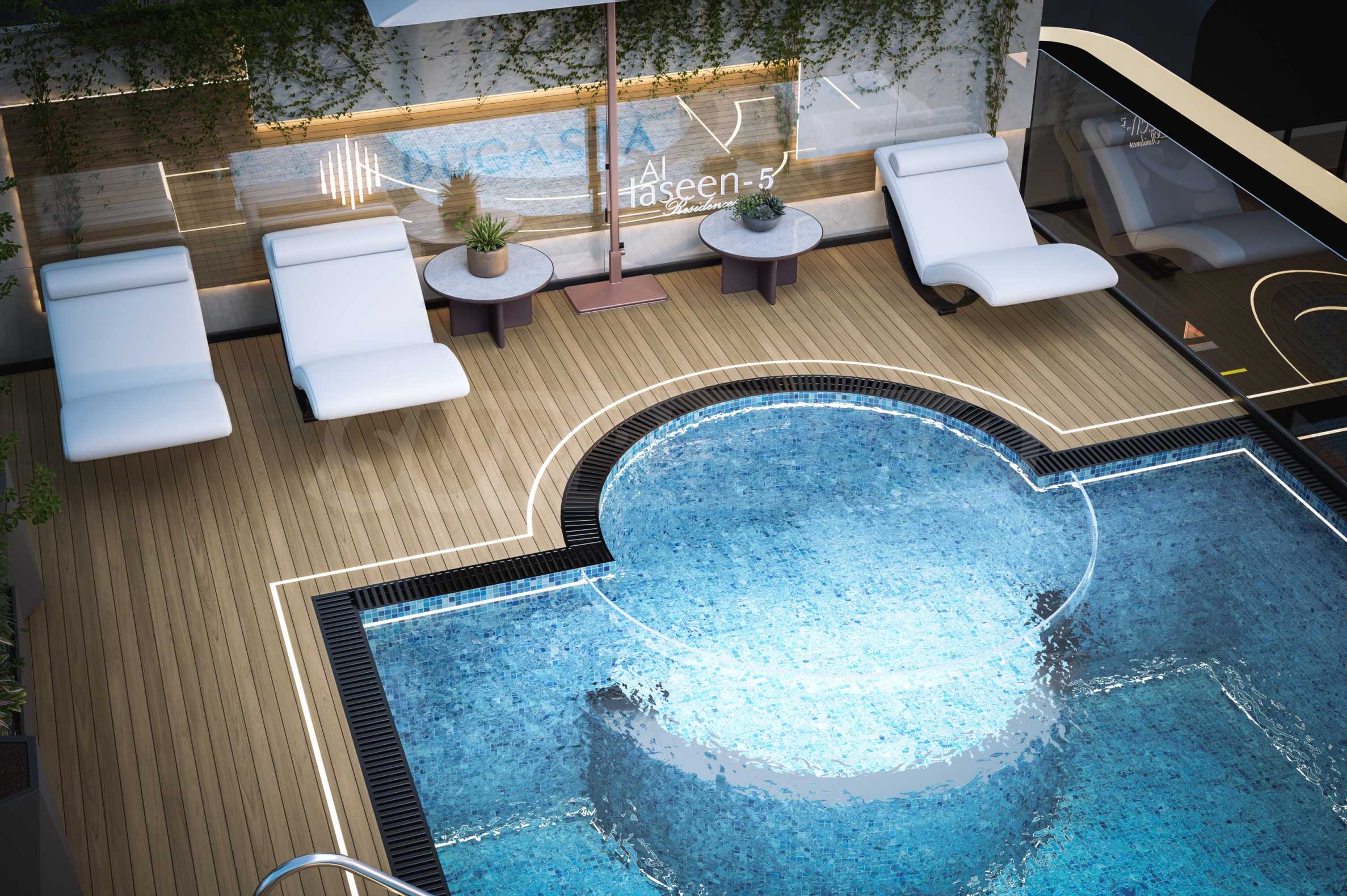 Oprócz komfortu mieszkalnego, Al Haseen Residences 5 oferuje starannie dobrany zestaw udogodnień stworzonych w duchu nowoczesnego życia miejskiego – basen, centrum fitness, parking podziemny oraz całodobowe bezpieczeństwo, co gwarantuje spokój i bezpieczeństwo mieszkańców.