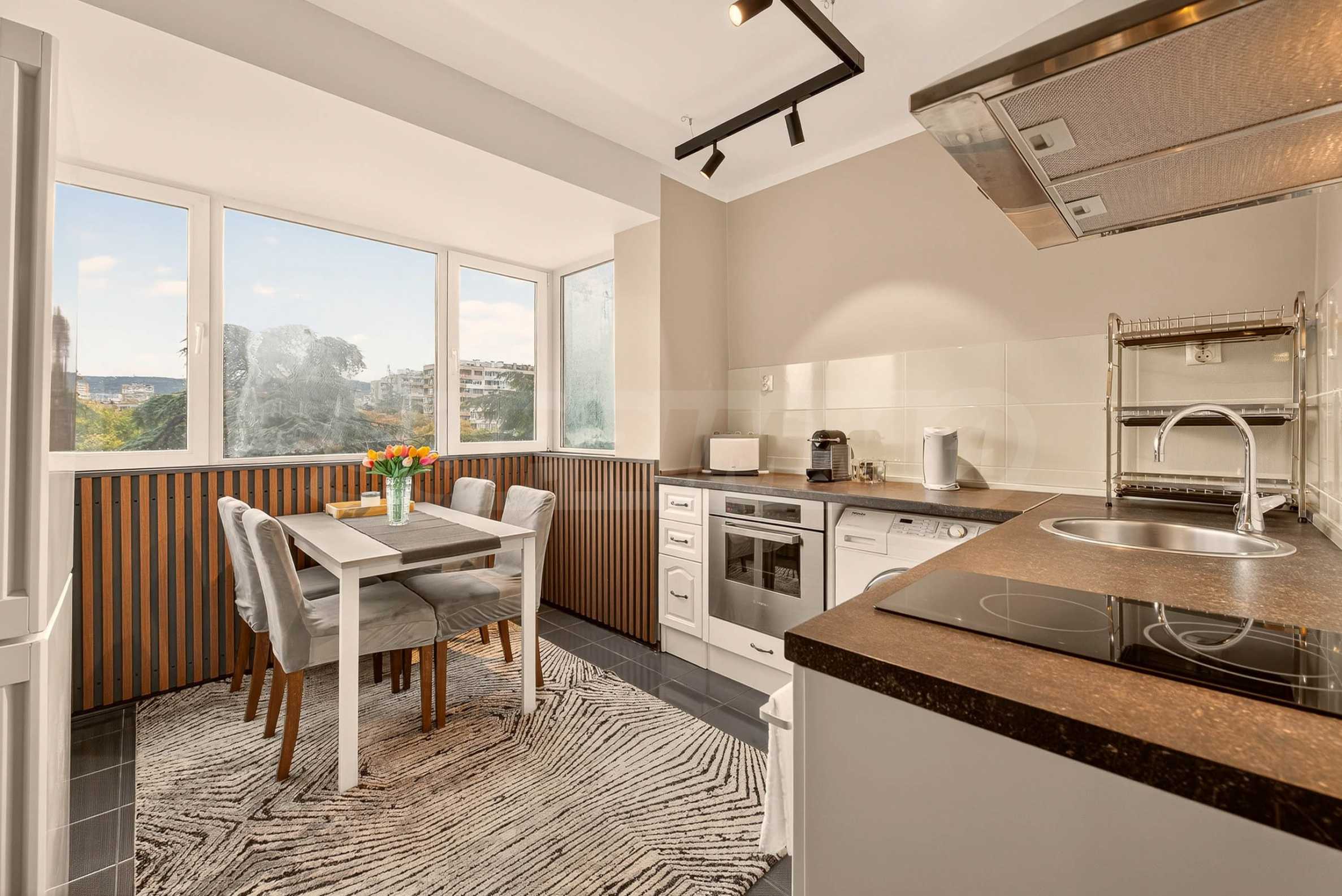 Prezentujemy wspaniały, trzypokojowy apartament do wynajęcia, łączący w sobie przytulność, elegancję i nowoczesny komfort. Doskonała lokalizacja w jednej z najzieleńszych i najbardziej pożądanych dzielnic nadmorskiej stolicy – dzielnicy Czajka – oferuje idealną równowagę między miejskim komfortem a bliskością natury. W bezpośrednim sąsiedztwie znajduje się Ogród Morski, plaża, przedszkola, szkoły, supermarkety, apteki i restauracje, co czyni to miejsce niezwykle dogodnym zarówno dla singla, jak i pary. Tutaj znajdą Państwo ciszę, bezpieczne otoczenie i szybki dojazd do centrum Warny oraz kurortów Święty Konstantyn i Helena oraz Złote Piaski.