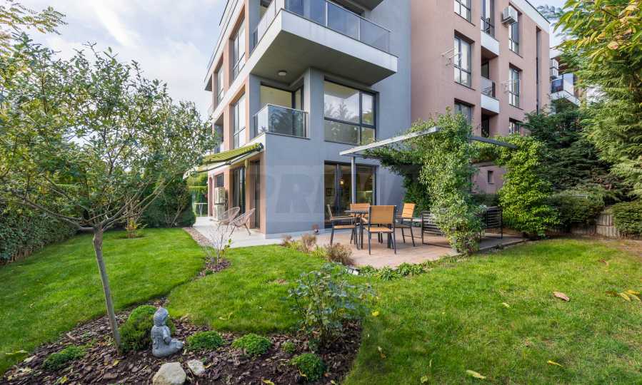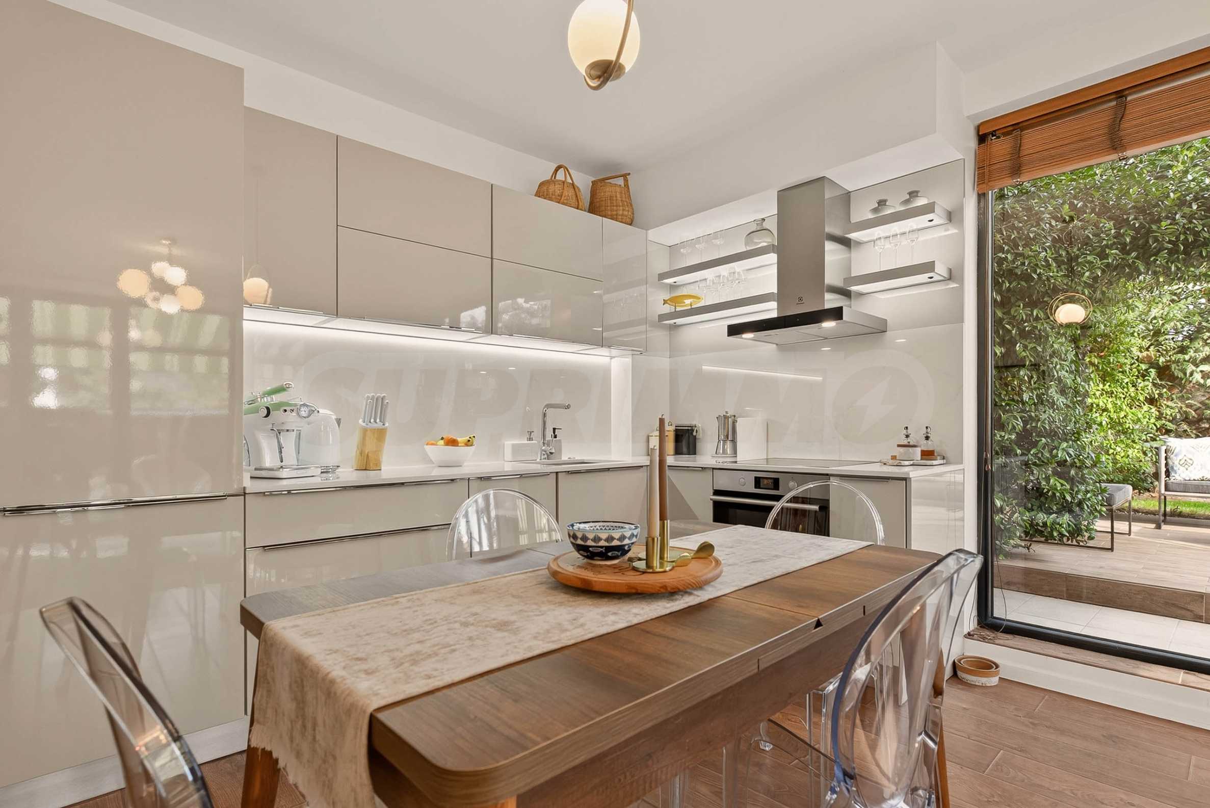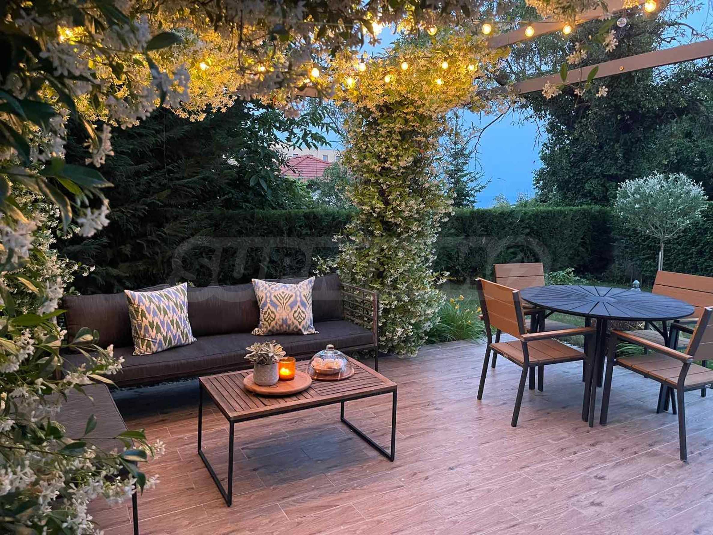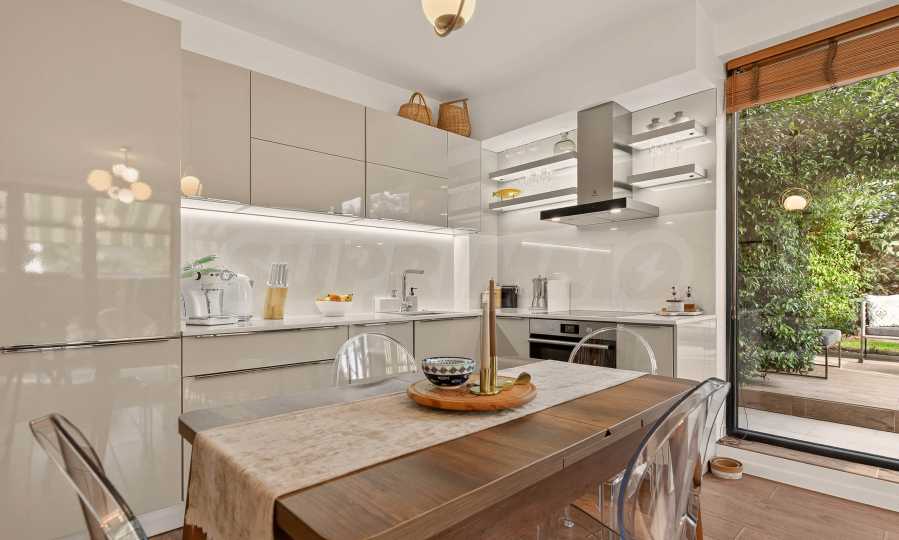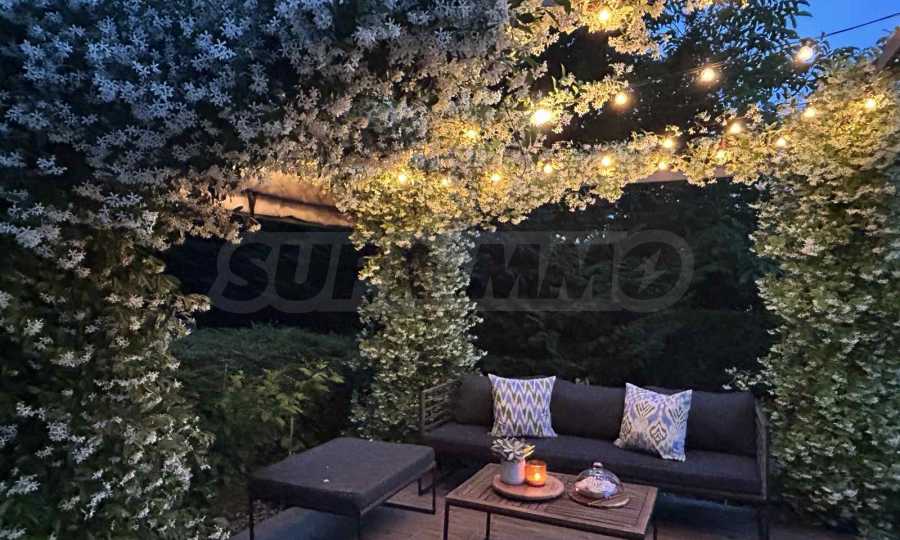 Ogromnym atutem nieruchomości jest zagospodarowany ogród, z którego korzysta tylko ten apartament. Znajdziecie tam altanę, skąpaną w jaśminie, który pachnie przez całe lato, a także stół jadalny i poranną kawę, z której można podziwiać wspaniałe wschody słońca połączone z częściowym widokiem na morze.