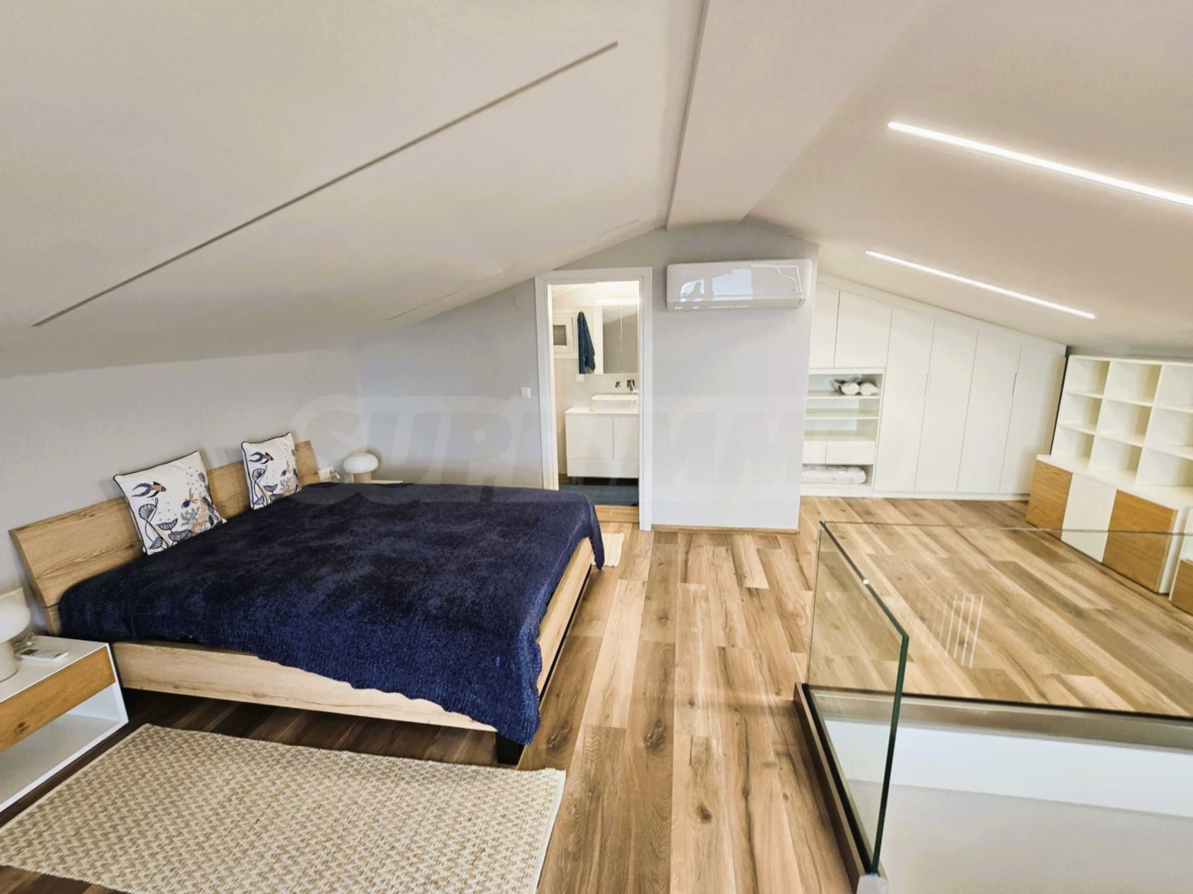 Drugi poziom: osobna sypialnia główna z przylegającą łazienką.