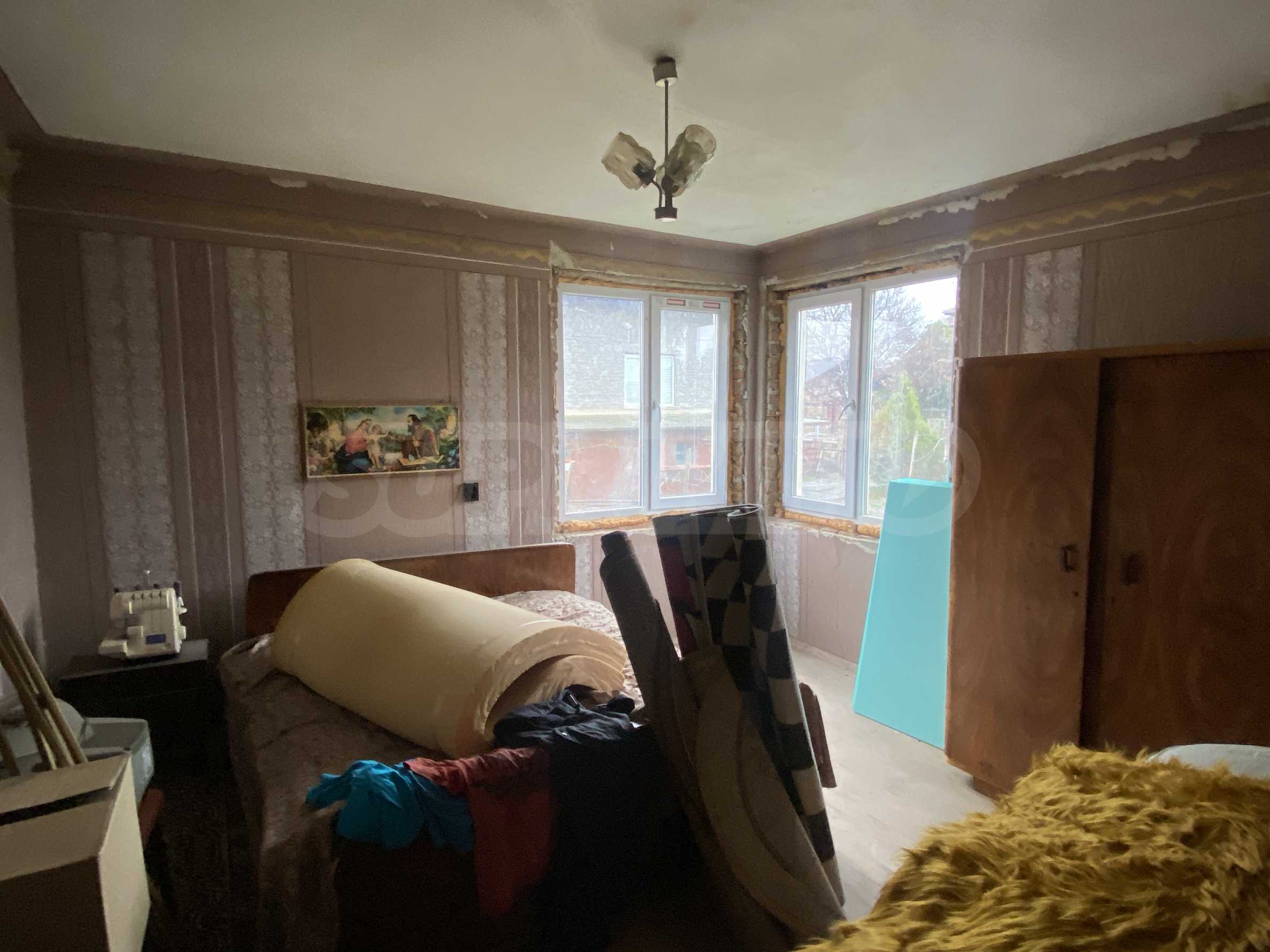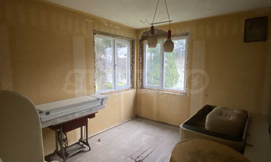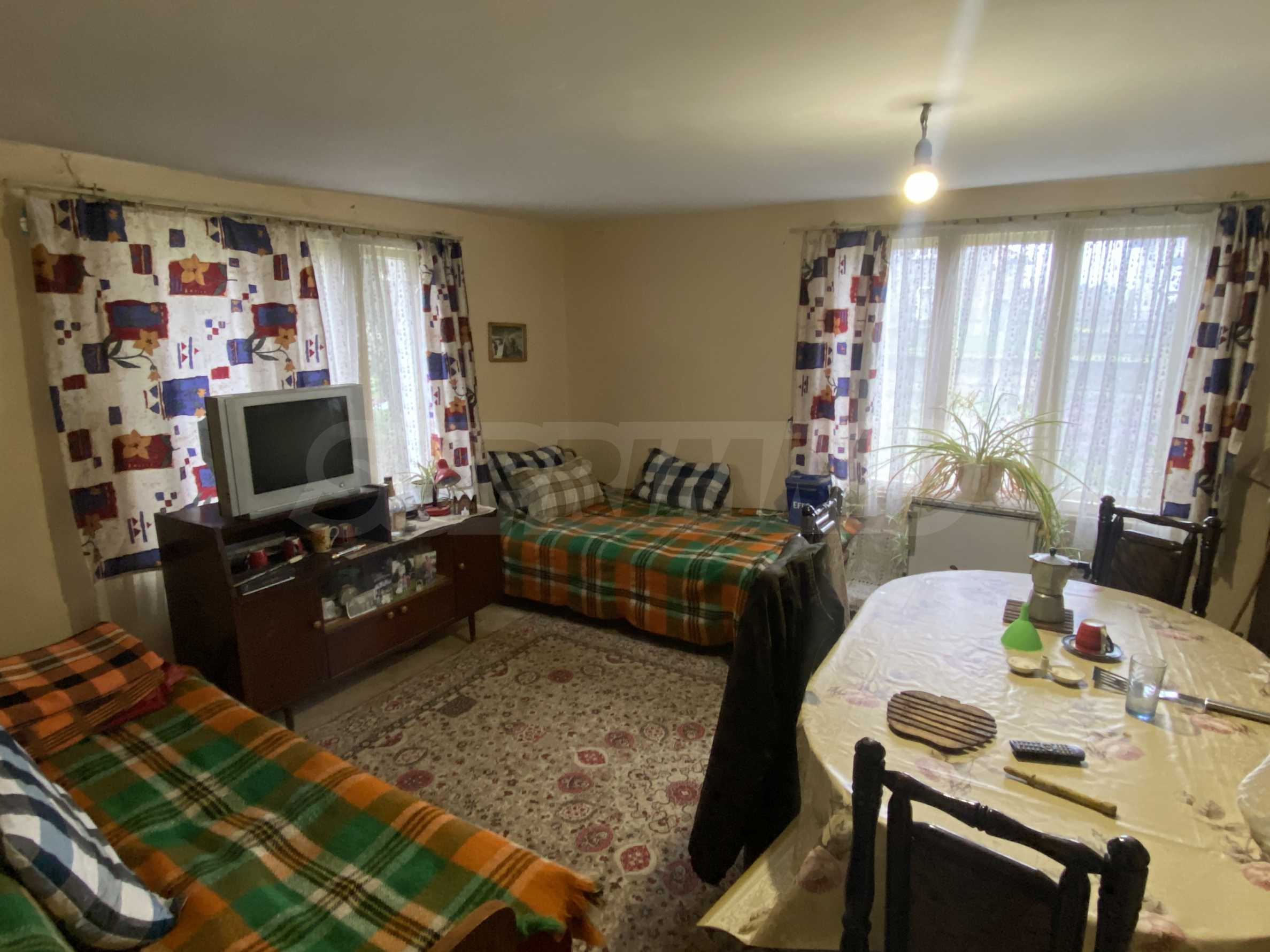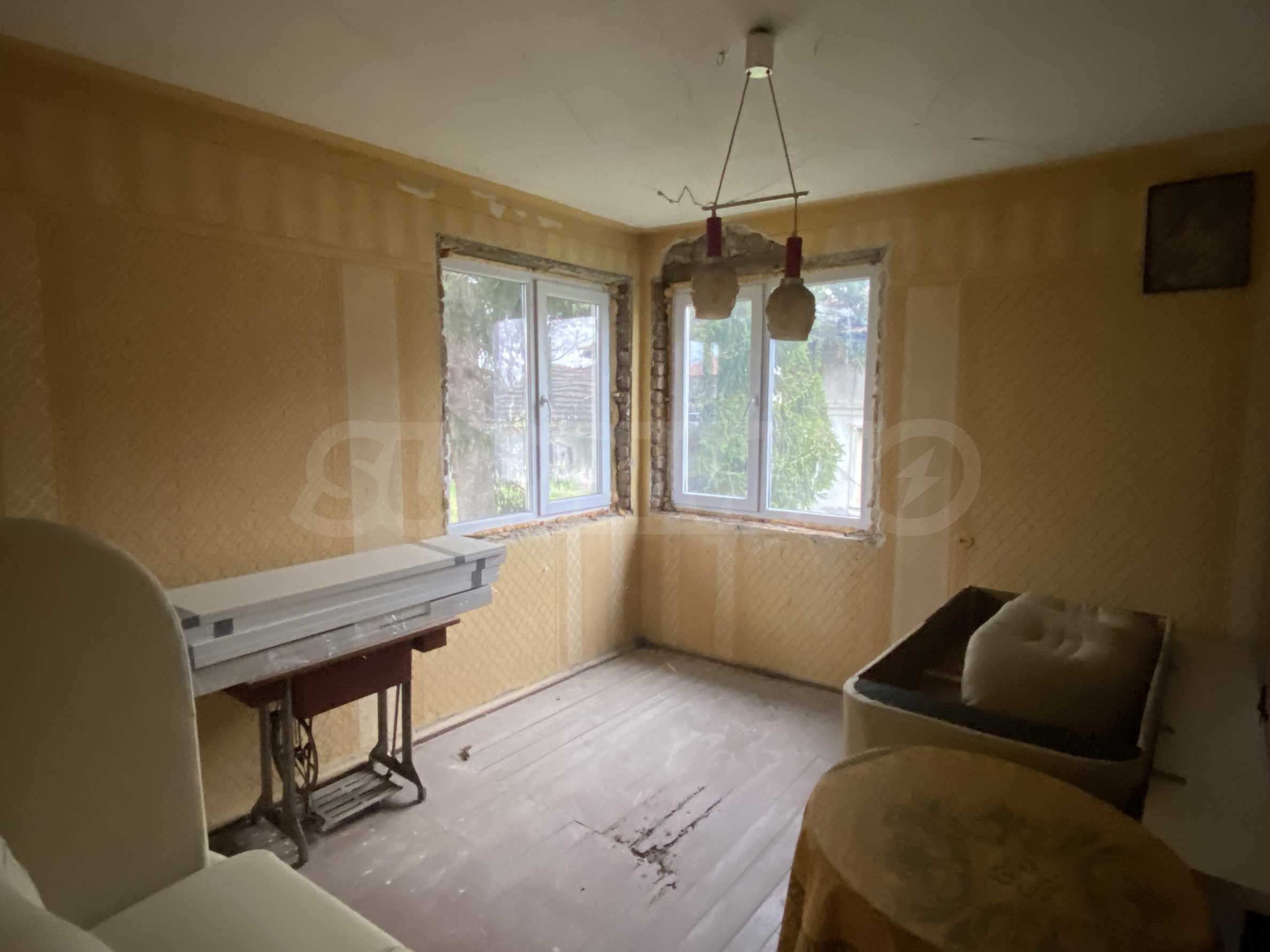 Pierwszy budynek to masywny dom o powierzchni 95 metrów kwadratowych. Wnętrze składa się z przedsionka, kuchni, salonu i dwóch sypialni. Konstrukcja domu jest solidna, z oknami PCV, a podłogi drewniane. Dach jest w dobrym stanie i nie wymaga remontu.