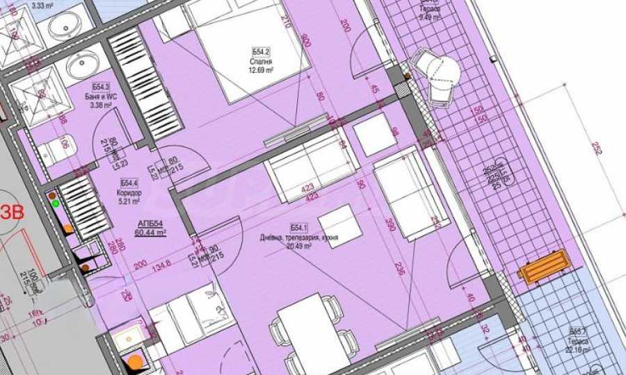 Prezentujemy luksusowo umeblowane mieszkanie z jedną sypialnią na sprzedaż o powierzchni 72 mkw., zlokalizowane na ostatnim, 5. piętrze w nowoczesnym budynku z cegły z 2020 roku, w dzielnicy „Manastirski Livadi” - jednej z najchętniej wybieranych okolic południowej Sofii.
