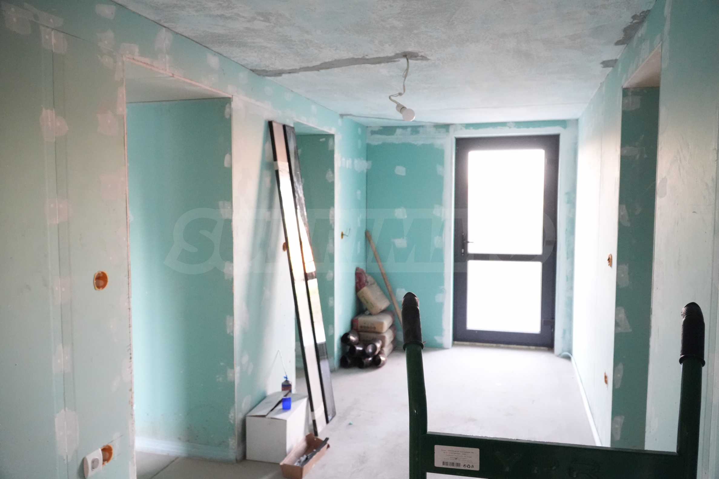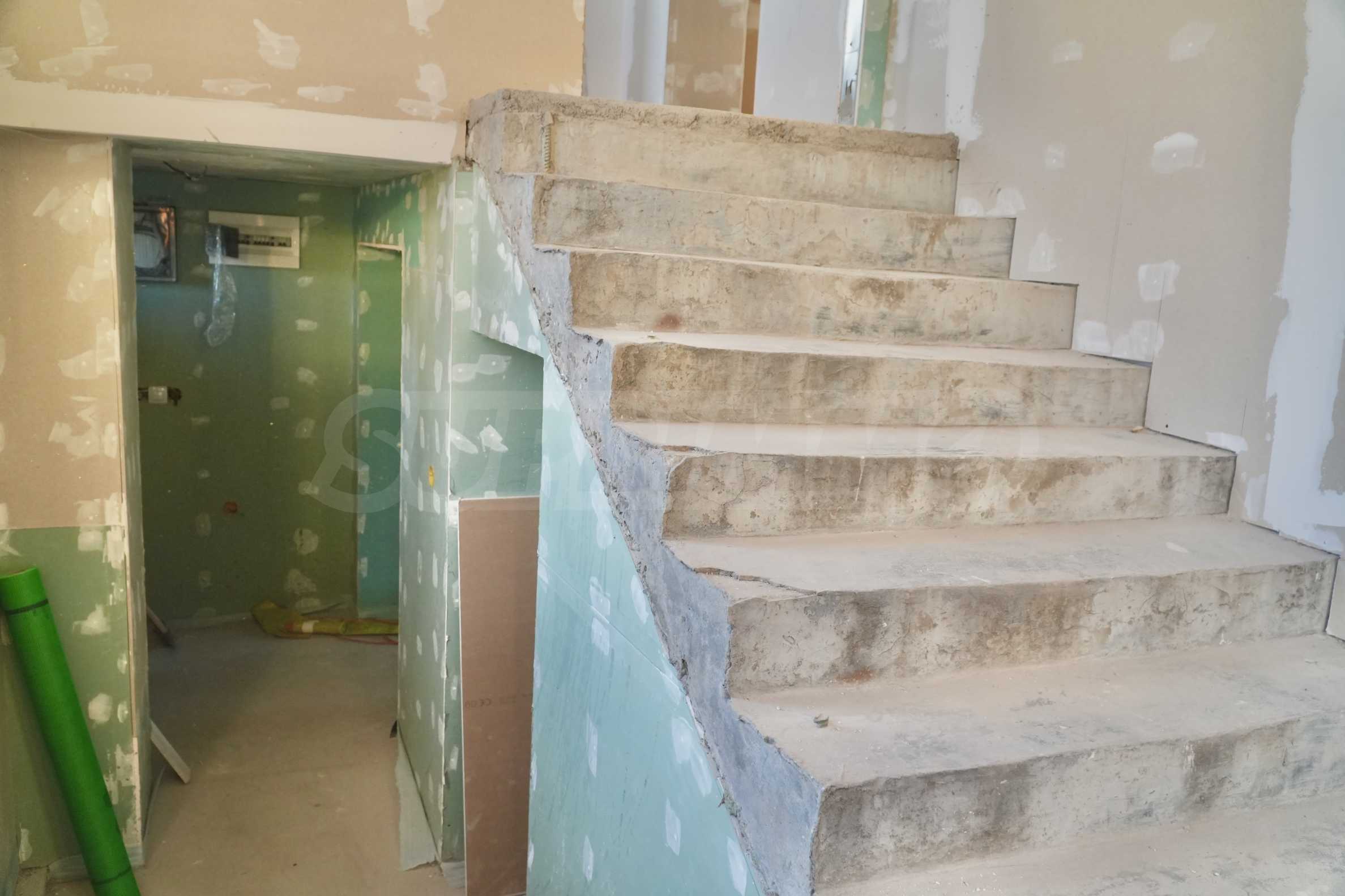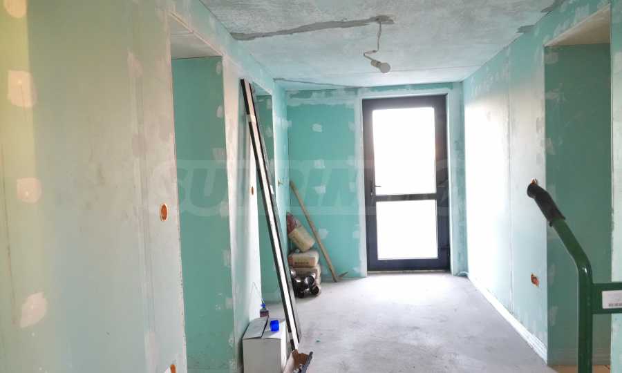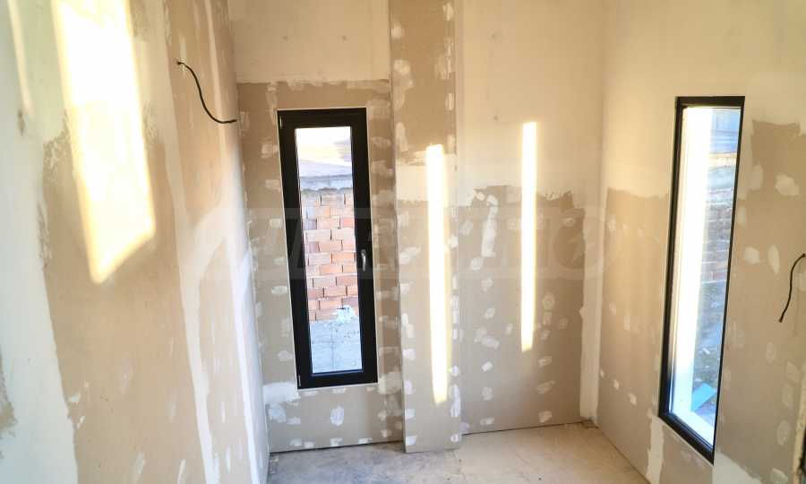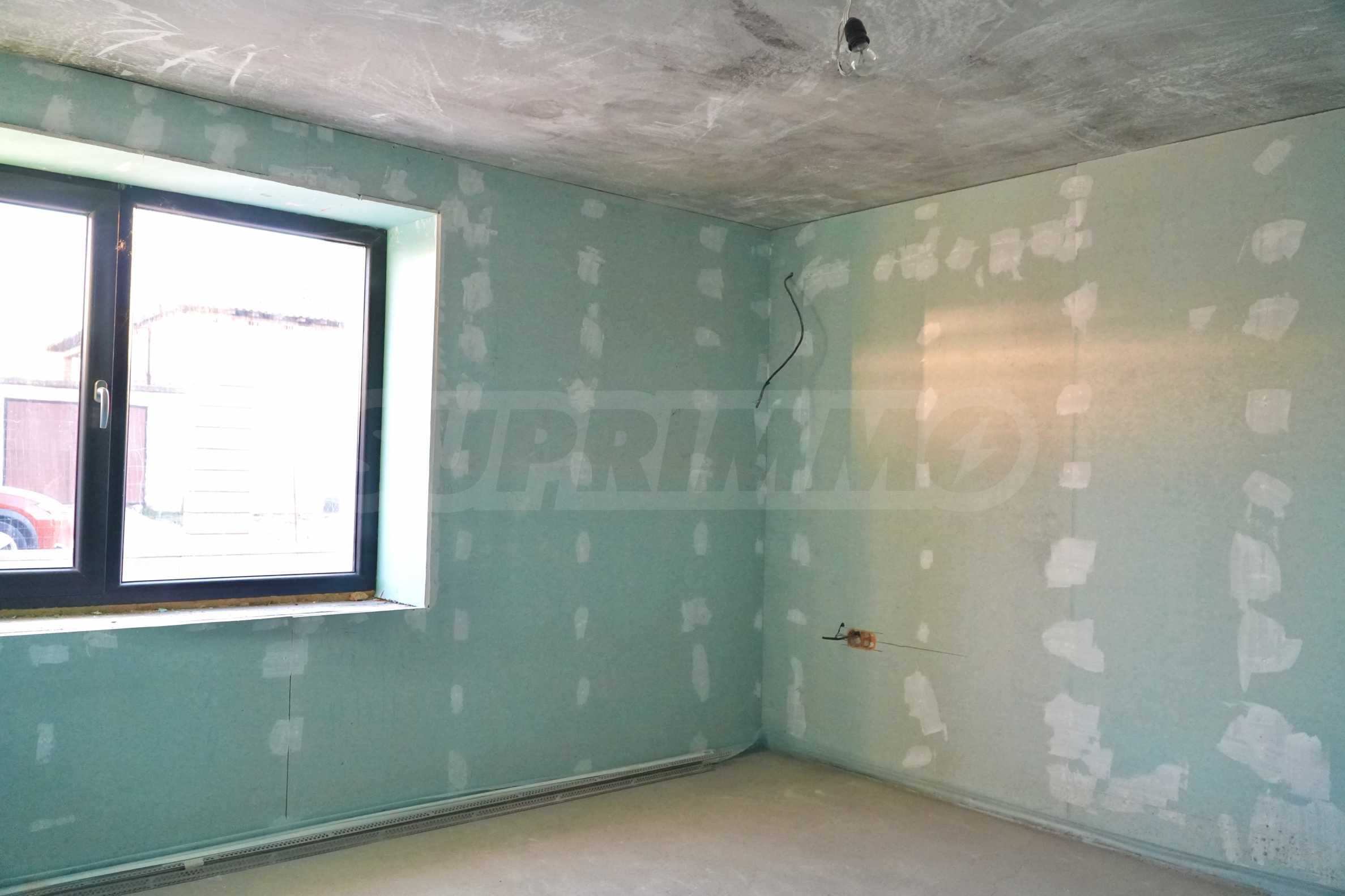 Nieruchomość oferowana jest w stanie wykończonym, jak widać na zdjęciach, gdzie najważniejsze prace budowlane i instalacyjne zostały już wykonane.