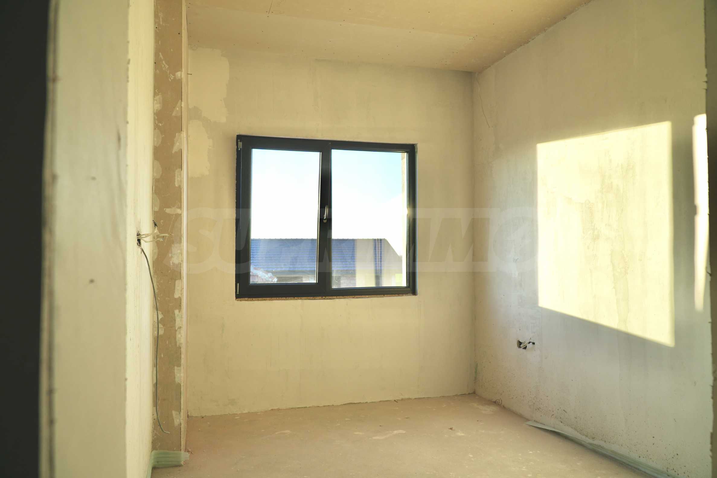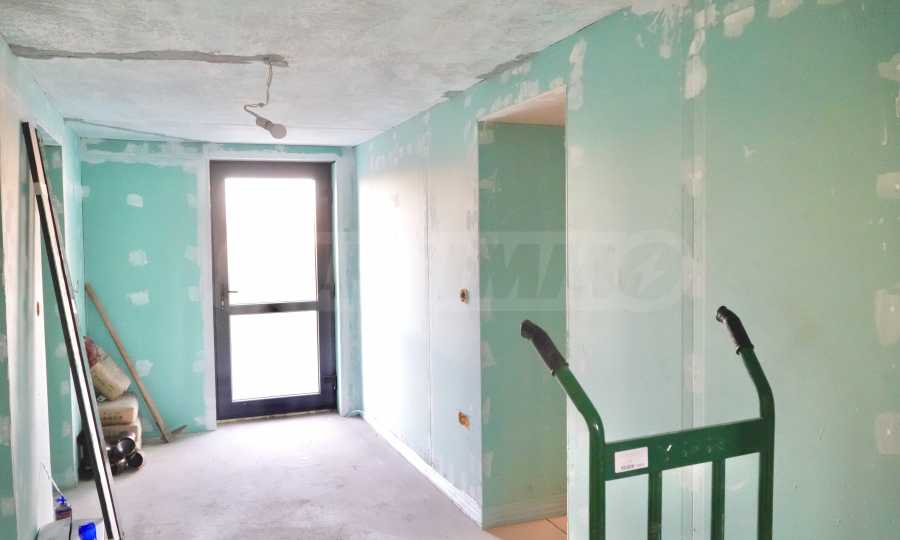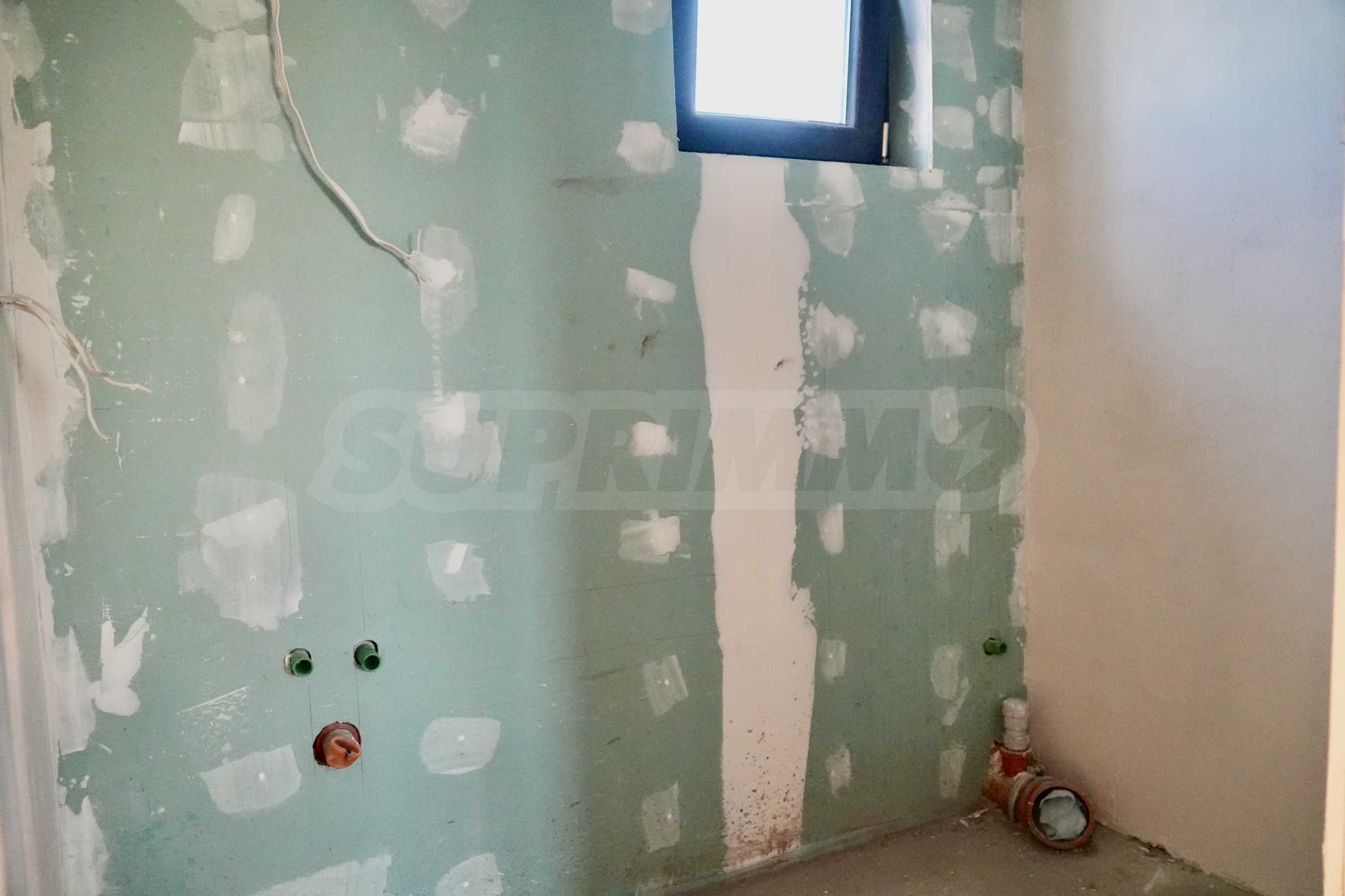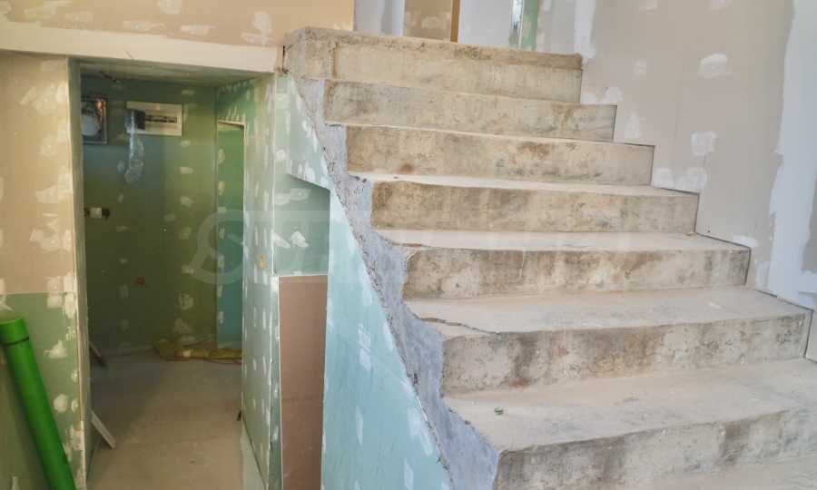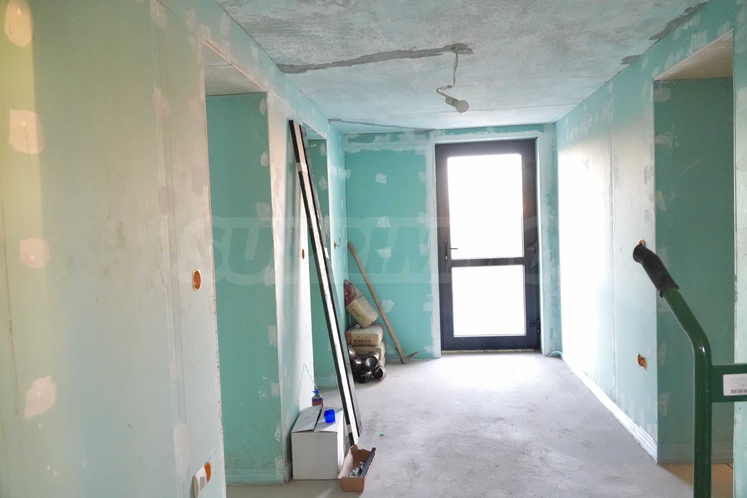 Nieruchomość oferowana jest w stanie wykończonym, jak widać na zdjęciach, gdzie najważniejsze prace budowlane i instalacyjne zostały już wykonane.