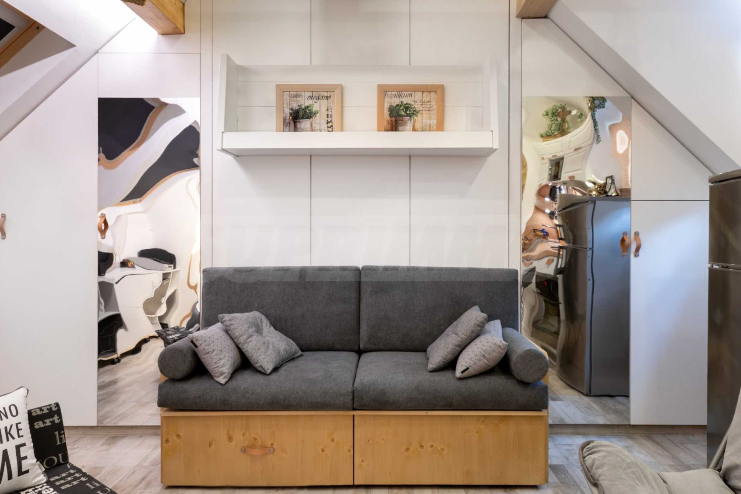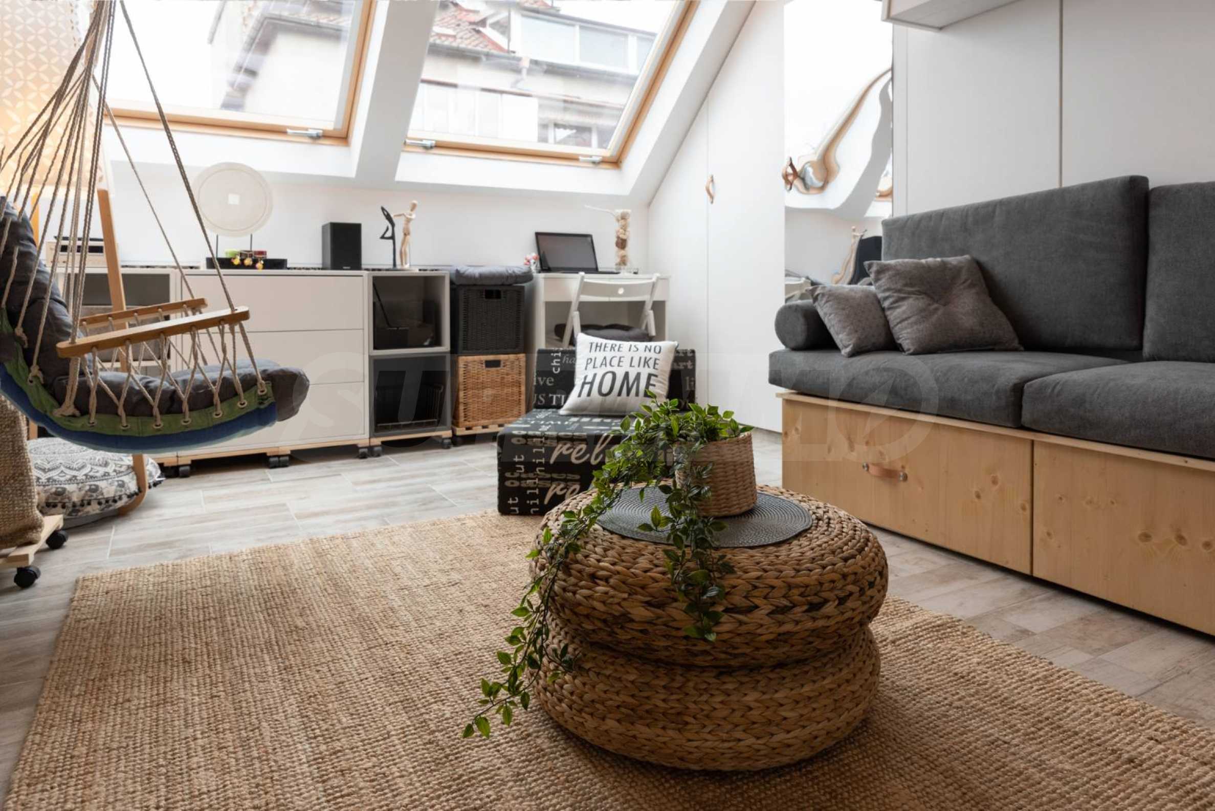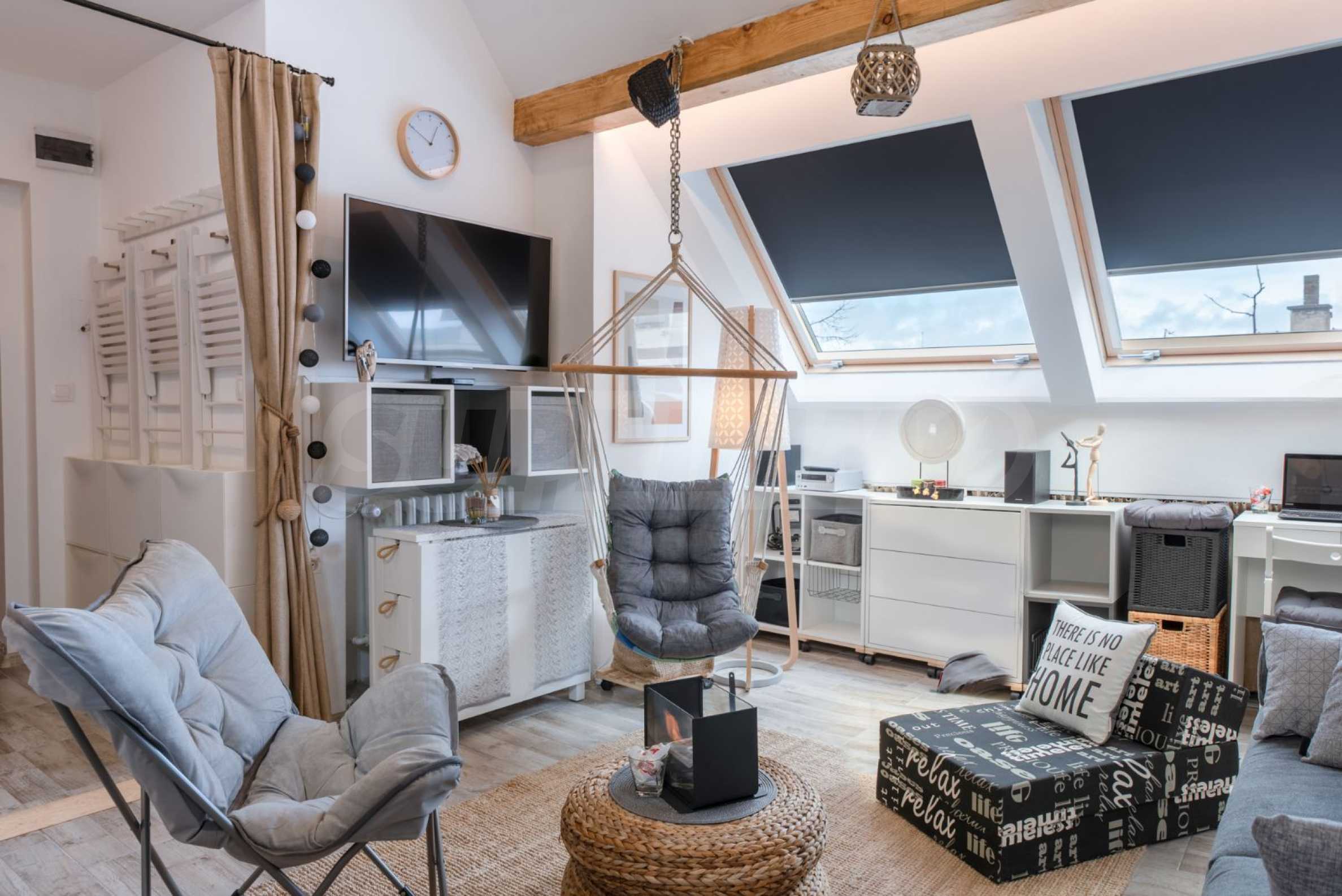 Prezentujemy Państwu przytulne i artystyczne studio do wynajęcia, zlokalizowane w samym sercu Sofii, z niesamowitym widokiem na kultowy Narodowy Pałac Kultury (NPC).