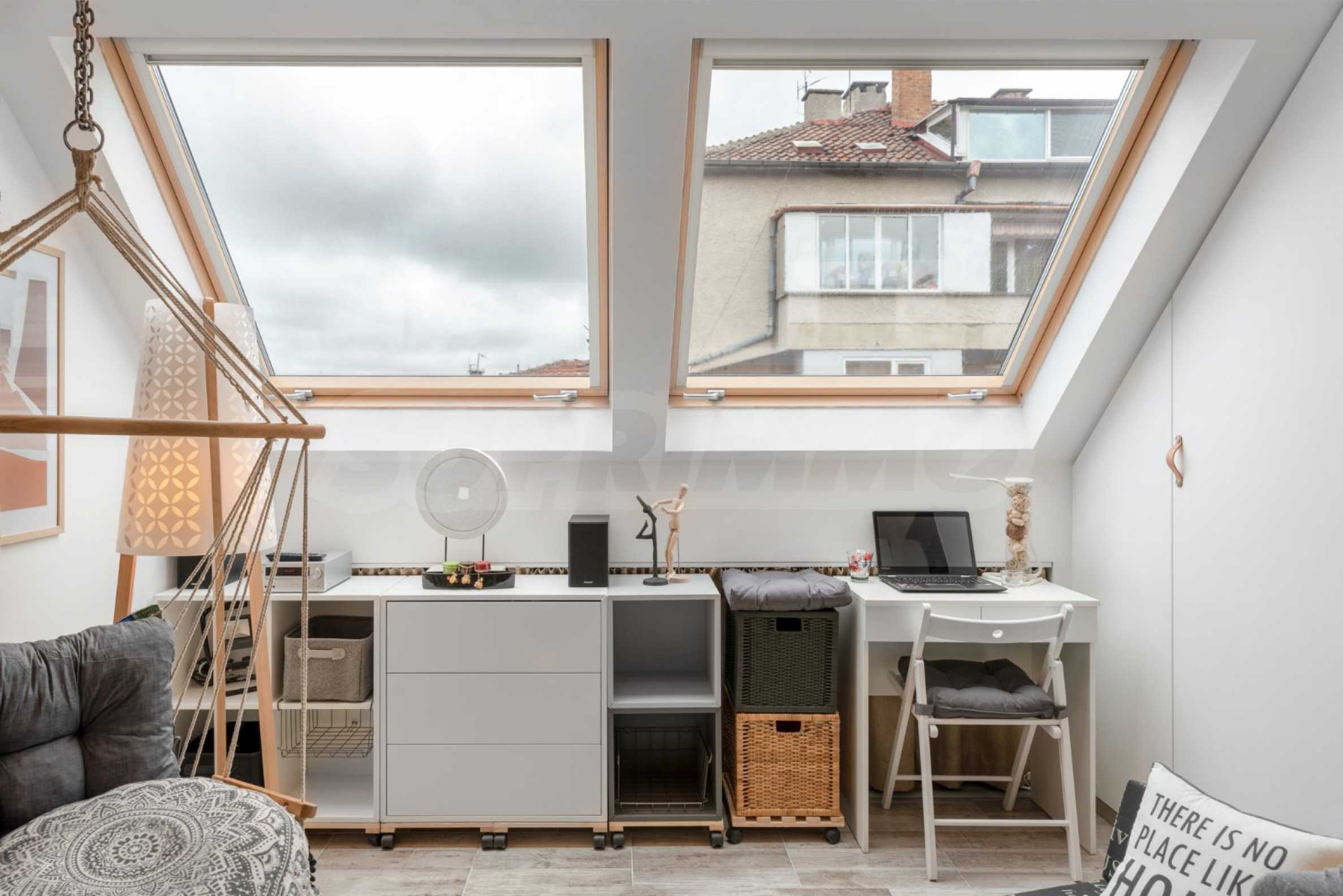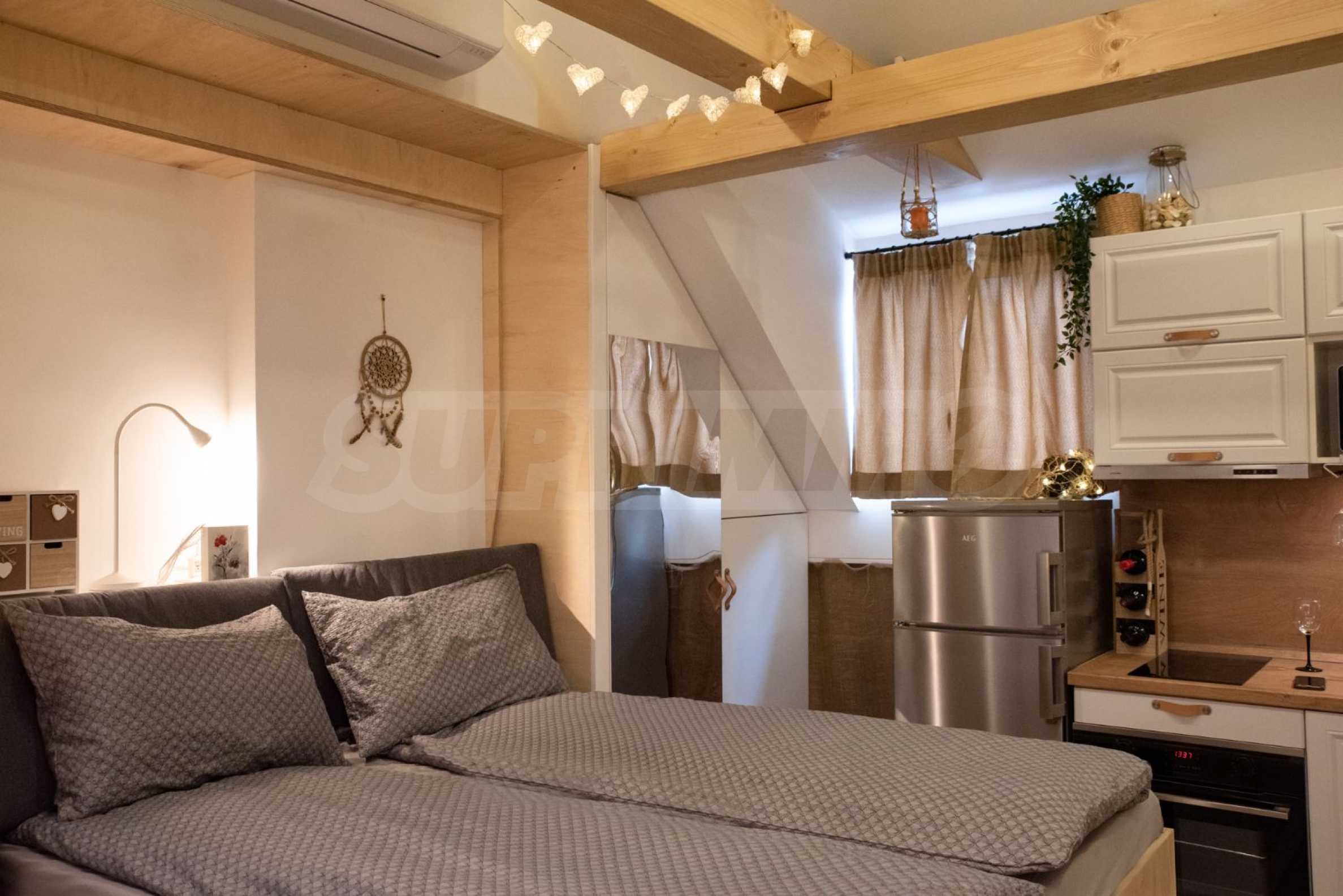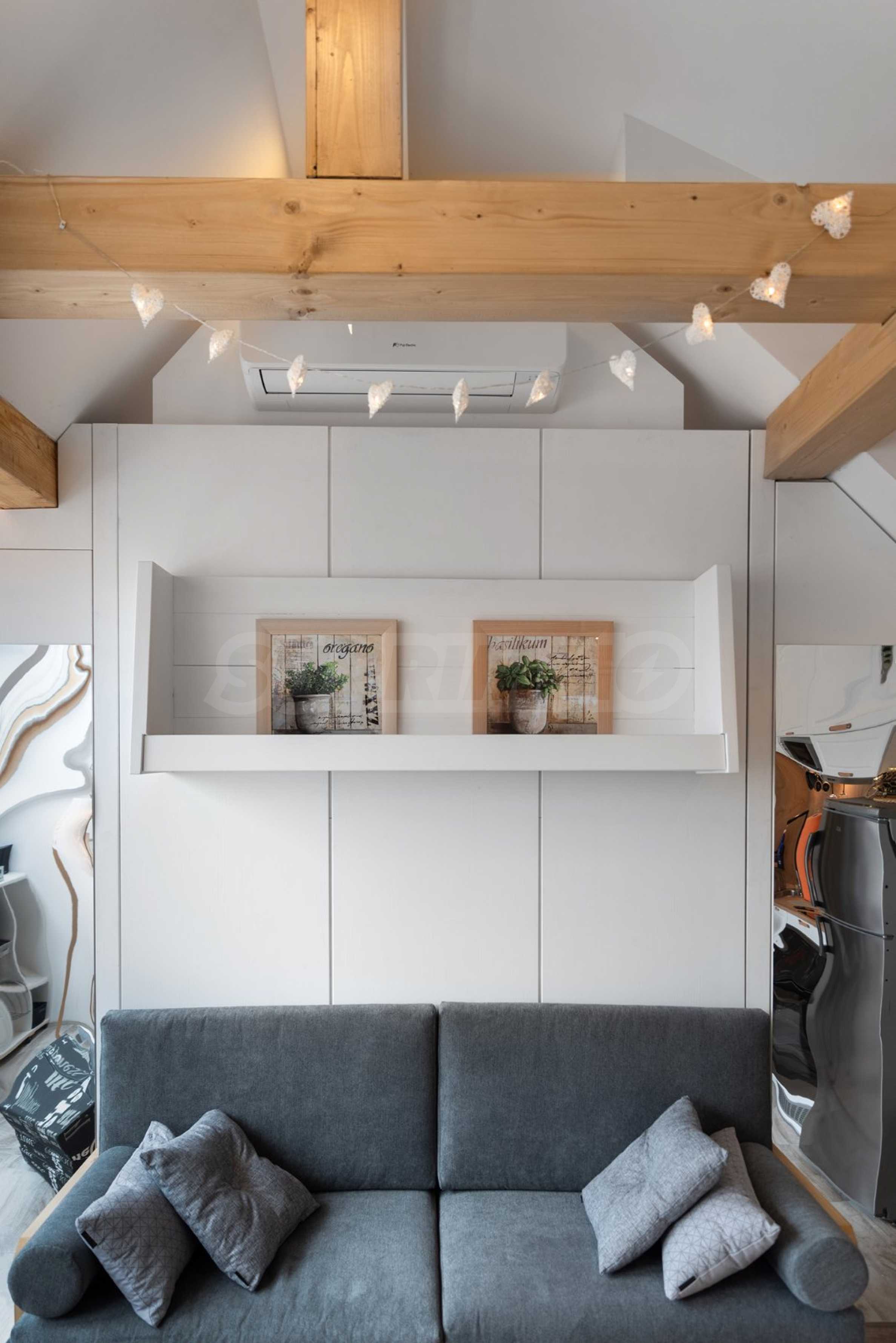 Prezentujemy Państwu przytulne i artystyczne studio do wynajęcia, zlokalizowane w samym sercu Sofii, z niesamowitym widokiem na kultowy Narodowy Pałac Kultury (NPC).