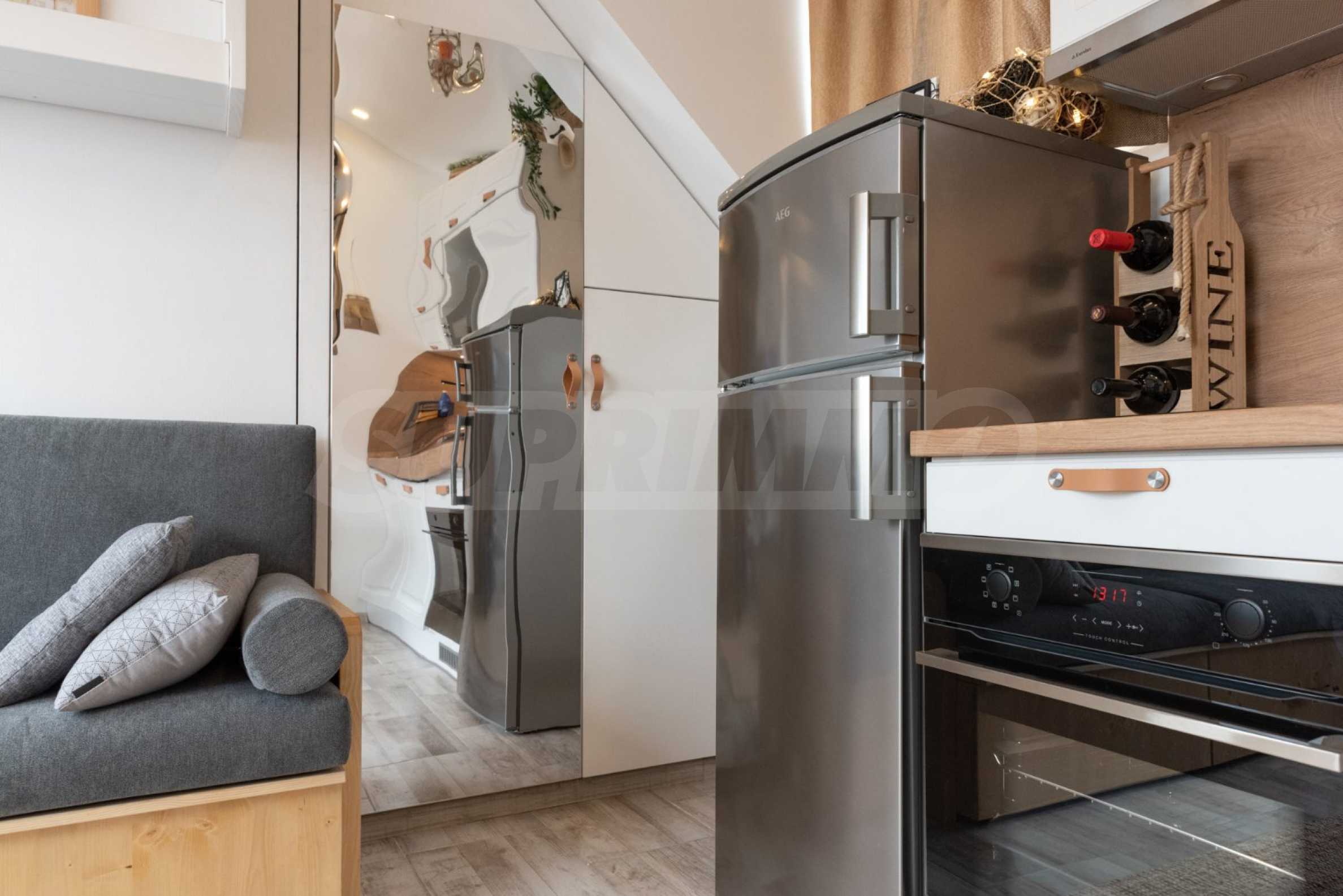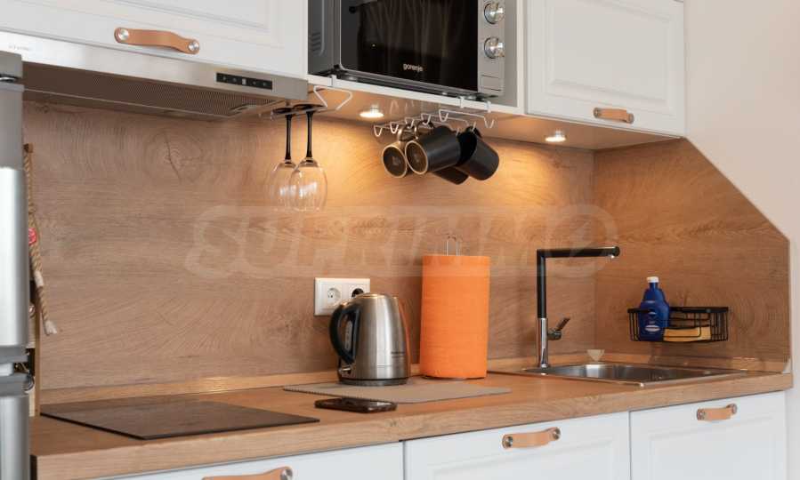Apartament jest w pełni wyposażony we wszystko, czego potrzeba do komfortowego życia – funkcjonalne meble łączą w sobie wygodę i styl. Do dyspozycji Gości jest nowoczesna kuchnia, jasny salon oraz przytulne miejsce do spania. W apartamencie znajduje się pralka z suszarką, kuchenka, mikrofalówka oraz dużo miejsca do przechowywania. Ogrzewanie zapewnia klimatyzacja i centralne ogrzewanie.