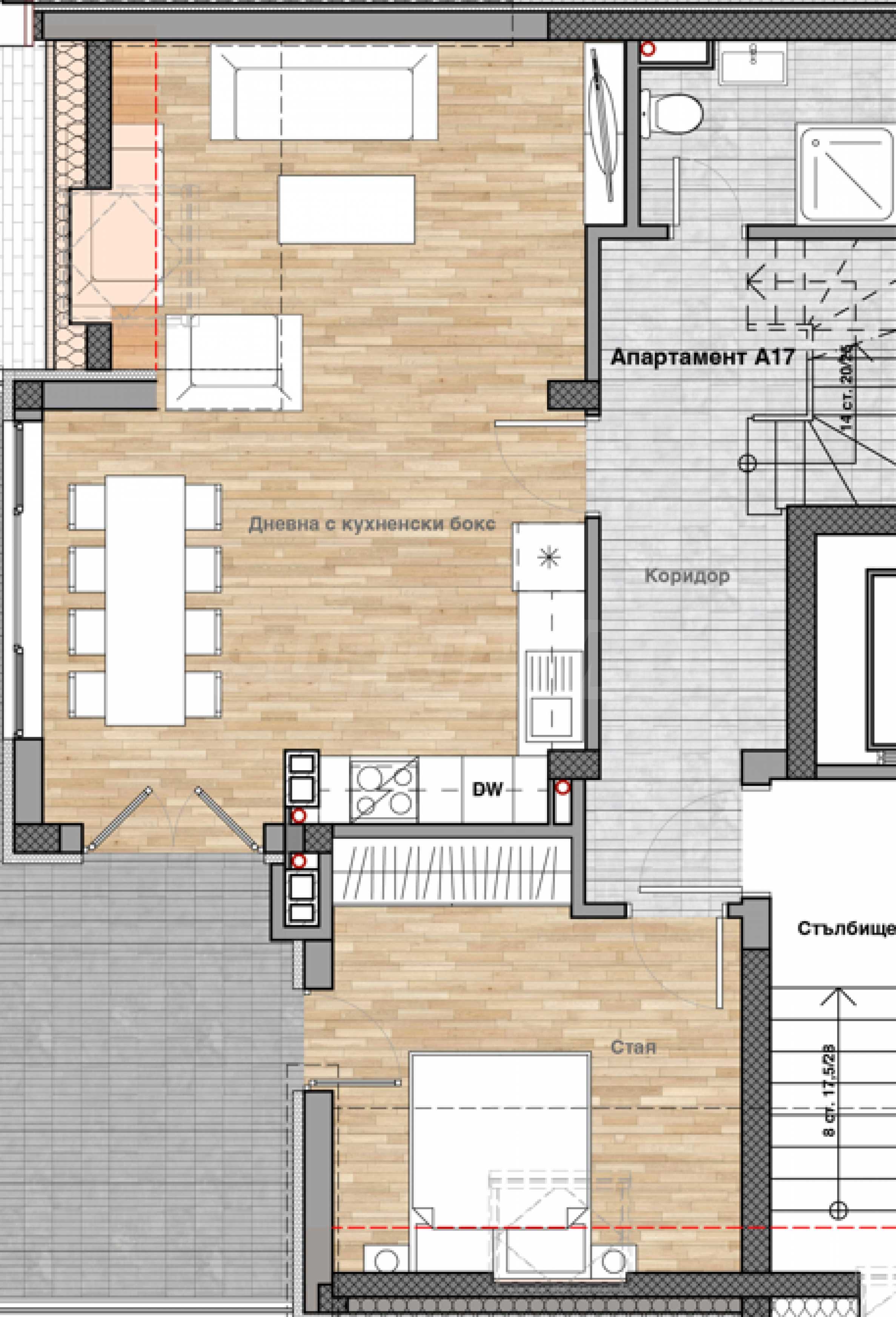 Oferujemy na sprzedaż trzypokojowe mieszkanie typu maisonette w nowym, nowoczesnym budynku mieszkalnym, położonym w prestiżowej części dzielnicy „Manastirski Livadi - Iztok”, zaledwie 10 minut spacerem od South Park.