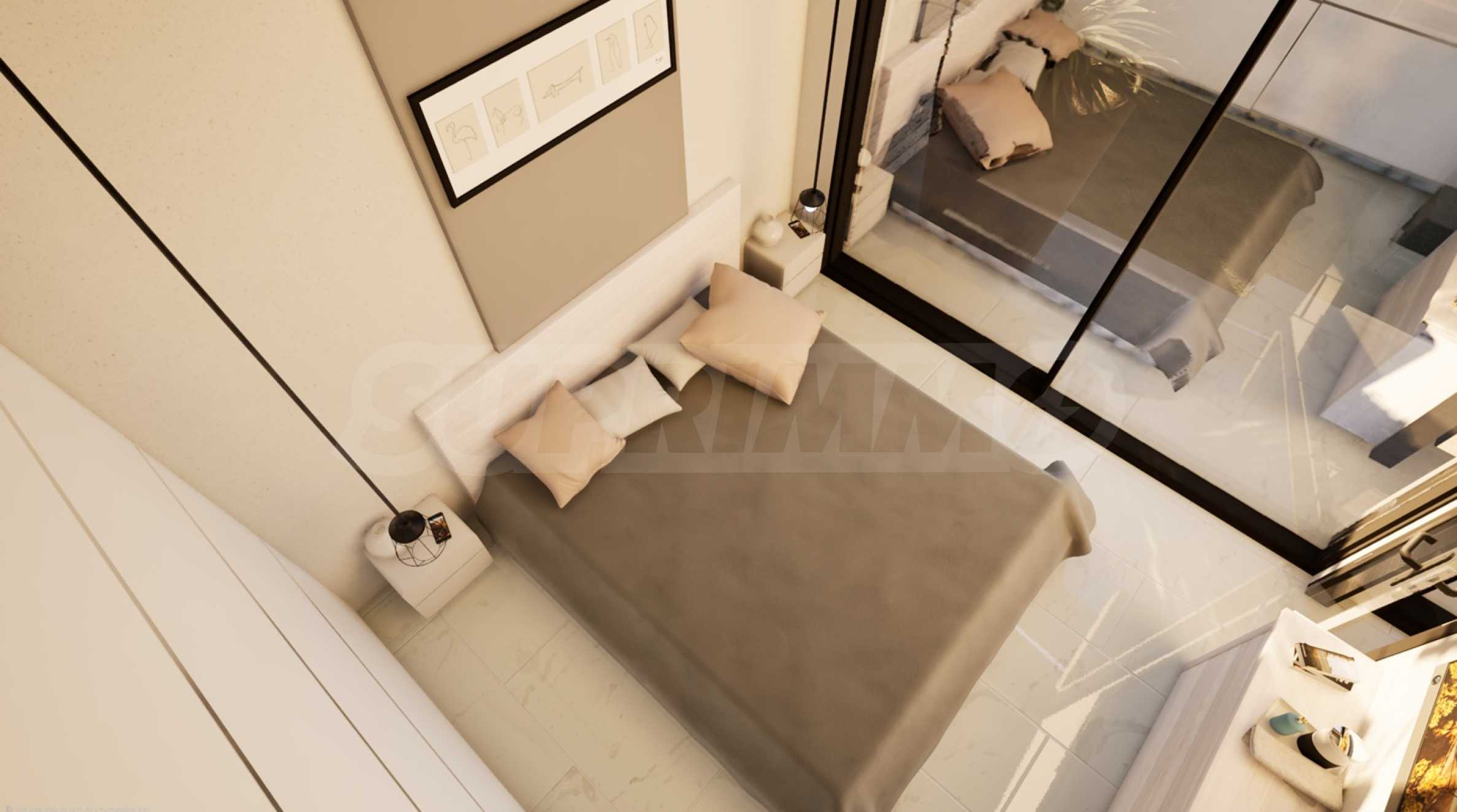 Projekt rezydencji stawia na naturalne światło. Imponujące, sięgające od podłogi do sufitu szklane powierzchnie zacierają granice między wnętrzem a zewnętrzem, wypełniając każdy zakątek światłem słonecznym. To ciągłe połączenie ze światłem i zielenią tworzy atmosferę relaksu i odnowy, idealną do ucieczki od trudów codziennego życia.