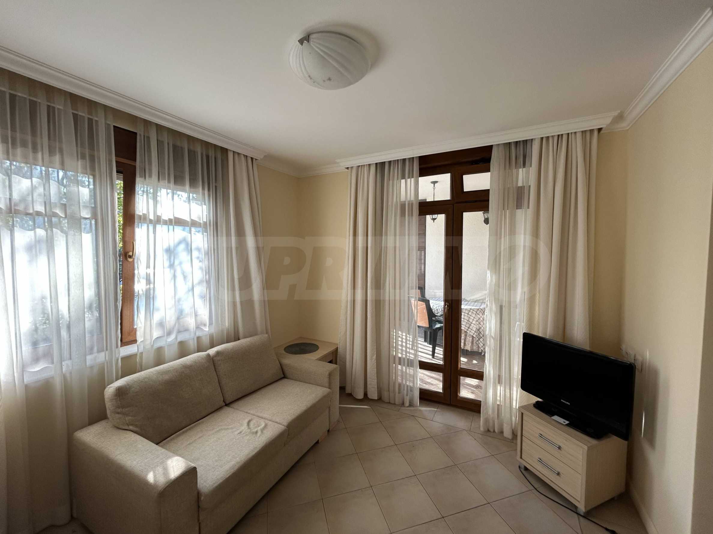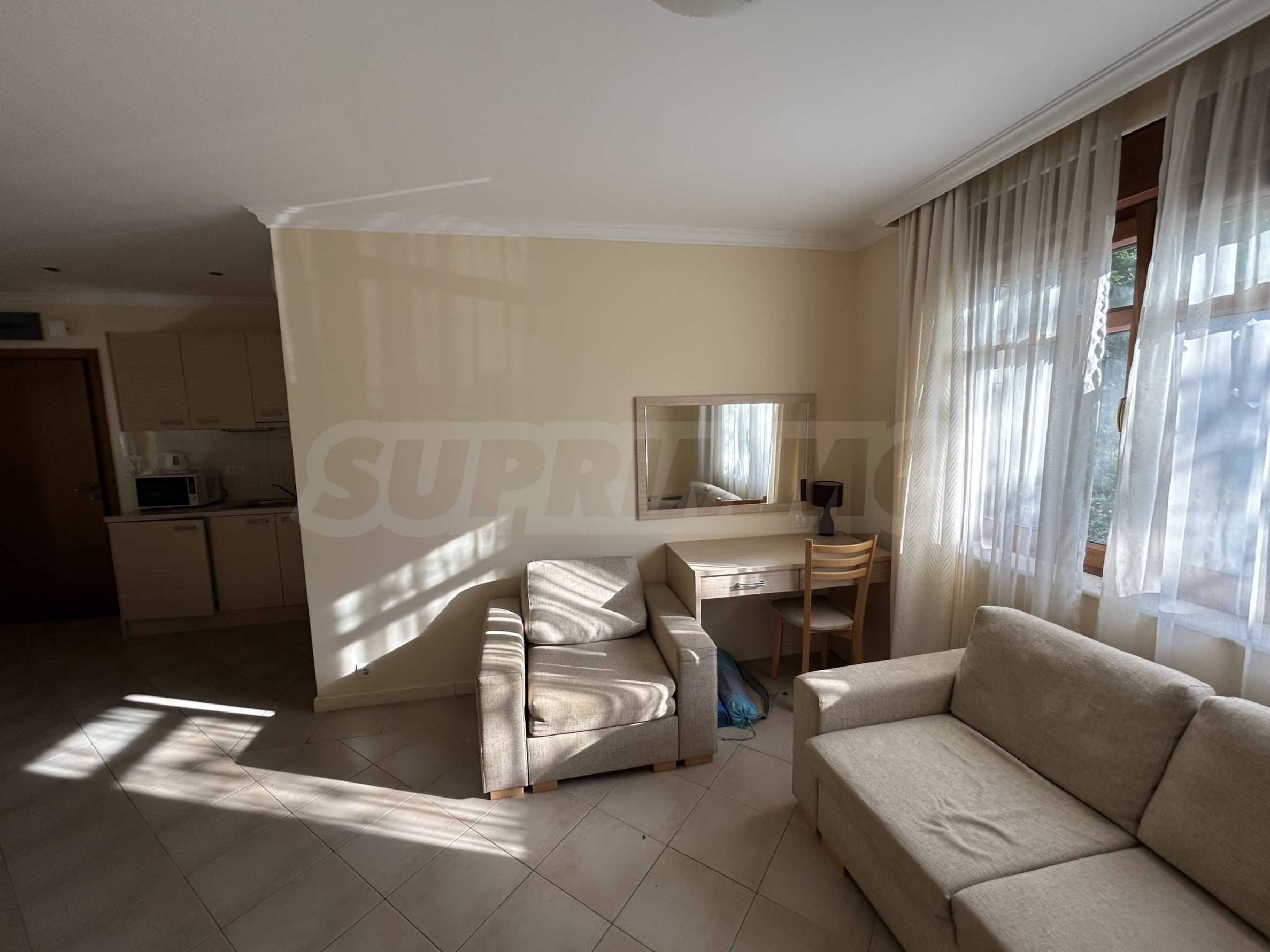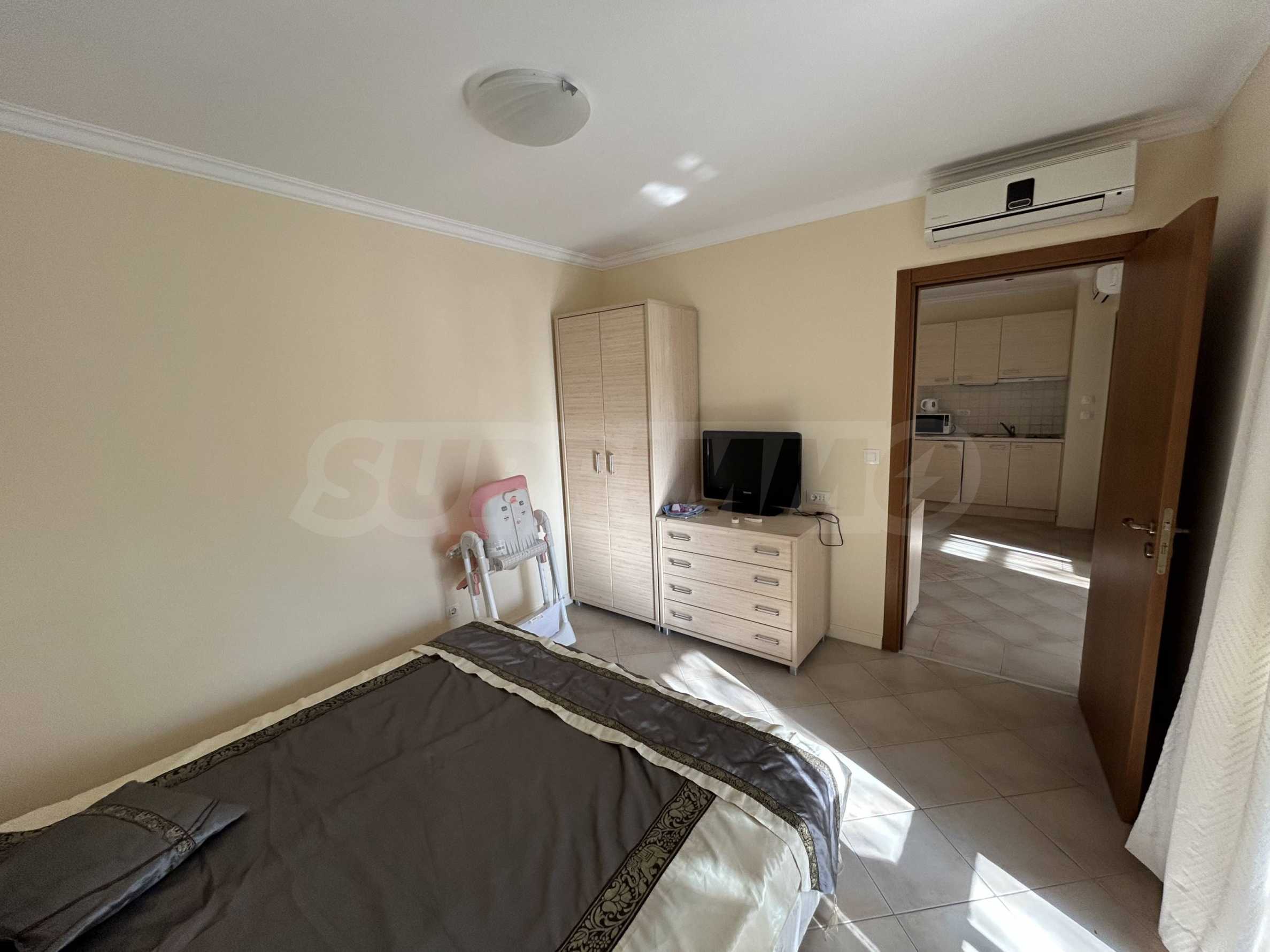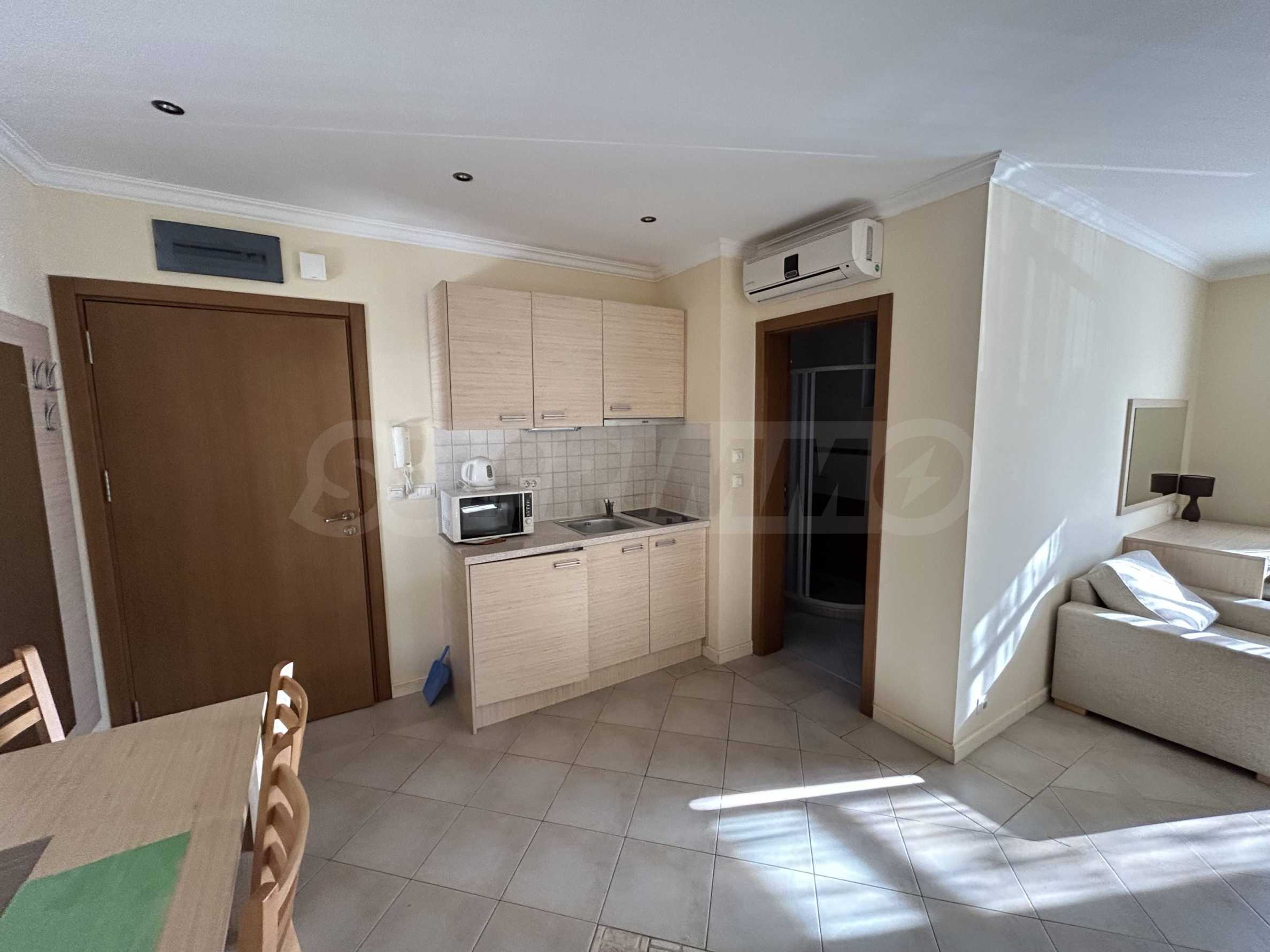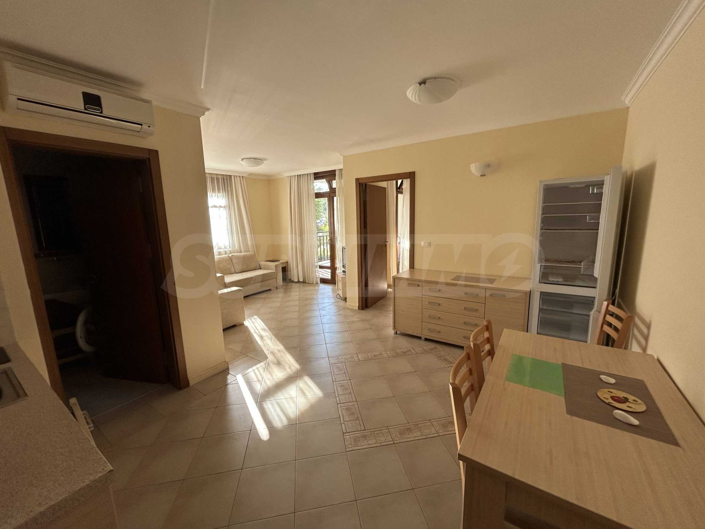 Oferujemy na sprzedaż komfortowe, jednopokojowe mieszkanie w elitarnym nadmorskim kompleksie z basenami i własnym parkiem, zaledwie 2 km od miasta Sozopol.