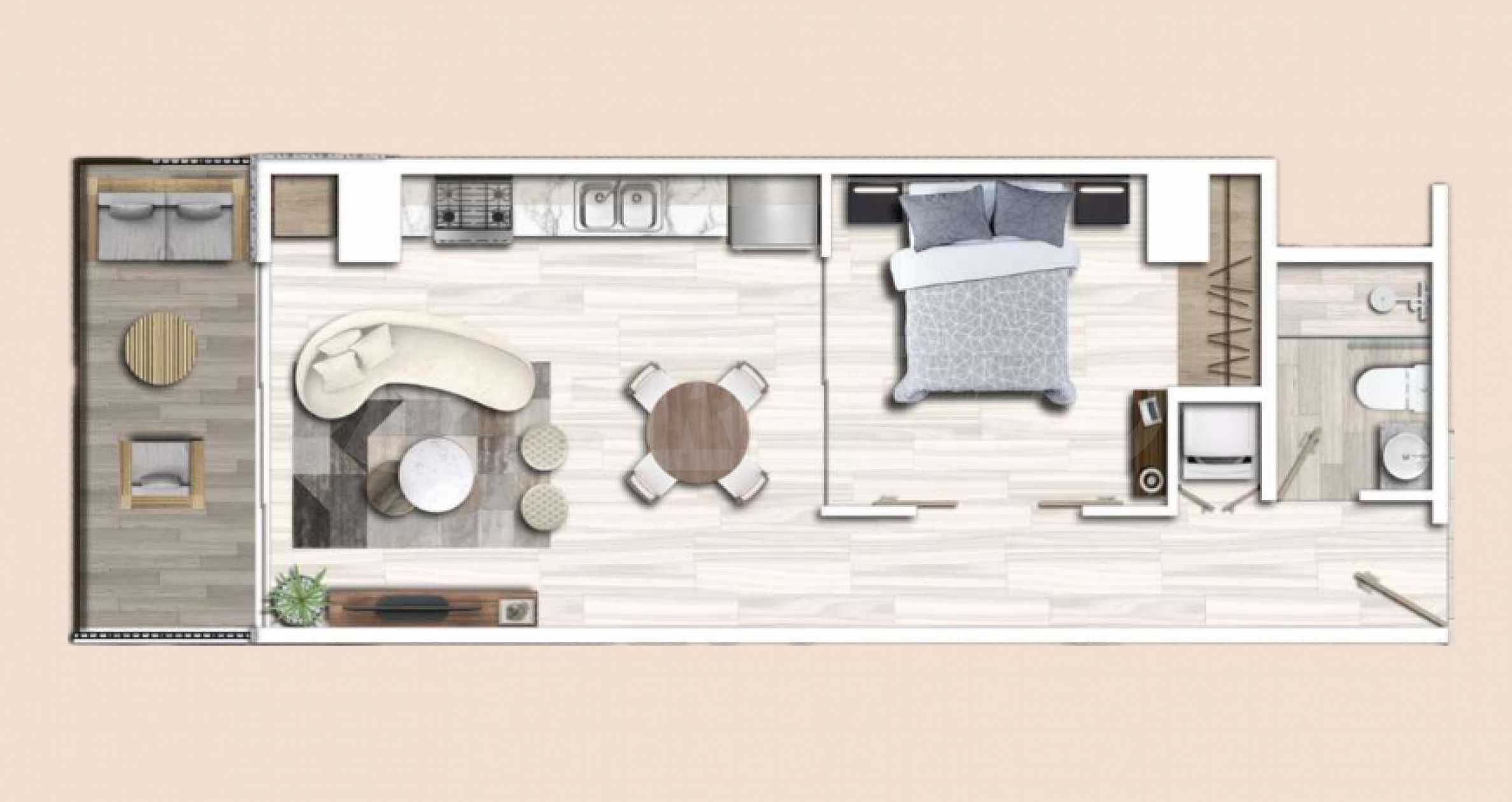 Apartament znajduje się na 10. piętrze budynku i ma powierzchnię całkowitą 58 m², z czego 50 m² jest przeznaczone na przestrzeń wewnętrzną, a 8 m² na przestrzeń zewnętrzną. Wysokie sufity i okna sięgające od podłogi do sufitu, stanowiące ramy, pozwalają uchwycić niesamowite krajobrazy, które morze maluje dla Ciebie każdego dnia. Układ nieruchomości obejmuje salon z kuchnią, wygodną sypialnię, łazienkę z toaletą oraz balkon.