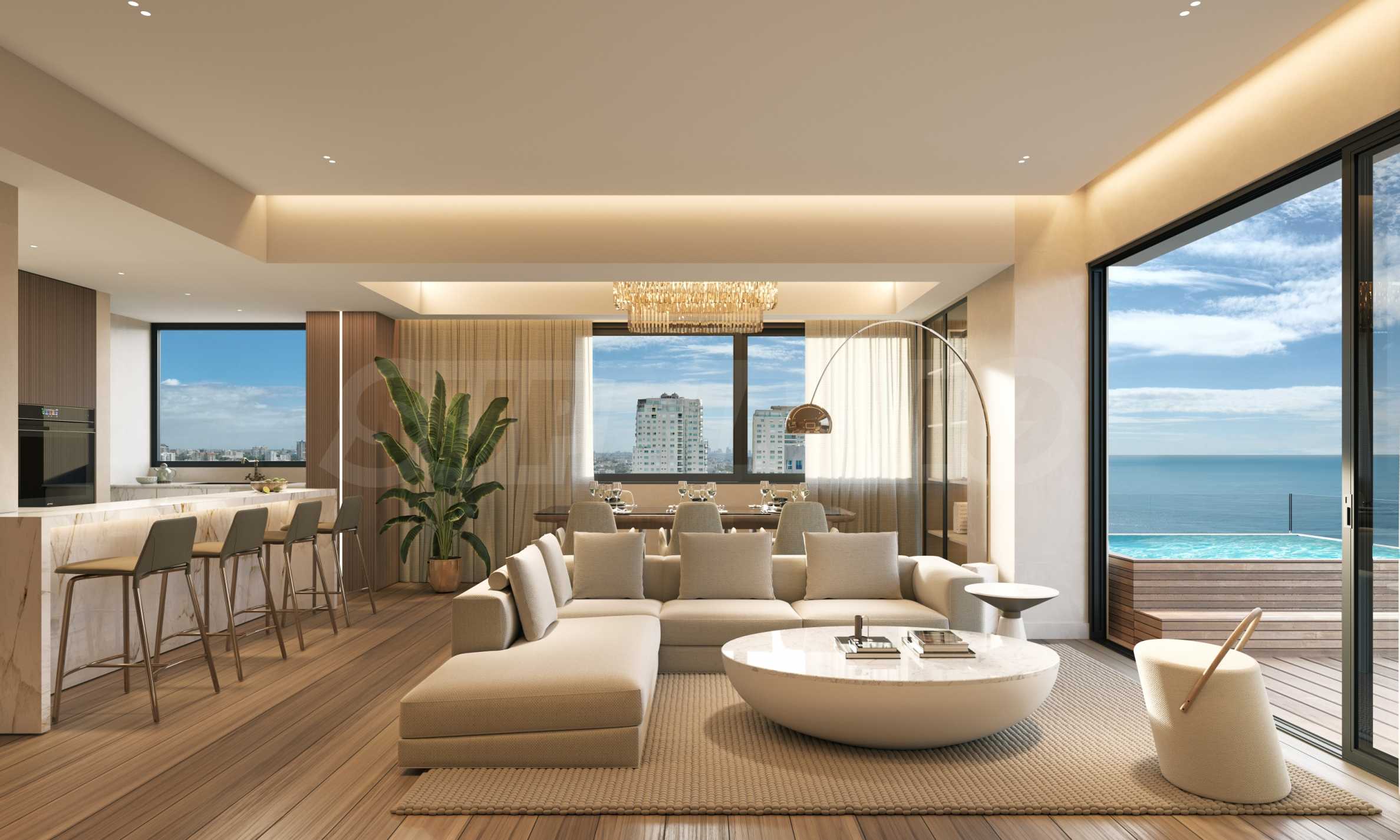 Apartament znajduje się na 21. piętrze budynku i ma powierzchnię całkowitą 88 m², z czego 81 m² jest przeznaczone na przestrzeń wewnętrzną, a 7 m² na przestrzeń zewnętrzną. Wysokie sufity i okna sięgające od podłogi do sufitu, stanowiące ramy, pozwalają na podziwianie niesamowitych krajobrazów, które morze maluje przed Tobą każdego dnia. Układ nieruchomości jest niezwykle komfortowy i funkcjonalny, obejmuje przestronny salon z otwartą przestrzenią, łączący kuchnię i jadalnię, sypialnię z własną łazienką i garderobą, toaletę dla gości oraz balkon. W apartamencie znajduje się również dodatkowy pokój, który można wydzielić jako pokój gier, bibliotekę, biuro lub pokój gościnny.