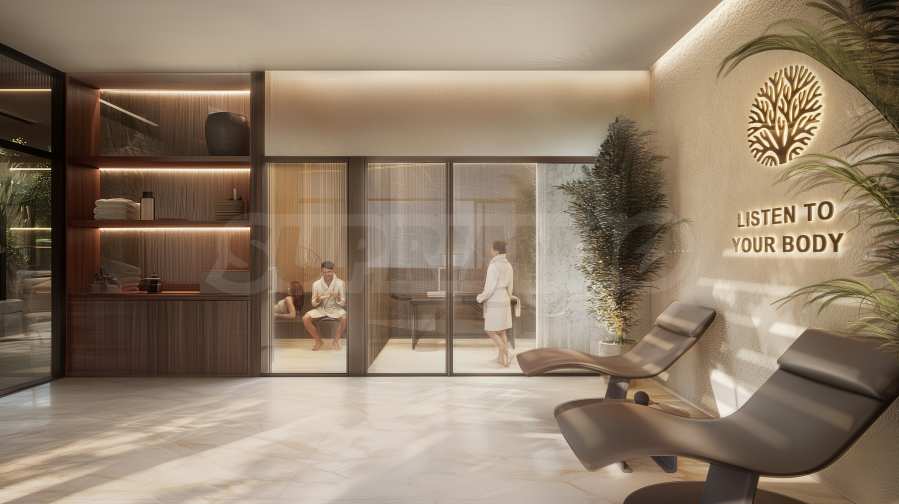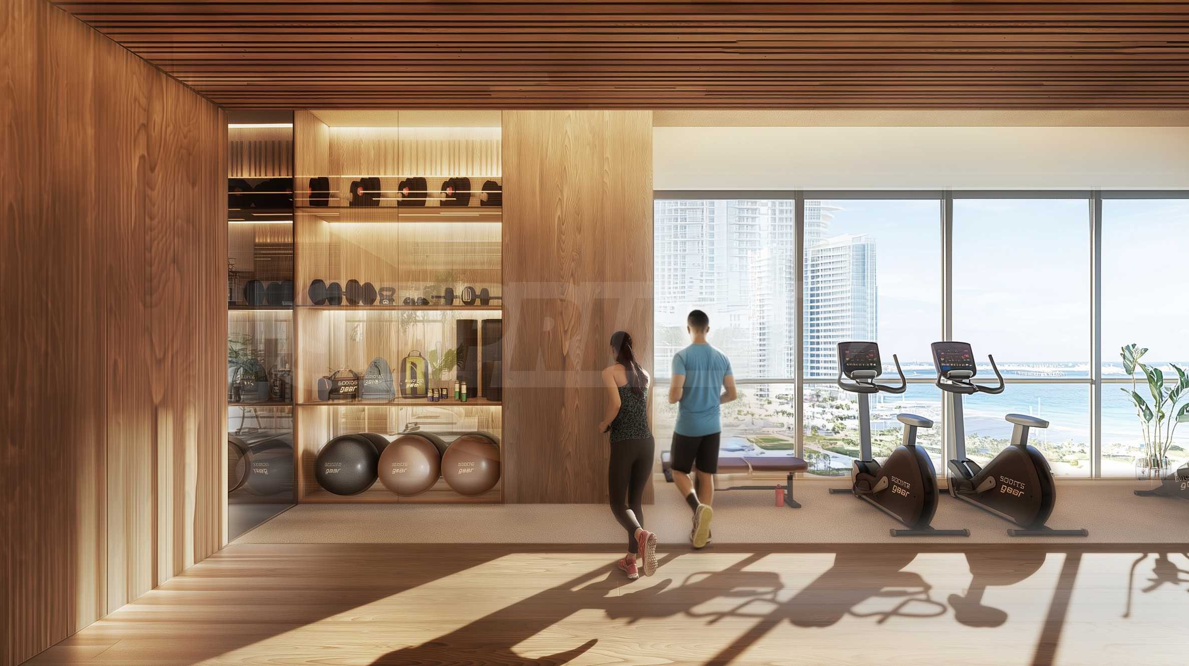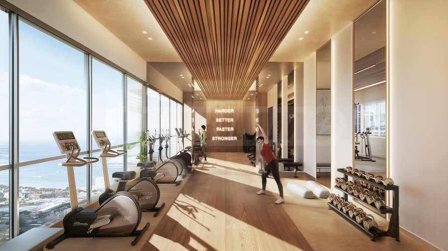 Na ósmym piętrze znajduje się w pełni wyposażona siłownia z oknami sięgającymi od podłogi do sufitu i inspirującym panoramicznym widokiem na morze. Tutaj pielęgnacja ciała łączy się z poczuciem wolności i spokoju – to połączenie, które motywuje, tonizuje i przynosi harmonię.