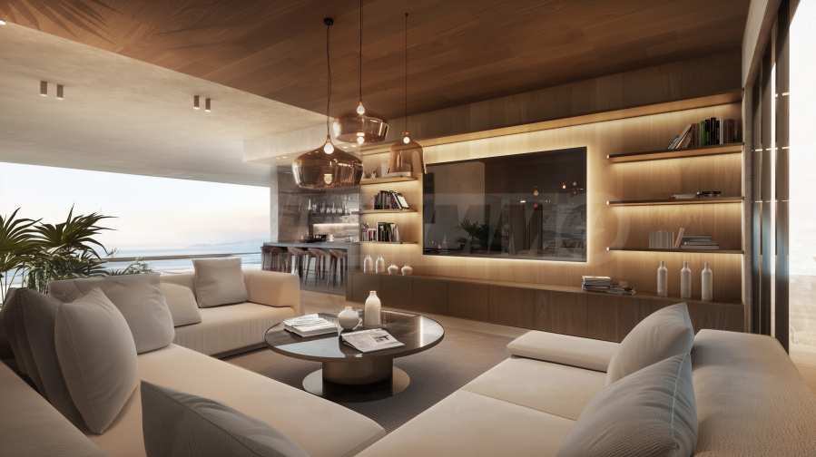 Wśród innych udogodnień, imponujący jest elegancki basen typu infinity z miejscami do relaksu i bezpośrednim widokiem na morze – ulubione miejsce relaksu i rodzinnych chwil w ciepłe dni. Zanurz się w spokojnej wodzie z poczuciem, że morze ciągnie się bez końca przed Tobą, nie opuszczając komfortu własnego domu.