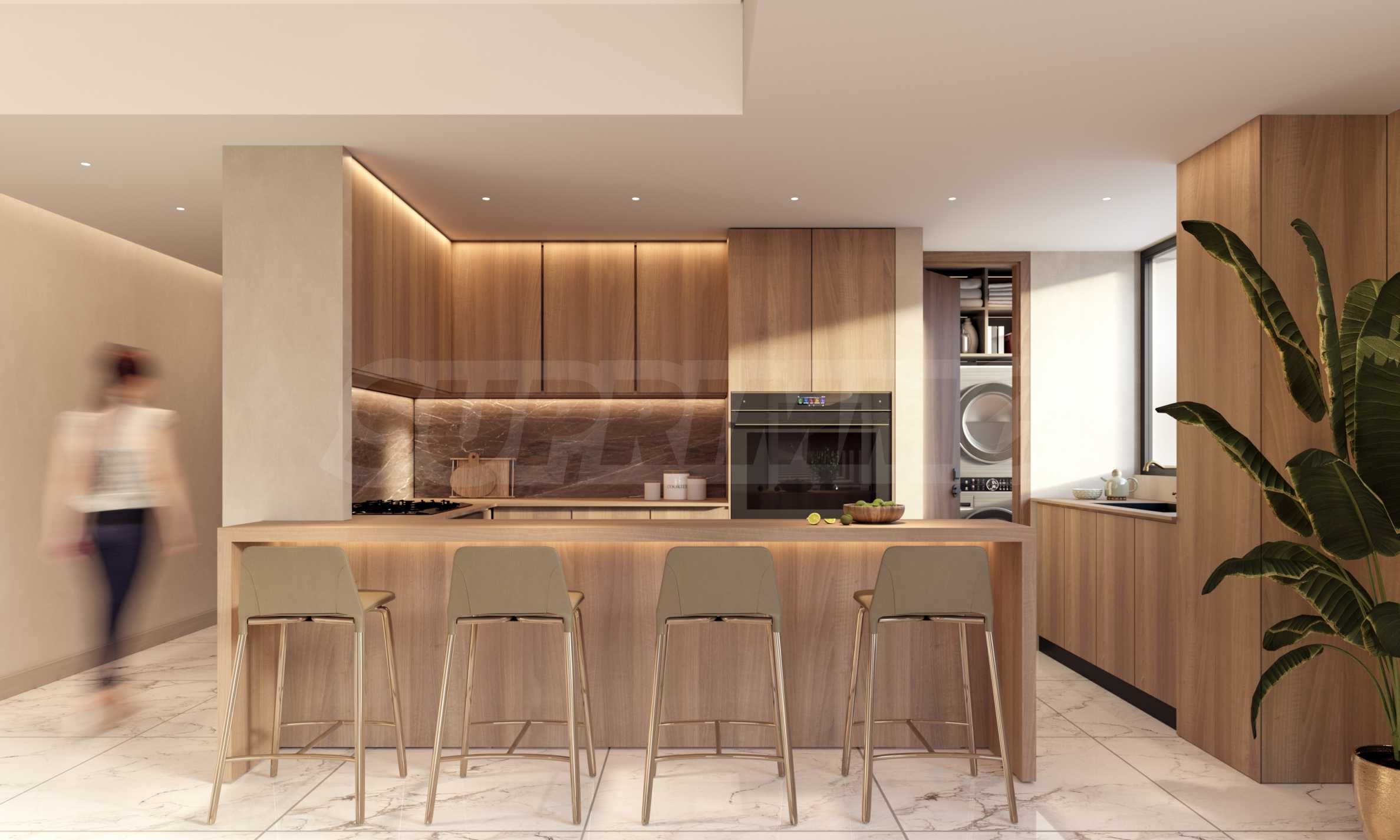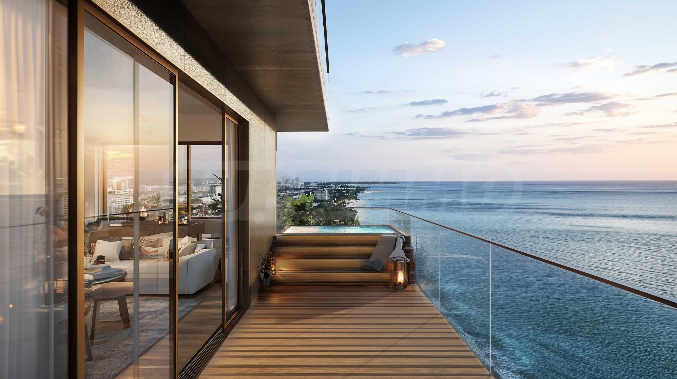 Apartament znajduje się na 14. piętrze budynku i ma powierzchnię całkowitą 133 m², z czego 119 m² jest przeznaczone na przestrzeń wewnętrzną, a 14 m² na przestrzeń zewnętrzną. Wysokie sufity i okna sięgające od podłogi do sufitu, niczym ramy okienne, pozwalają uchwycić niesamowite krajobrazy, które morze maluje przed Tobą każdego dnia. Układ nieruchomości jest niezwykle komfortowy i funkcjonalny, obejmuje przestronny salon z otwartą przestrzenią, łączący kuchnię z jadalnią, sypialnię główną z łazienką, garderobę i taras, drugą sypialnię z łazienką oraz toaletę dla gości. Jedną z najbardziej imponujących zalet apartamentu jest jednak wspaniały basen położony na tarasie, z którego roztaczają się wspaniałe widoki na morski krajobraz.
