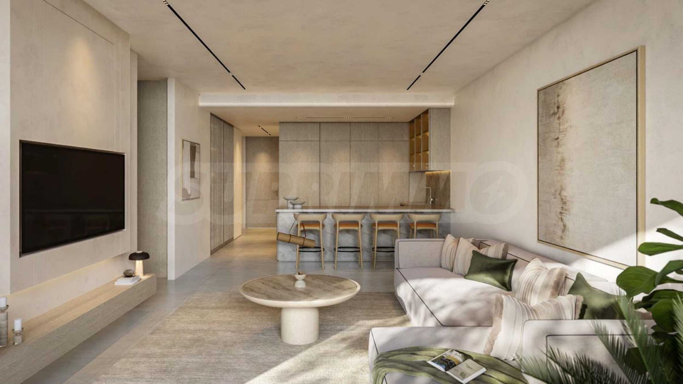 Apartament jest w pełni wykończony „pod klucz” – z zamontowanymi drzwiami wejściowymi i wewnętrznymi, stylową podłogą, oświetleniem, w pełni wyposażoną kuchnią oraz elegancko wykończonymi łazienkami. Ściany i szafki wykończone są w jasnych, neutralnych barwach, co pozwala na łatwą personalizację i dopasowanie do różnych stylów wnętrz. Łazienka zachwyca czystym designem i funkcjonalnością, a wbudowana szafa w sypialni spełnia nowoczesne standardy inteligentnego przechowywania.