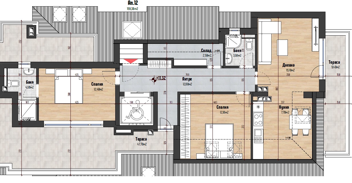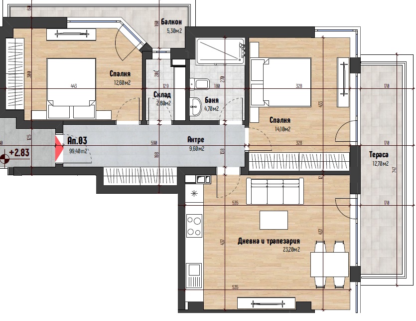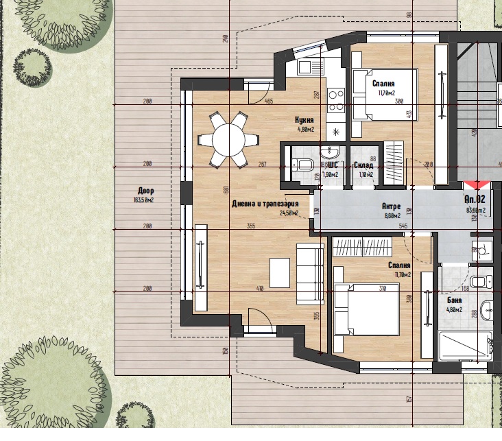 • Powierzchnia najmniejszego dostępnego mieszkania: 95,89 mkw.;
