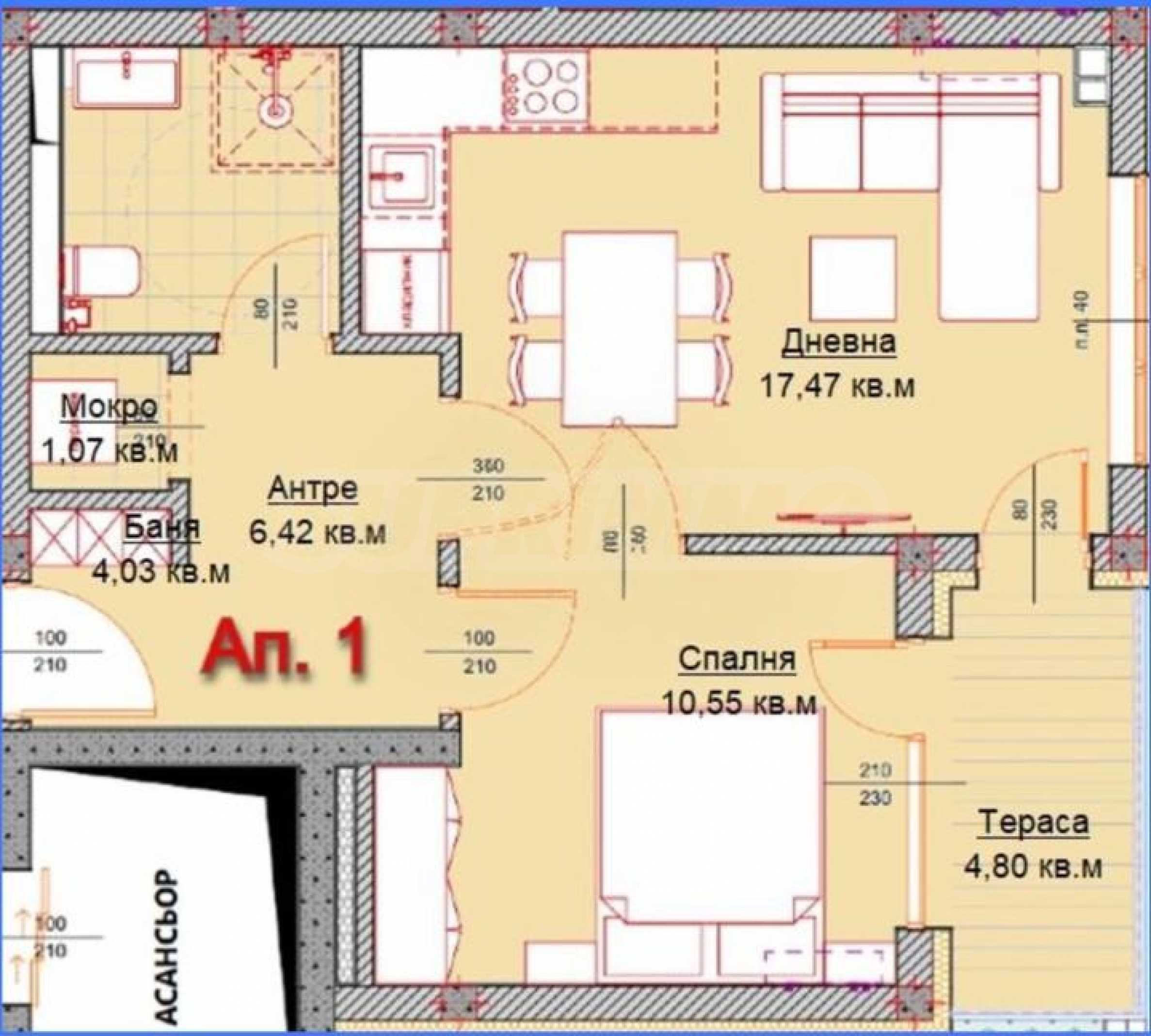 Nieruchomość o powierzchni 61,9 m², położona na parterze z ekspozycją południowo-wschodnią, jest wynajmowana w stanie deweloperskim zgodnie z bułgarskimi standardami budowlanymi: