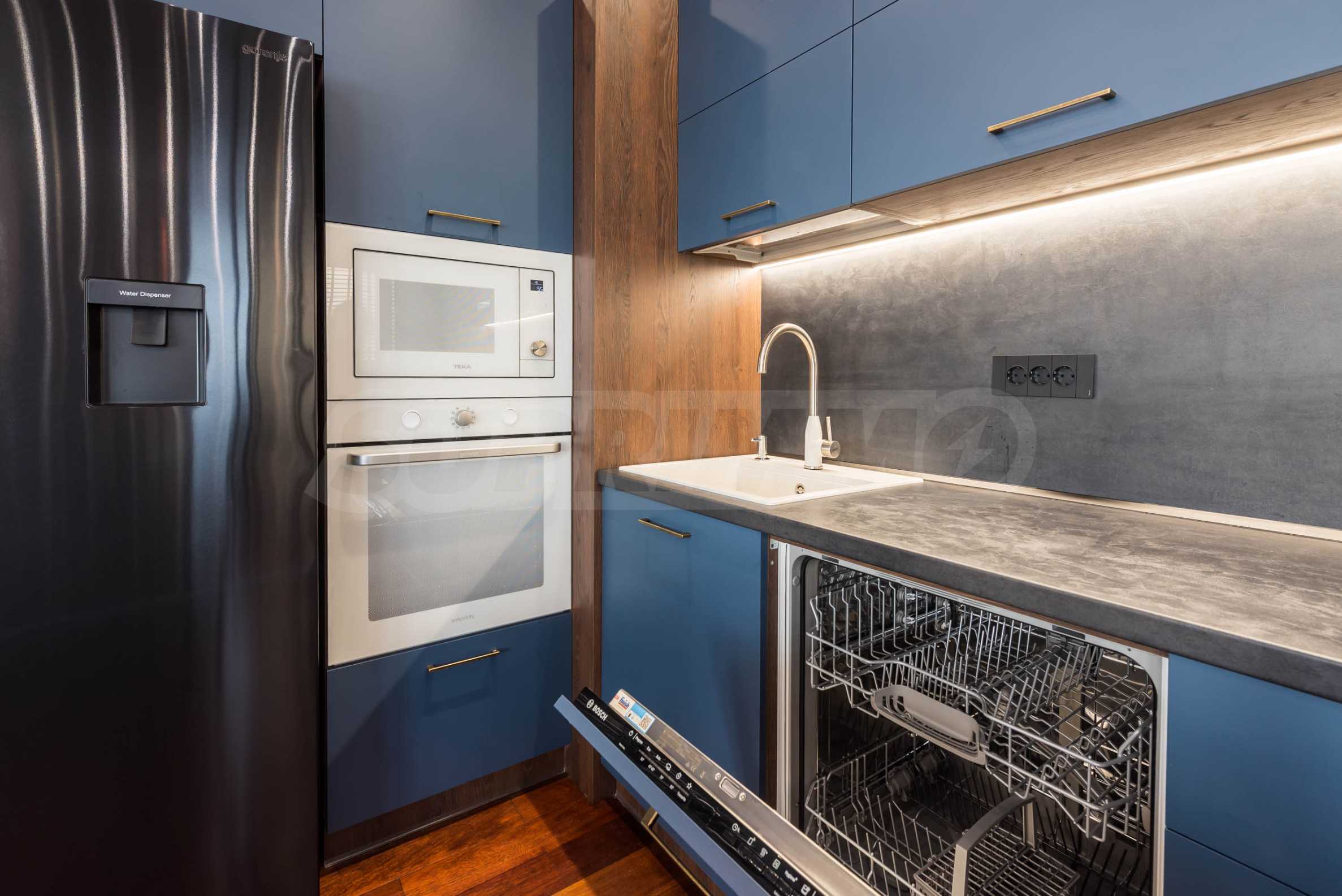 Apartament przeszedł gruntowny, luksusowy remont, jest w pełni umeblowany z wykorzystaniem designerskich rozwiązań i dbałością o każdy szczegół - solidne meble wykonane na zamówienie, inteligentne technologie domowe, najwyższej klasy sprzęt AGD - to cechy charakterystyczne tej wyjątkowej nieruchomości na bułgarskim wybrzeżu.