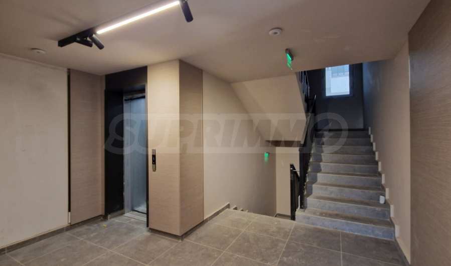 • Luksusowe części wspólne z płytkami granitowymi i metalowymi balustradami