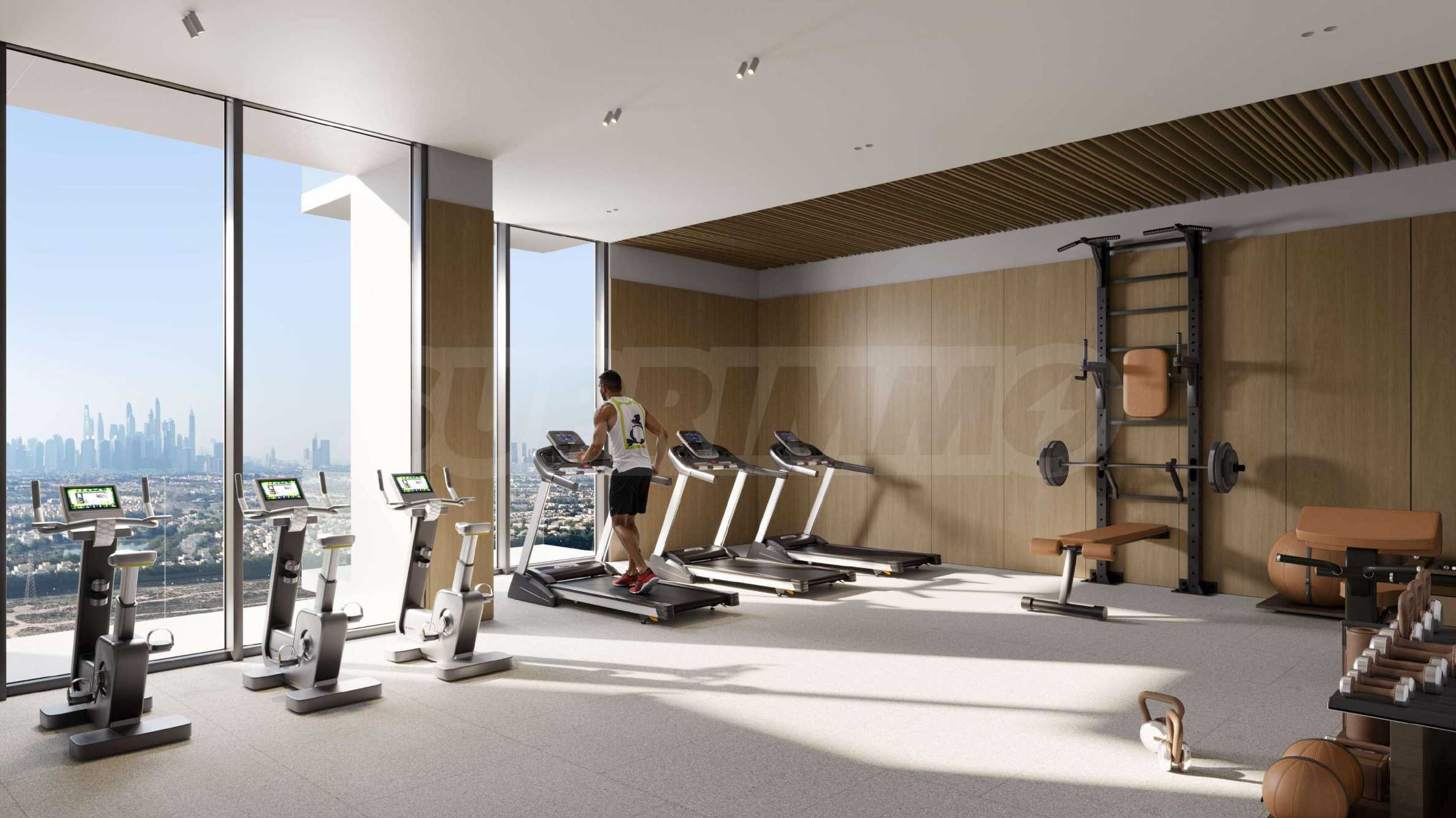 Przy wejściu do budynku gości wita przestronne i stylowe lobby z recepcją, gdzie przyjazny personel jest do dyspozycji przez całą dobę – niezależnie od tego, czy chodzi o pomoc, organizację serwisu, czy pomoc w utrzymaniu domu. Na specjalnie wydzielonych piętrach z udogodnieniami i udogodnieniami znajduje się w pełni wyposażona siłownia z wysokiej klasy sprzętem, a także basen zewnętrzny z strefami relaksu. Dla najmłodszych przygotowano brodzik i przytulną salę zabaw – miejsce, w którym mogą się bawić, uczyć i spotykać w bezpiecznym otoczeniu.