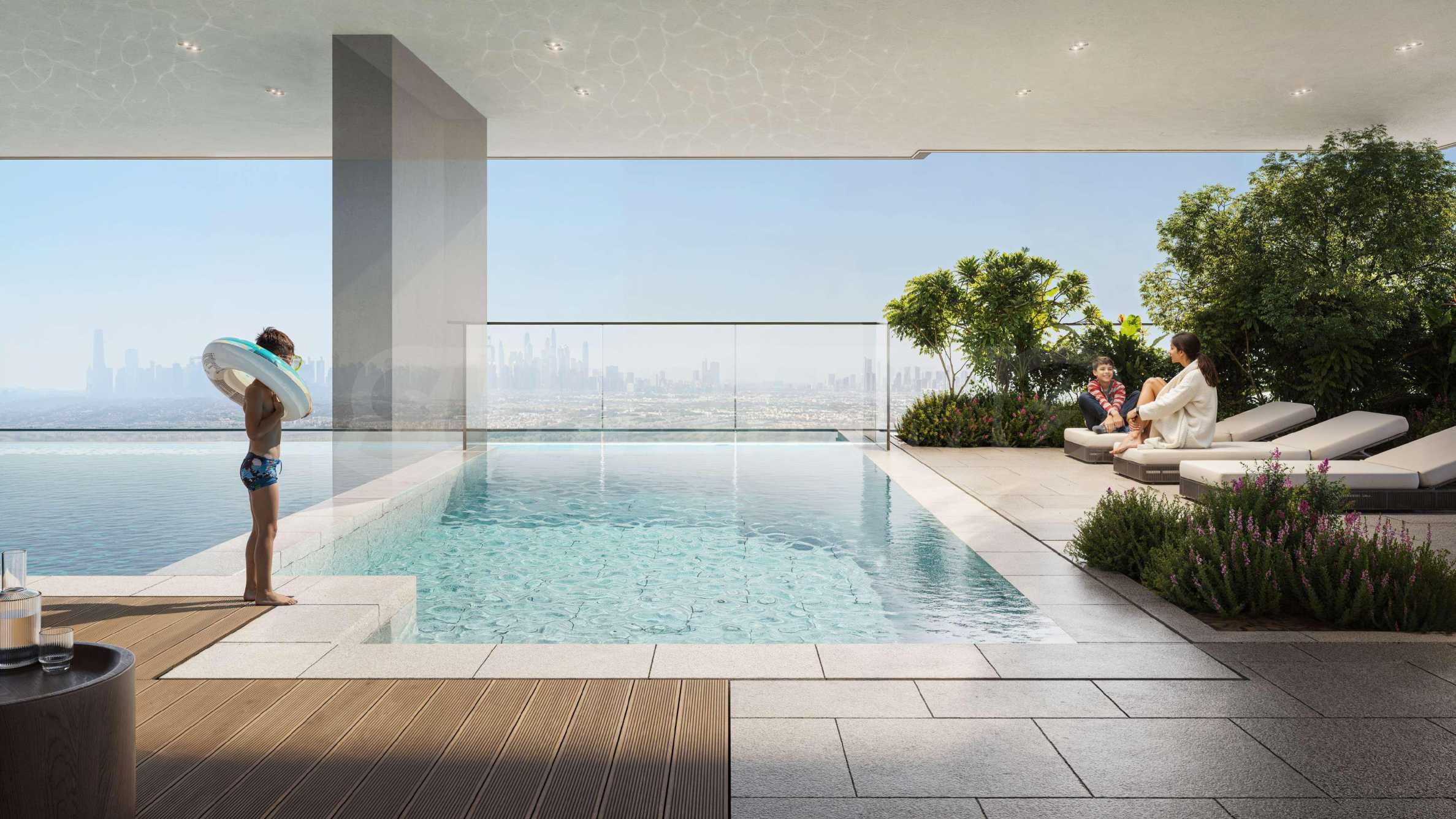 Główne wejście zachwyca stylowym, przestronnym lobby z recepcją, gdzie profesjonalny i troskliwy personel jest dostępny 24/7 – służąc pomocą, organizacją usług czy pomocą w utrzymaniu domu. Na specjalnie wydzielonych piętrach znajduje się doskonale wyposażona siłownia z wysokiej klasy sprzętem oraz basen zewnętrzny z strefami relaksu. Dla dzieci przygotowano oddzielny brodzik i przytulną salę zabaw – przestrzeń stworzoną do zabawy, nauki i integracji społecznej w całkowicie bezpiecznym otoczeniu.