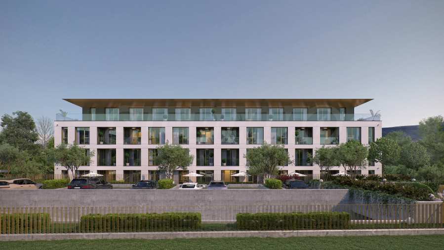 Architekci i deweloper po raz kolejny postawili na nowoczesny projekt osiedla mieszkaniowego, który postawił na minimalistyczny styl, czyste linie i harmonijną interakcję architektury z otoczeniem. Kompozycja łączy funkcjonalność z estetyką, oferując otwarte przestrzenie, obfite naturalne oświetlenie i nowoczesne materiały. Budynek ma prostokątny kształt i wyraźnie zdefiniowaną modułową konstrukcję, co nadaje mu poczucie porządku i rytmu. Układ fasady i okien tworzy zrównoważoną wizję, zapewniając jednocześnie optymalne oświetlenie i widok na okolicę i malowniczą górę.