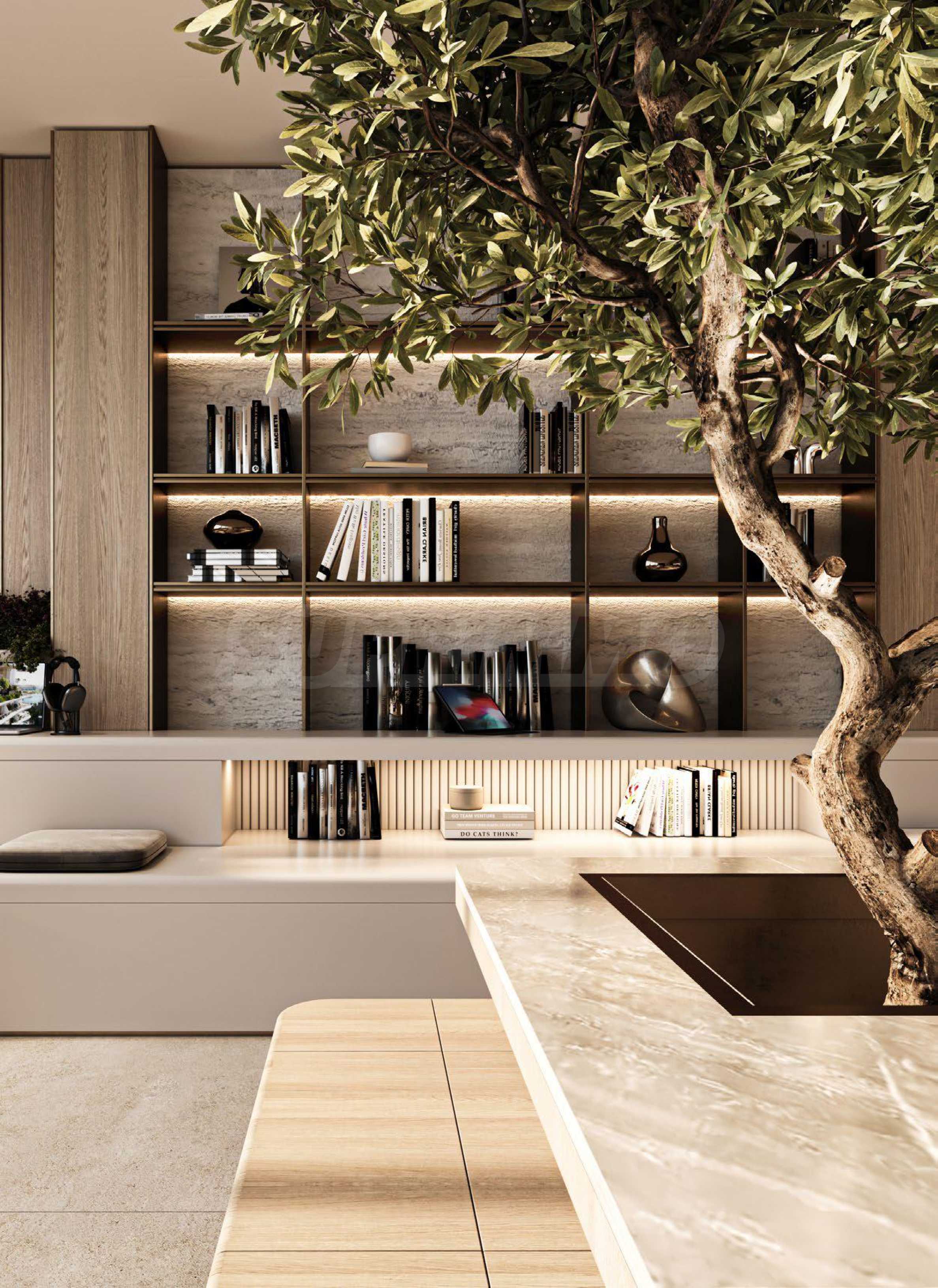 Oferujemy funkcjonalne i dobrze zorganizowane mieszkanie z trzema sypialniami, zlokalizowane na szóstym piętrze, o powierzchni całkowitej 213 m², z przestronnym tarasem o powierzchni 122 m². Układ obejmuje jasny salon z kuchnią i jadalnią, dwie oddzielne sypialnie, każda z własną łazienką, osobną toaletę dla gości oraz duży taras. Przestrzenie zostały zaprojektowane tak, aby łączyć nowoczesny komfort, elegancję i praktyczność. Wysokie sufity i okna sięgające od podłogi do sufitu zapewniają mnóstwo naturalnego światła i nadają wnętrzu przestronności i lekkości.