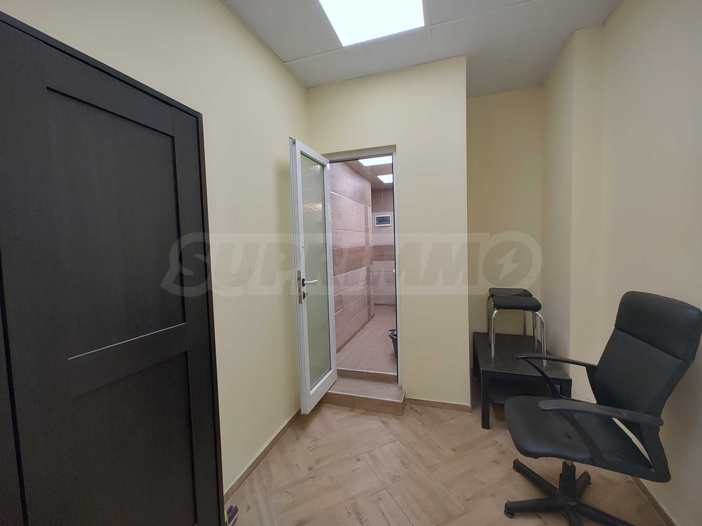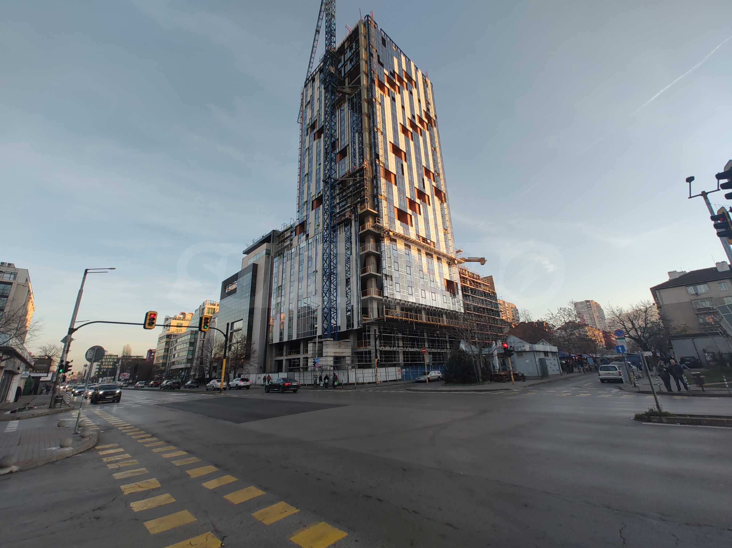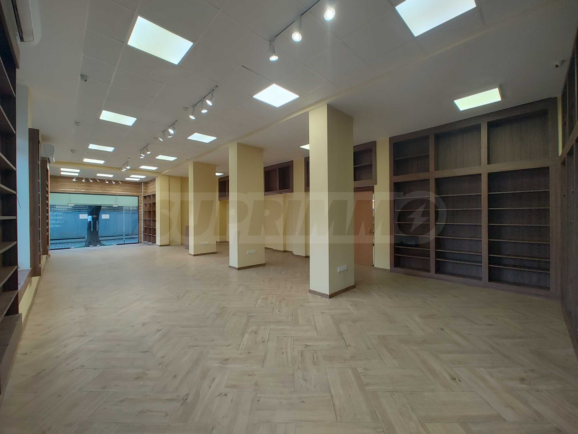 Fasada jest reprezentacyjna i nowoczesna, z imponującymi szklanymi oknami o szerokości 5 metrów i wysokości 4 metrów, zorientowanymi w stronę ulicy Dimitar Petkov, gdzie ruch ludzi jest stały i duży.