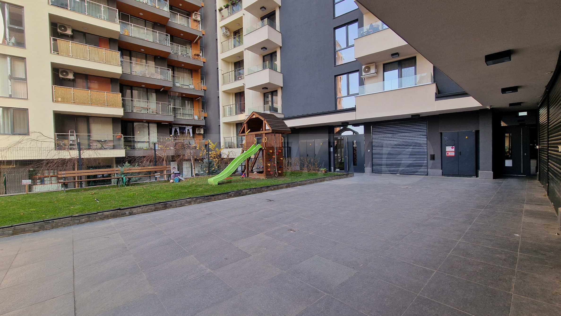Nieruchomość znajduje się w strategicznej lokalizacji miejskiej, blisko głównego bulwaru, co zapewnia szybkie połączenie z kluczowymi punktami Sofii. Budynek znajduje się jednak przy cichej, wewnętrznej uliczce, a apartament jest zorientowany tak, aby ruch miejski pozostawał za nim, co zapewnia ciszę i przyjemne otoczenie.