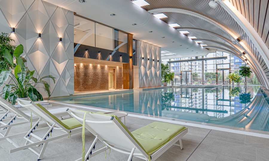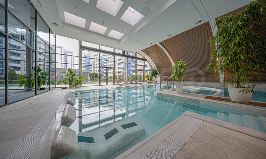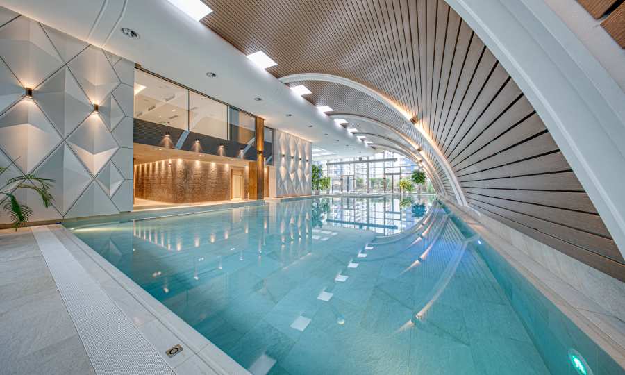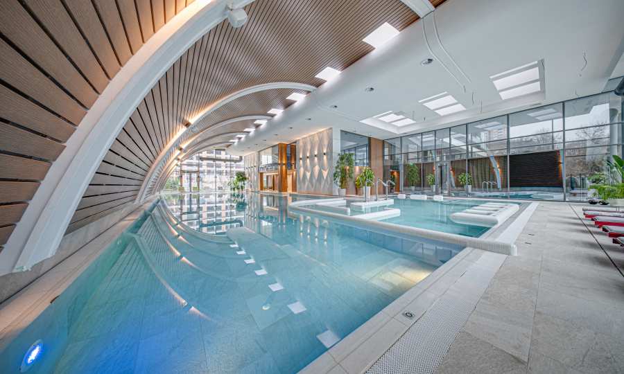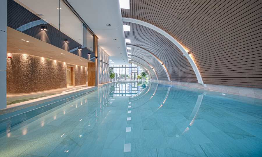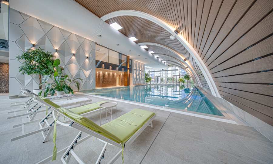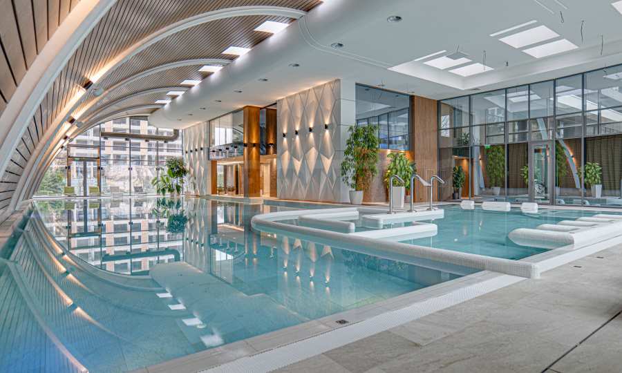 Centrum SPA & Wellness jest w pełni ukończone i gotowe do użytku, zaprojektowane jako samodzielny obiekt z własnym wejściem i własnym rytmem. Nie jest to udogodnienie dla budynku, ale miejsce, które żyje swoją własną tożsamością.