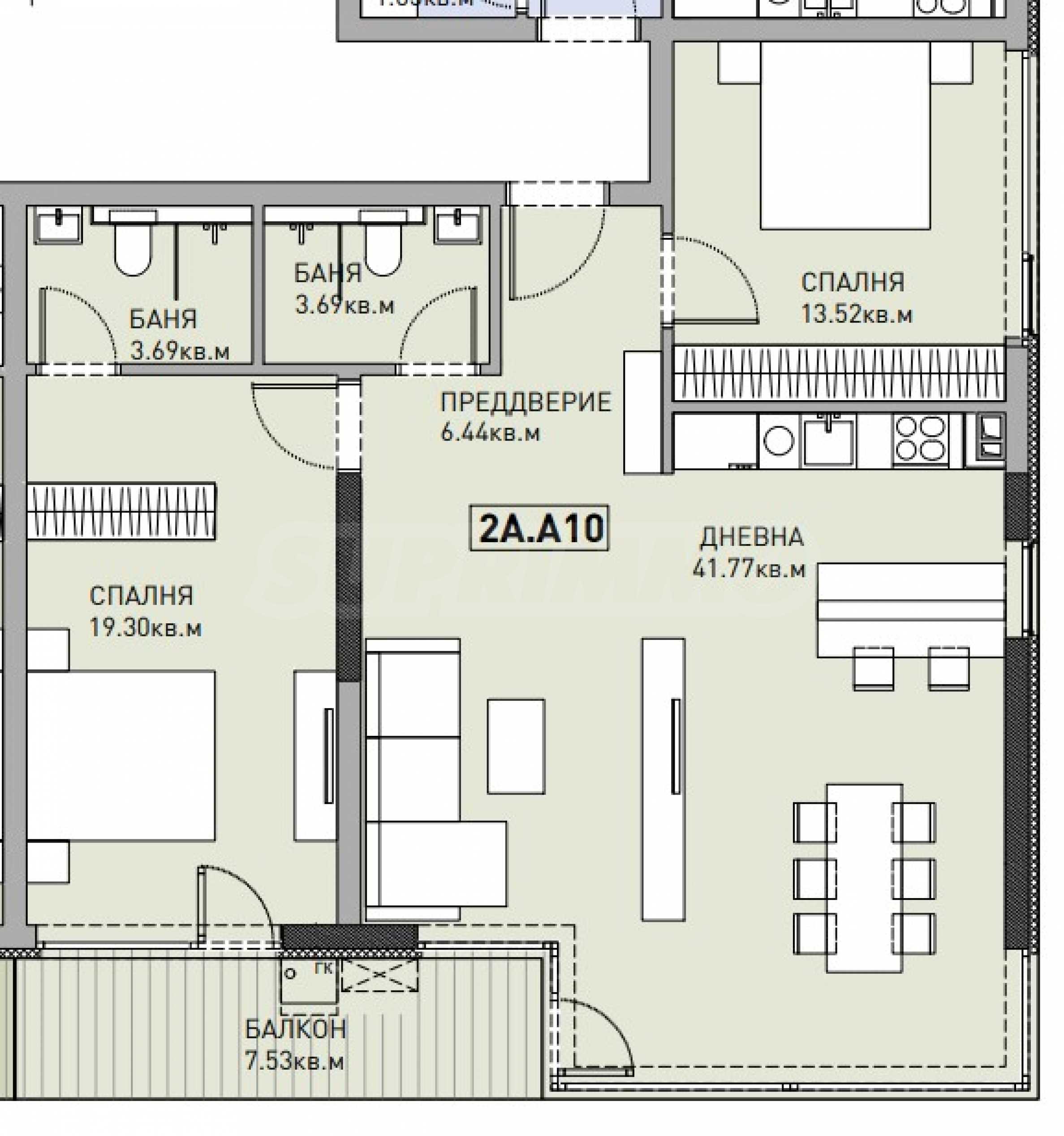 Prezentujemy trzypokojowe mieszkanie w nowym osiedlu, które łączy wygodę i spokój w atrakcyjnym otoczeniu parku w dzielnicy „Manastirski Livadi – Iztok”. Kompleks położony jest obok wydzielonego parku i nowego przedszkola. Lokalizacja osiedla zapewnia łatwy dostęp do głównych arterii komunikacyjnych, obiektów handlowych, parków i innych udogodnień, dzięki bliskości bulwaru „Todor Kableshkov”, łączącego bulwar „Bulgaria” z bulwarem „Czerni Vrah”.