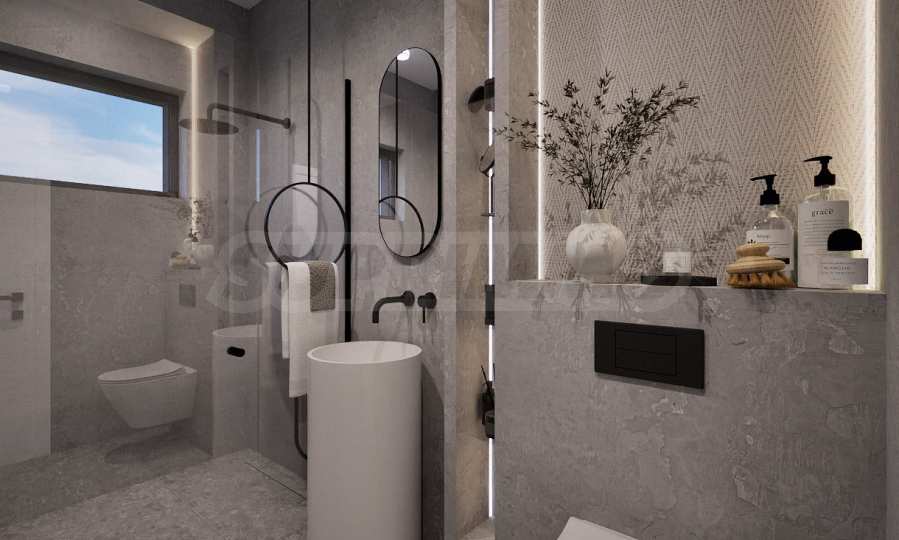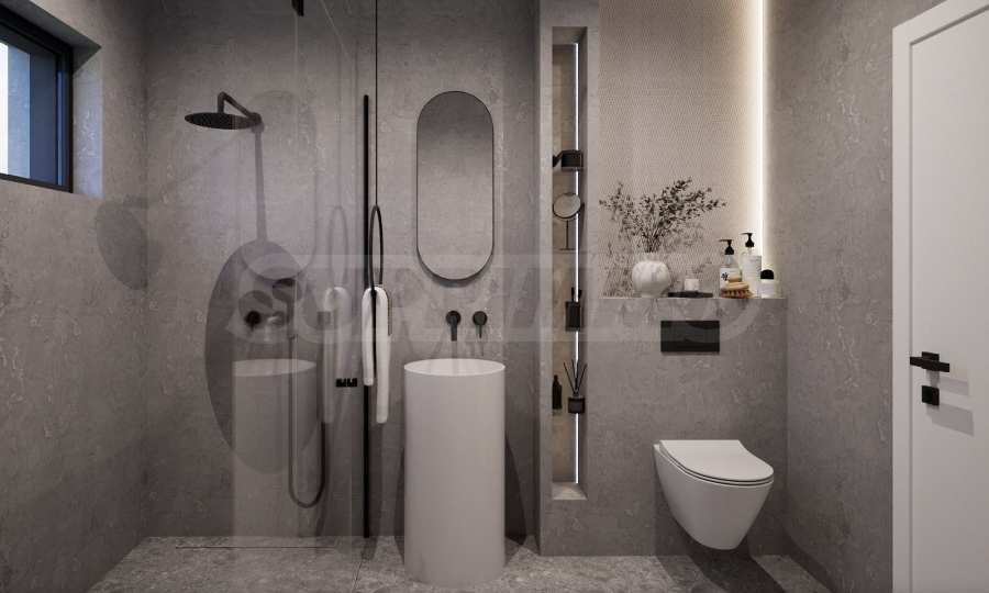Oferujemy na sprzedaż dwukondygnacyjne domy o nowoczesnym wyglądzie, będące częścią ogrodzonego osiedla, położonego wśród zieleni eko-regionu w pobliżu Słonecznego Brzegu, w dzielnicy willowej wsi Koszarica.