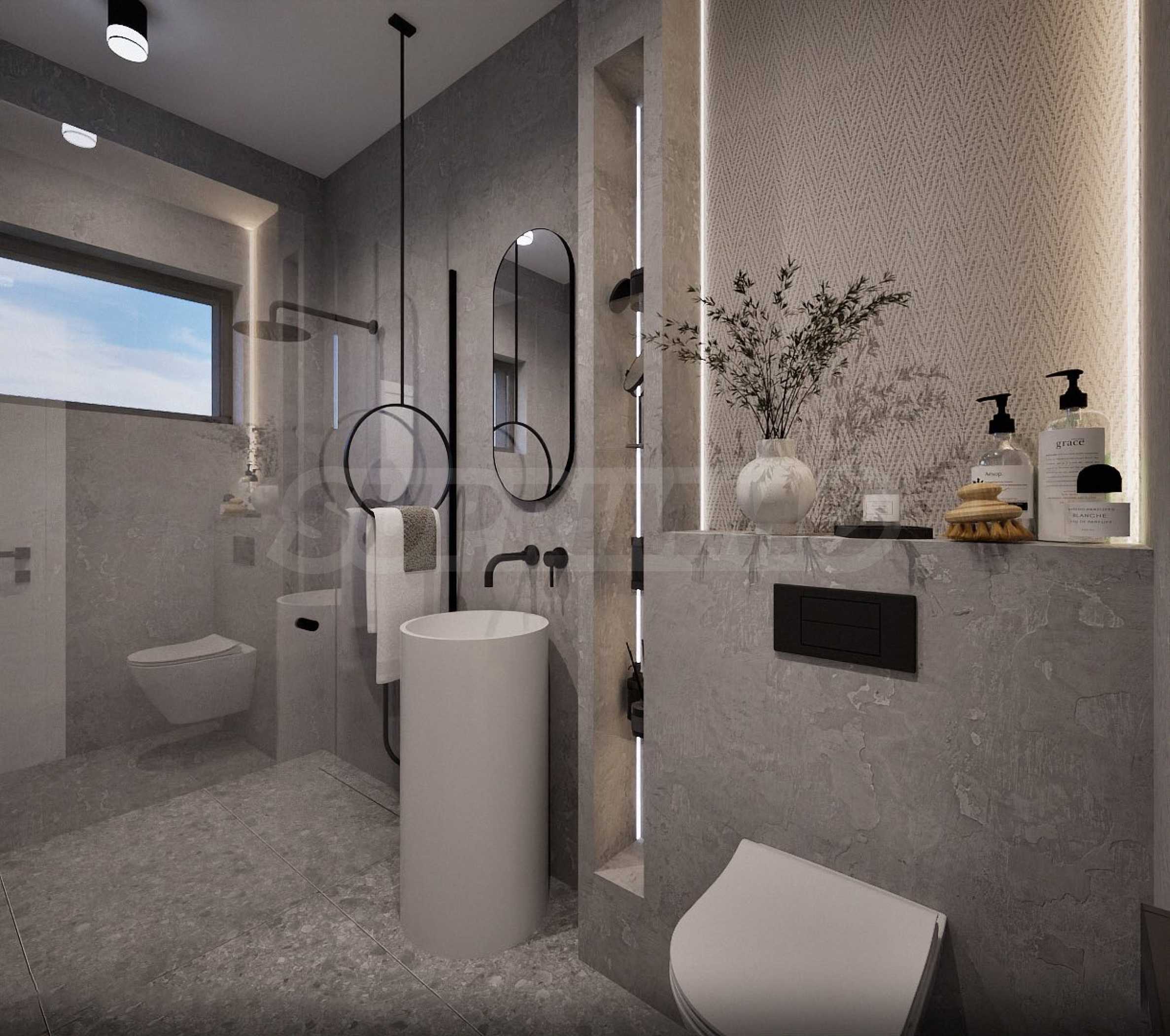 Oferujemy na sprzedaż dwupiętrowy dom o nowoczesnym wyglądzie, będący częścią ogrodzonego osiedla, położonego wśród zieleni eko-regionu w pobliżu Słonecznego Brzegu, w dzielnicy willowej wsi Koszarica.