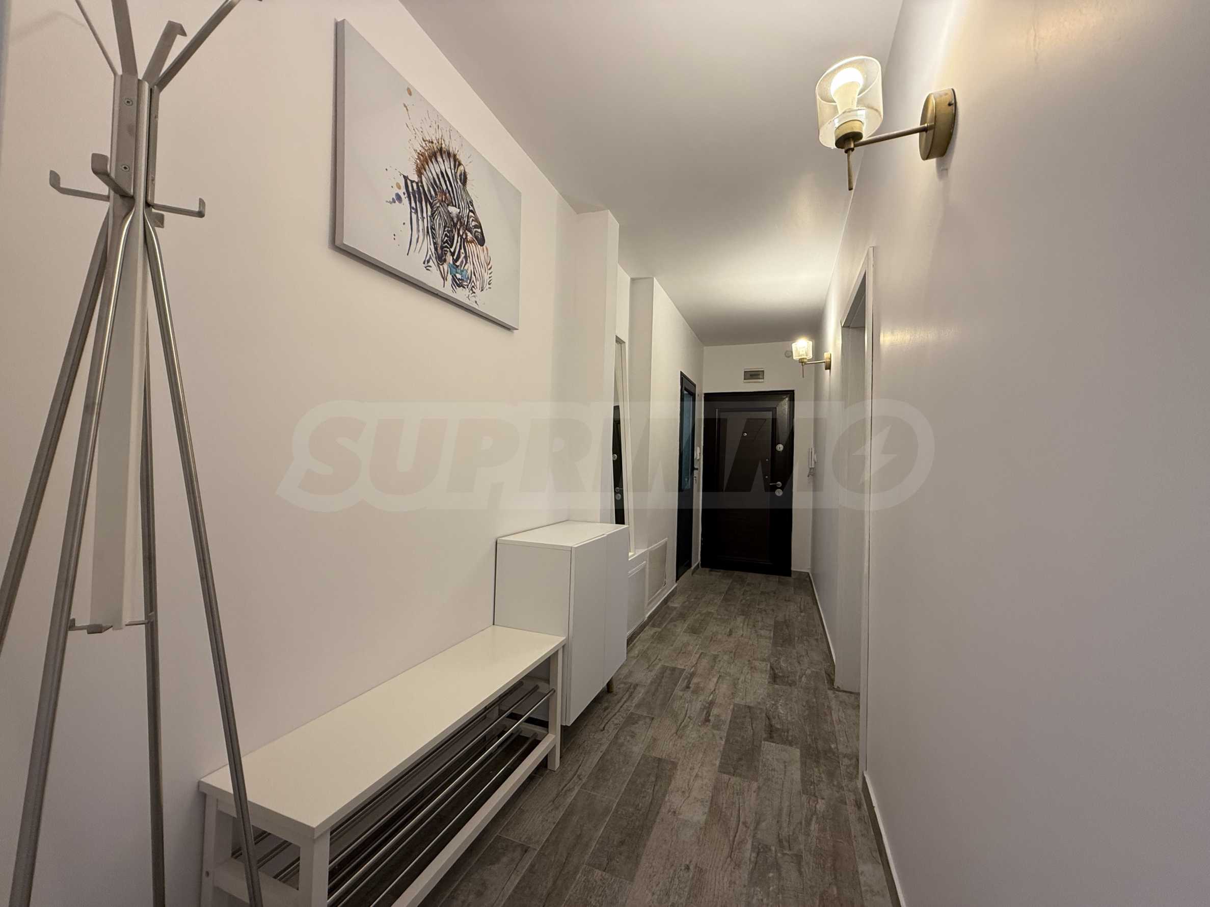 Mieszkanie jest w pełni umeblowane w nowoczesnym stylu i wyposażone we wszystkie niezbędne meble i sprzęty do komfortowego codziennego życia.