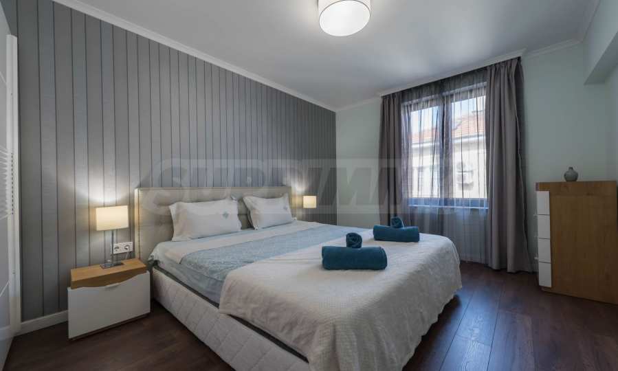 Oferujemy nowoczesne, dwupokojowe mieszkanie w nowym budynku, w centrum Warny. Doskonała lokalizacja tuż przy głównym deptaku, minutę od Starbucksa i 5 minut od Ogrodu Morskiego. W pobliżu znajdują się wszystkie udogodnienia – komunikacja miejska, sklepy, targowiska, banki, apteki, plaża i restauracje.