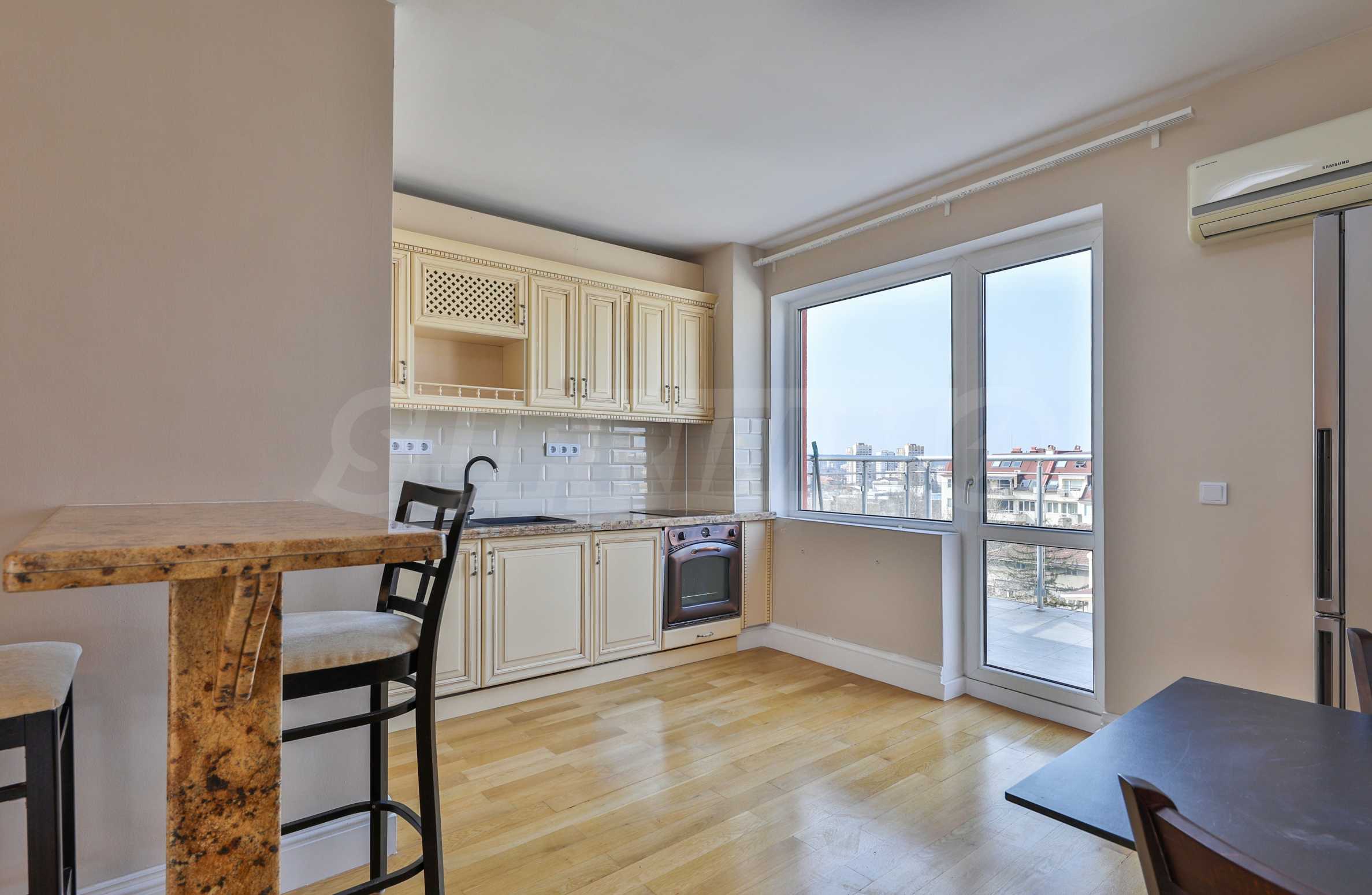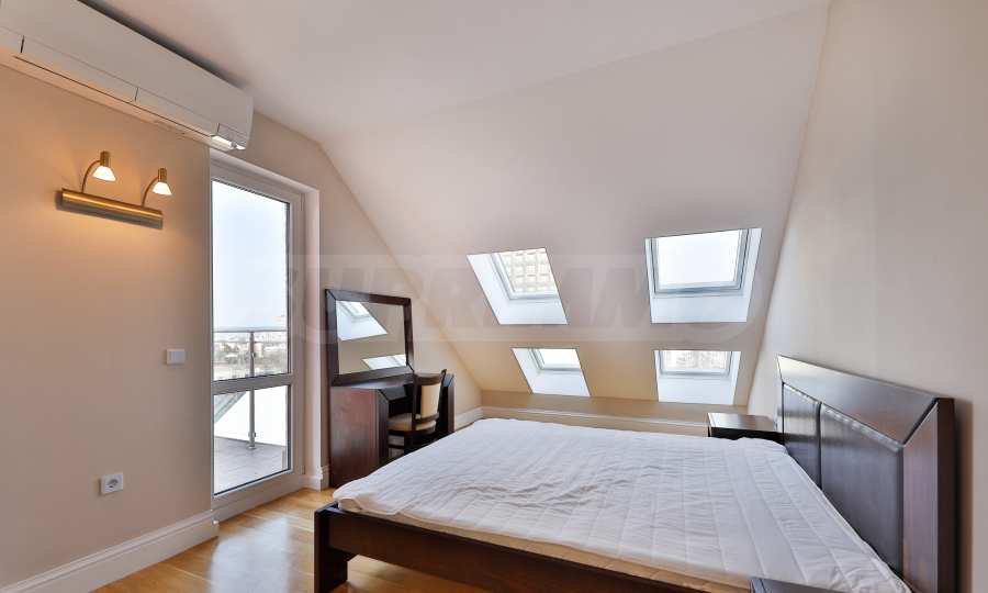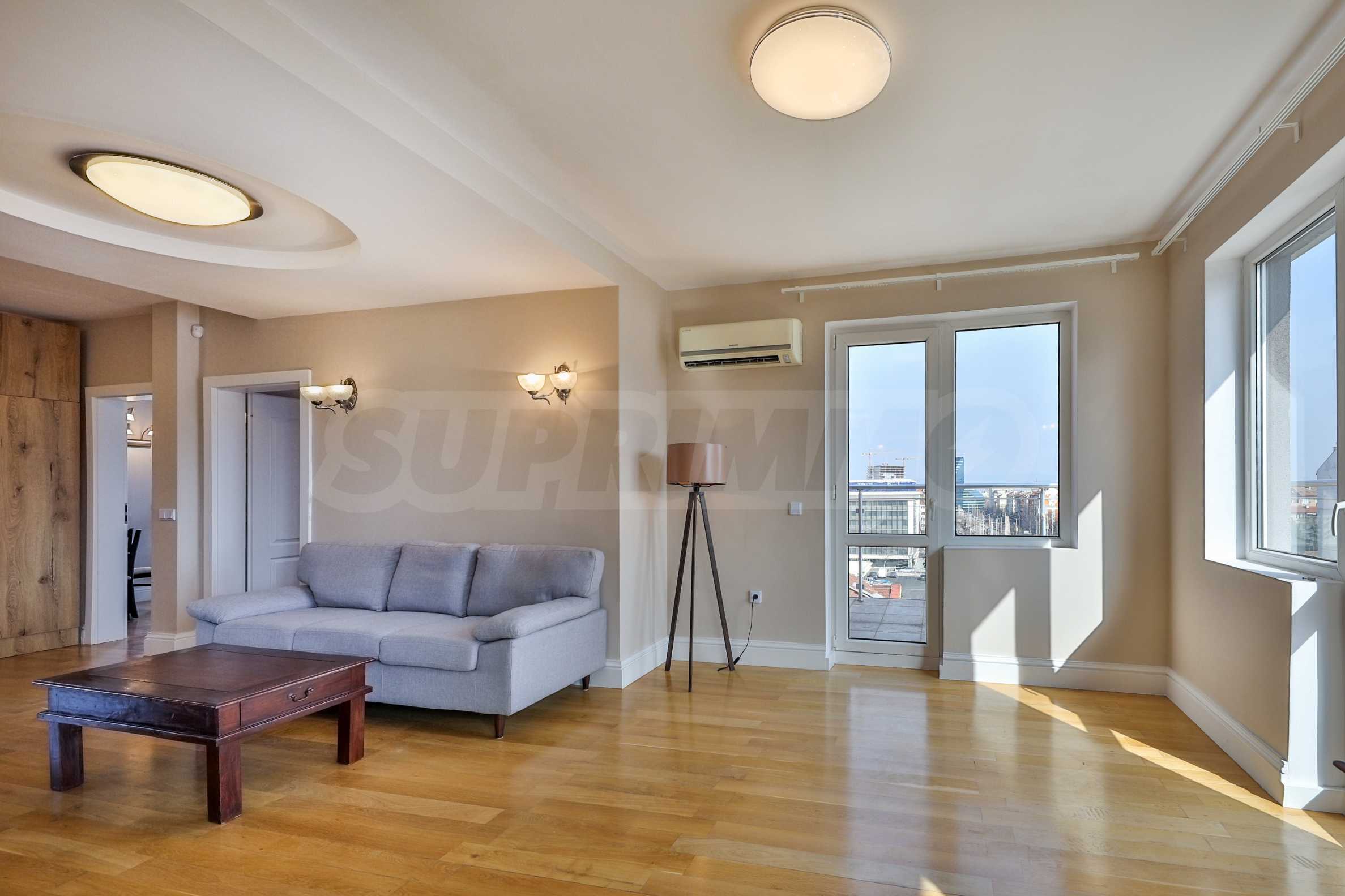 Oferujemy do wynajęcia wyjątkowy apartament z dwiema sypialniami, zlokalizowany na 7. piętrze, z imponującym widokiem na panoramę centrum Sofii i Górę Witosza.
